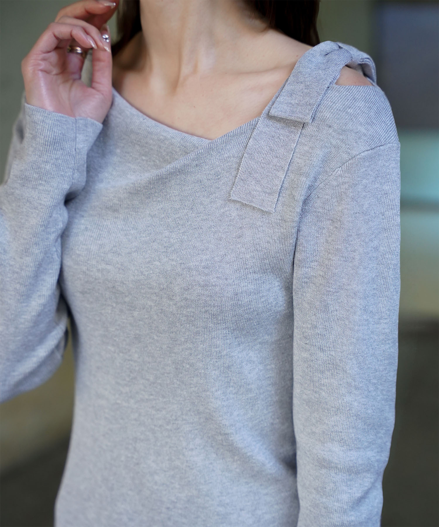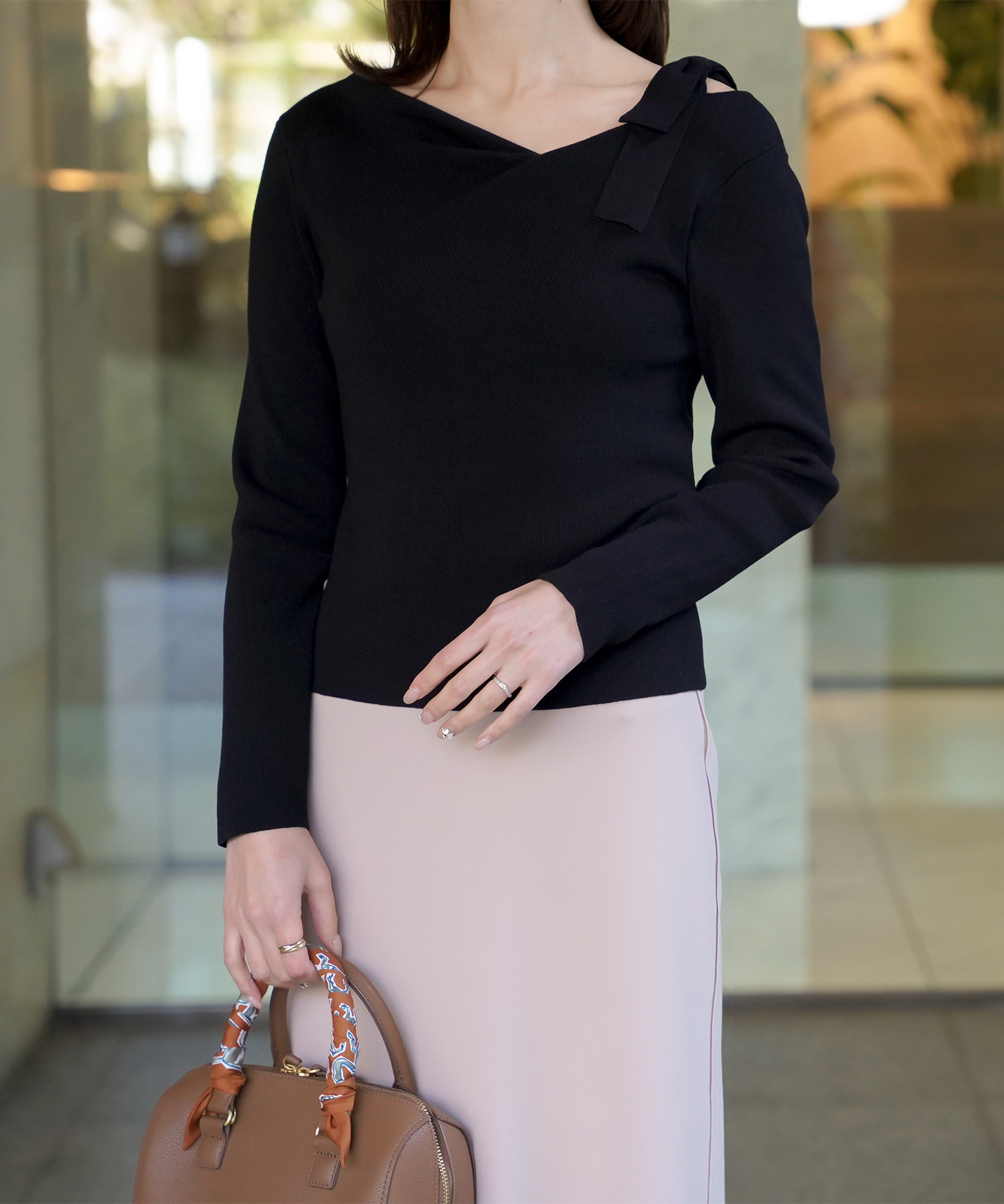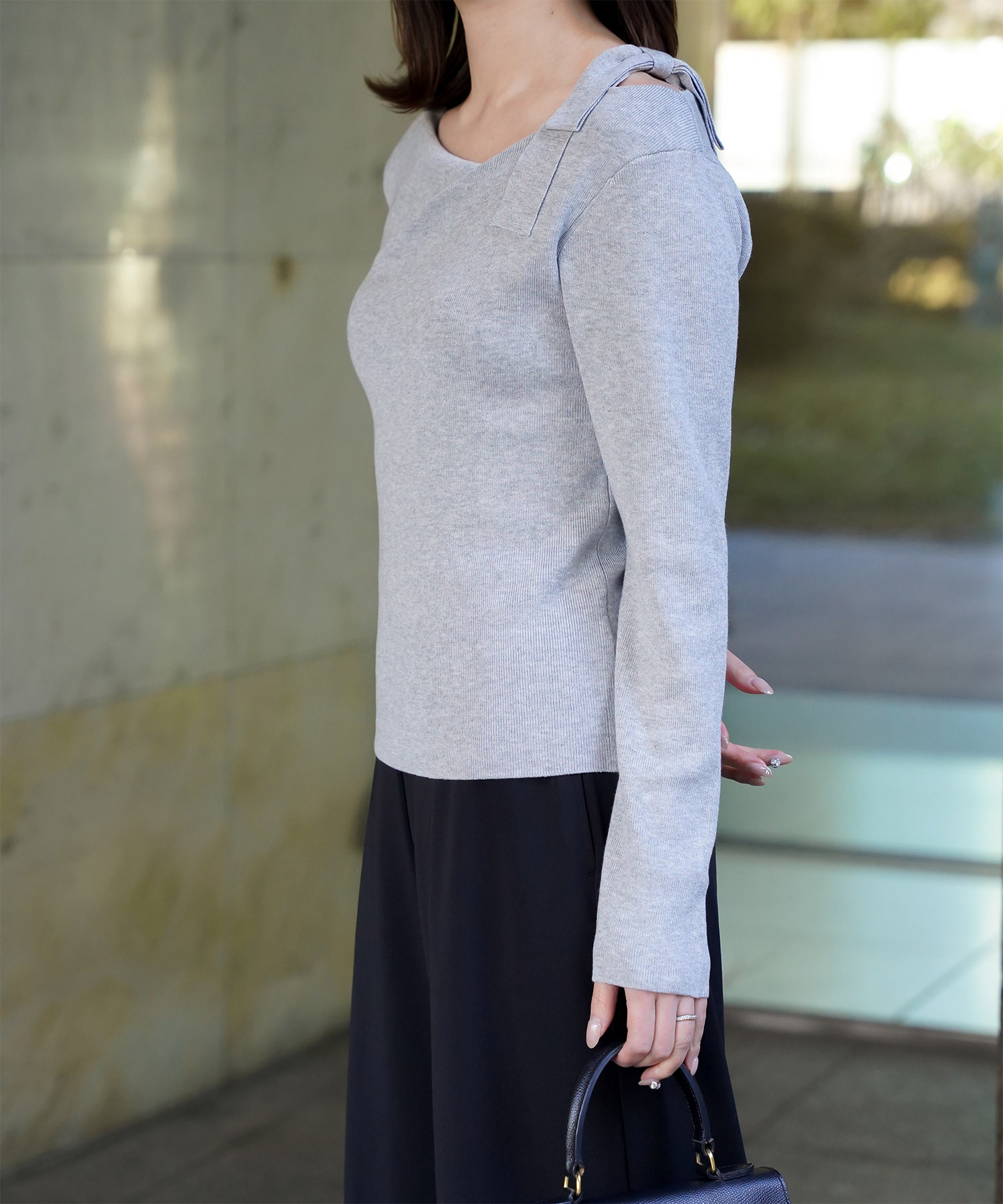 リボン ショルダー ドレープ ニット トップス(HUIT)¥9,790(税込)