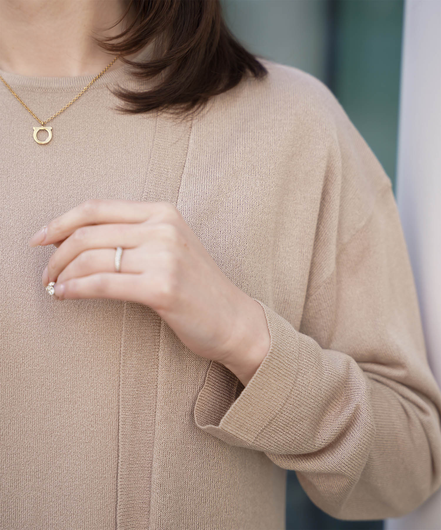 冷える春先の教室でも安心して着られる、暖かさと可愛さを兼ね備えたリボン付きニット。デコルテラインを美しく見せるネックデザインと、さりげないリボンディテールが大人フェミニンな印象を演出。程よくフィットするシルエットで、パンツやスカートにも合わせやすく、授業参観にぴったりの上品で好感度の高いスタイルが完成します。