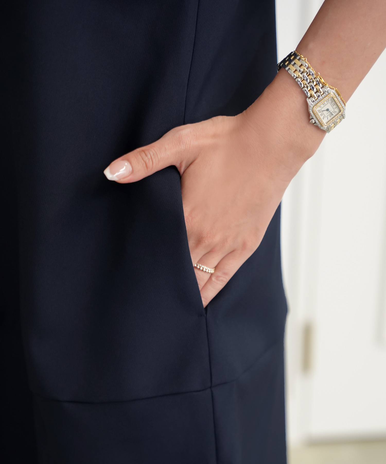 汗ばむ季節も涼しげに乗り越えられる、夏の授業参観にぴったりのポロシャツワンピース。スポーティーなポロネックにくるみボタンやフレアラインがエレガントさを加え、袖口のバイカラーパイピングがアクセントに。吸水速乾性のある鹿の子素材で、暑い日でもさらりと快適な着心地。ウエストシェイプで着やせ効果もあり、1枚で清潔感とおしゃれを両立させたスタイルに仕上がります。
