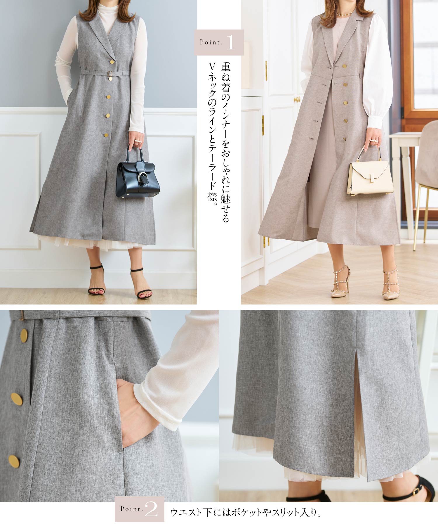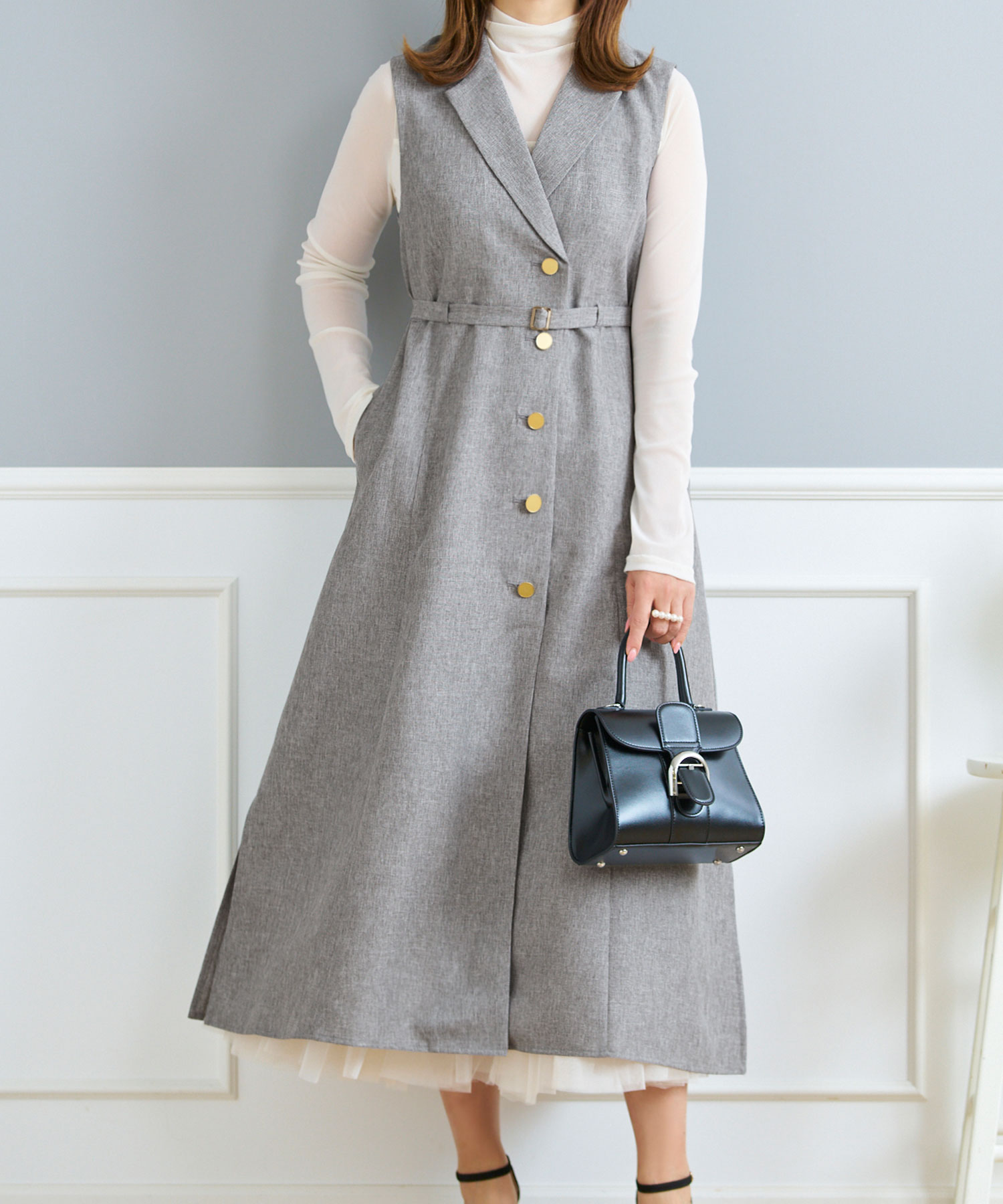 トレンチ風 ロング ワンピース & ジレ(Prima Scherrer)¥12,980(税込)