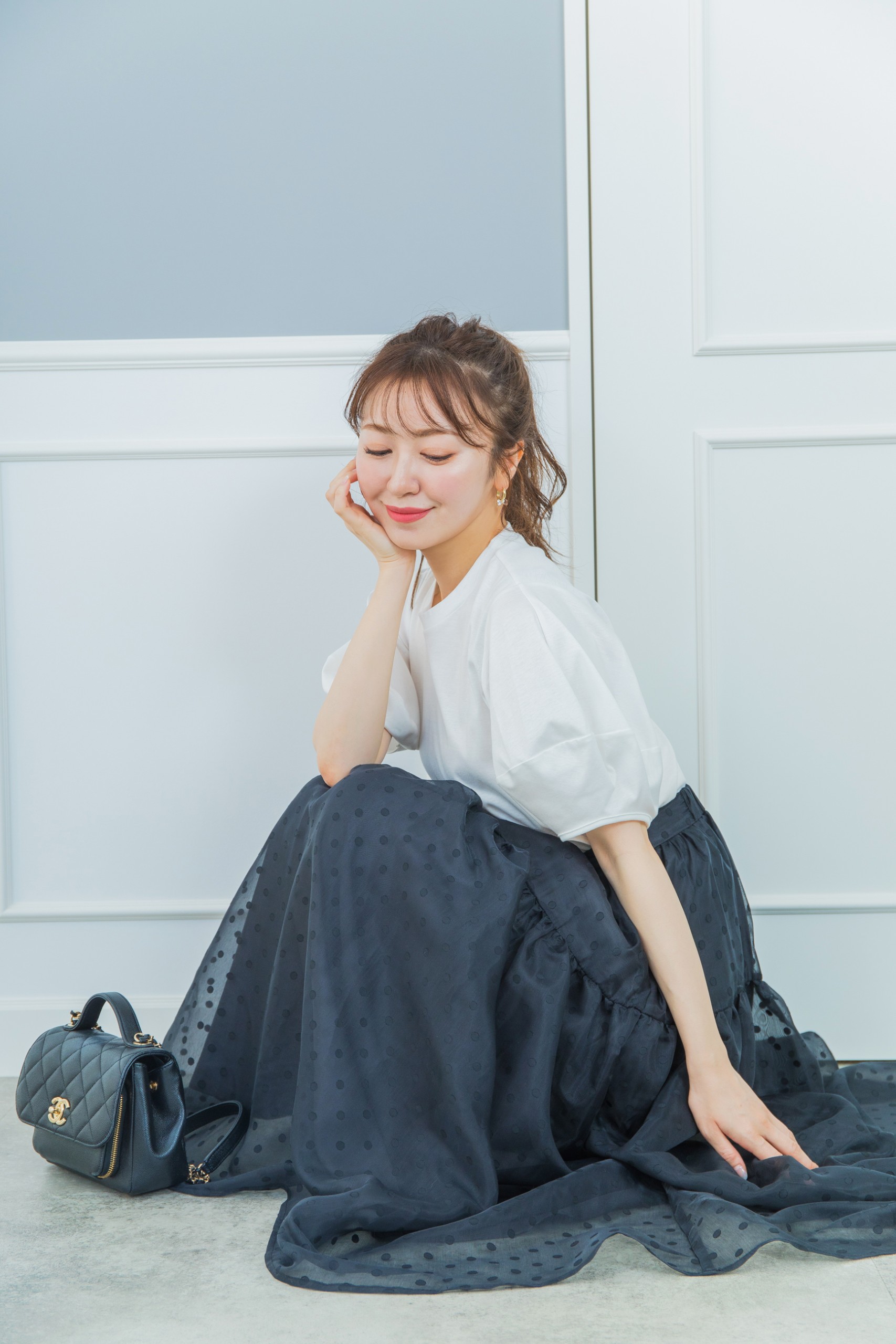 紫外線防止UPF50+機能が付いたTシャツなら強い日差しもカットしてくれるのでアウトドアにも最適(完璧にカットするものではありません)。日焼け止めと併用すれば、安心してレジャーを楽しめそう♡ 透け感のあるレース素材のスカートと合わせて軽やかに着こなすのがおすすめ。