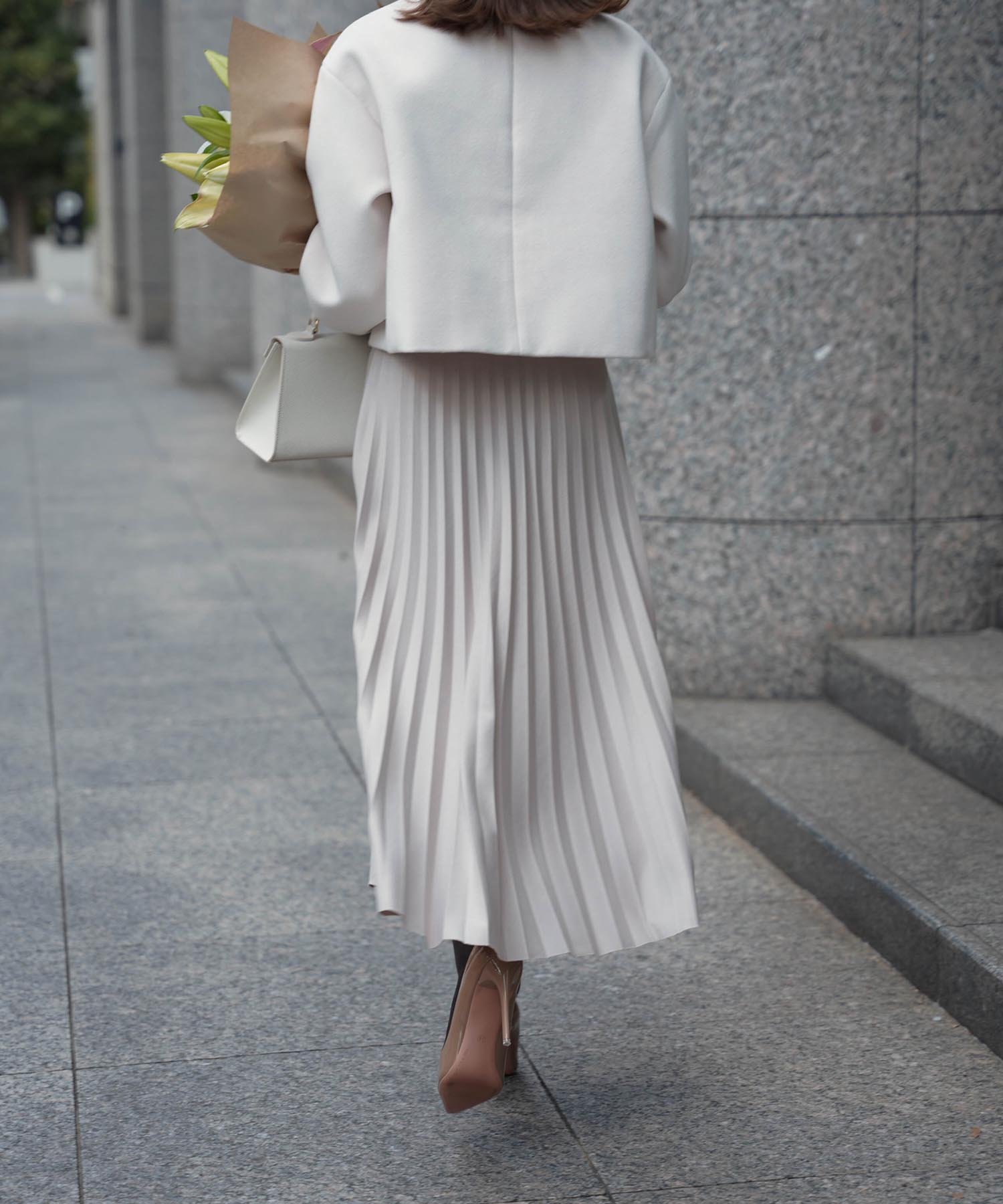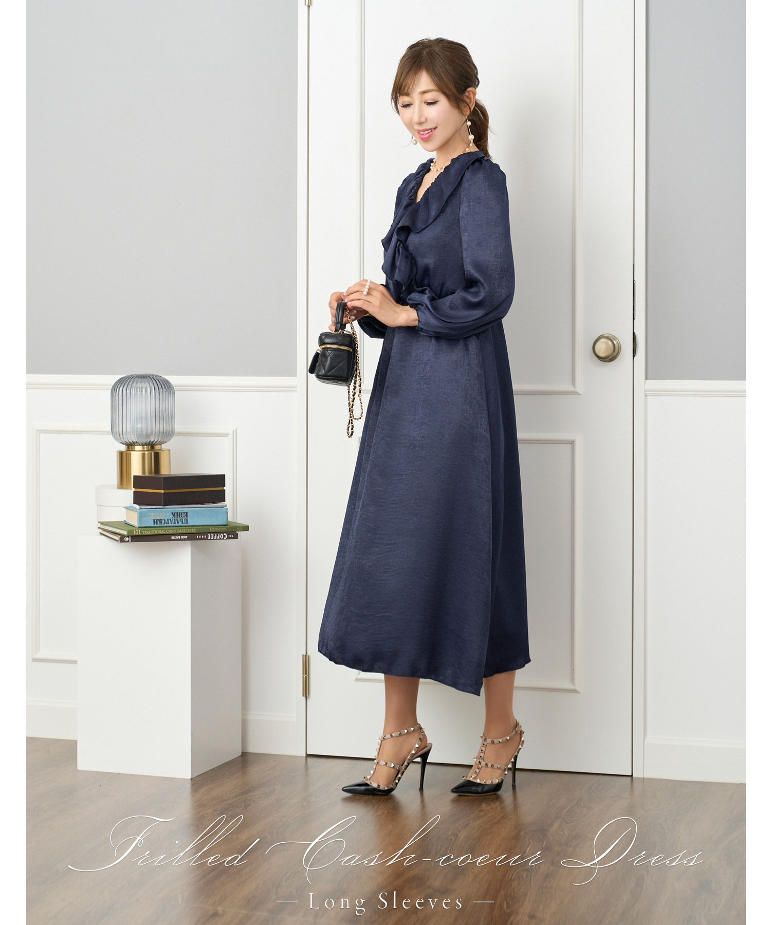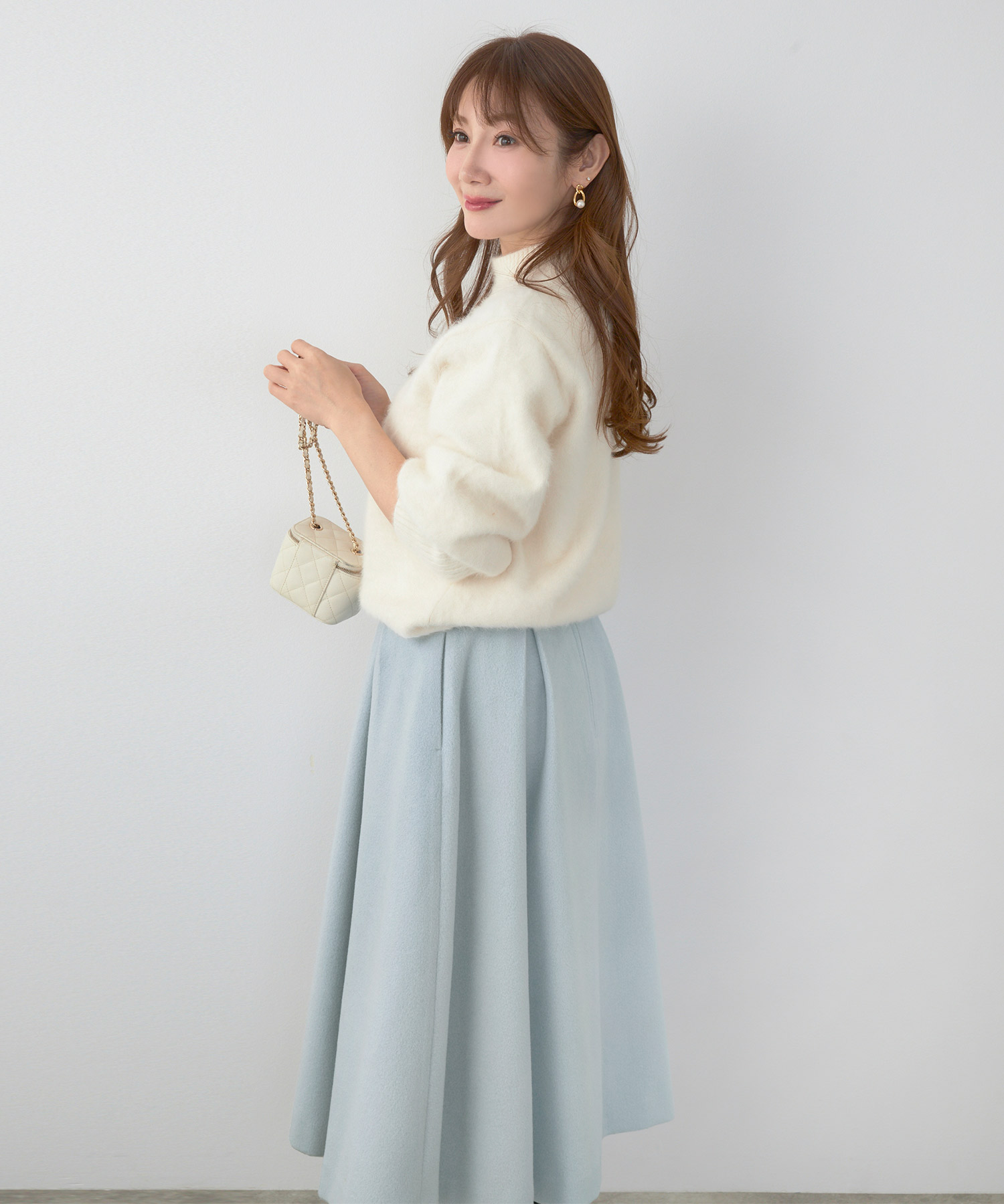 生地を贅沢に使用した、歩くたびに裾が揺れる美しいシルエットのワンピース。清楚で品のある雰囲気が、高級ホテルのレストランにもふさわしい一着です。冬はファージレやきれいめアウターを重ねて、暖かさと華やかさを両立させたスタイルをお楽しみいただけます。