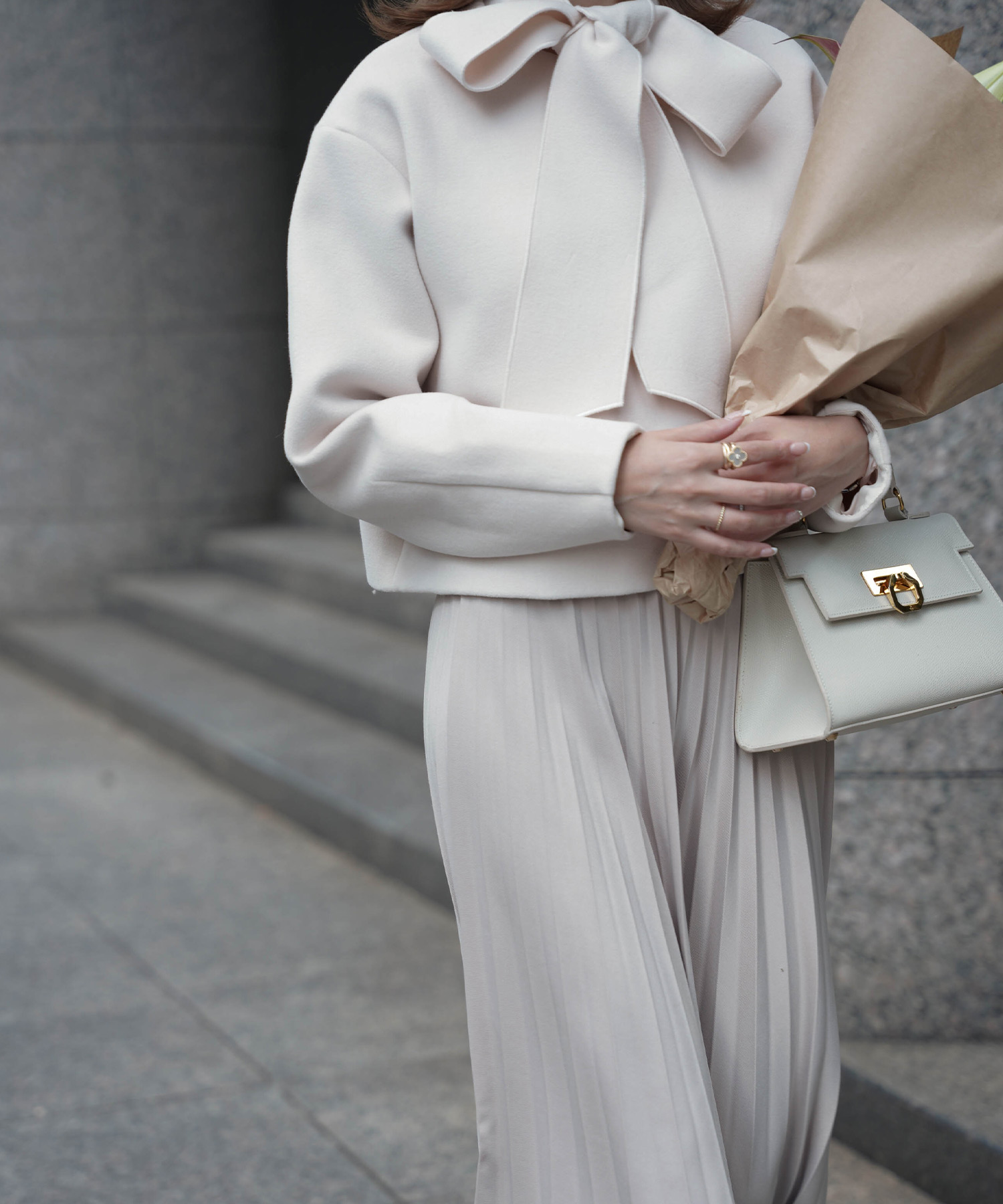 平日の仕事終わりにそのままビストロやダイニングへ向かう日も多いですよね。そんなときは、朝の時点で「少し整えればレストラン仕様になる」通勤コーデを組んでおくと、着替えの手間なくスムーズに移動できます。