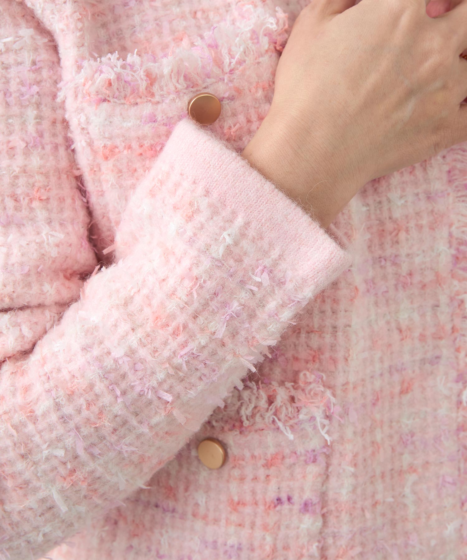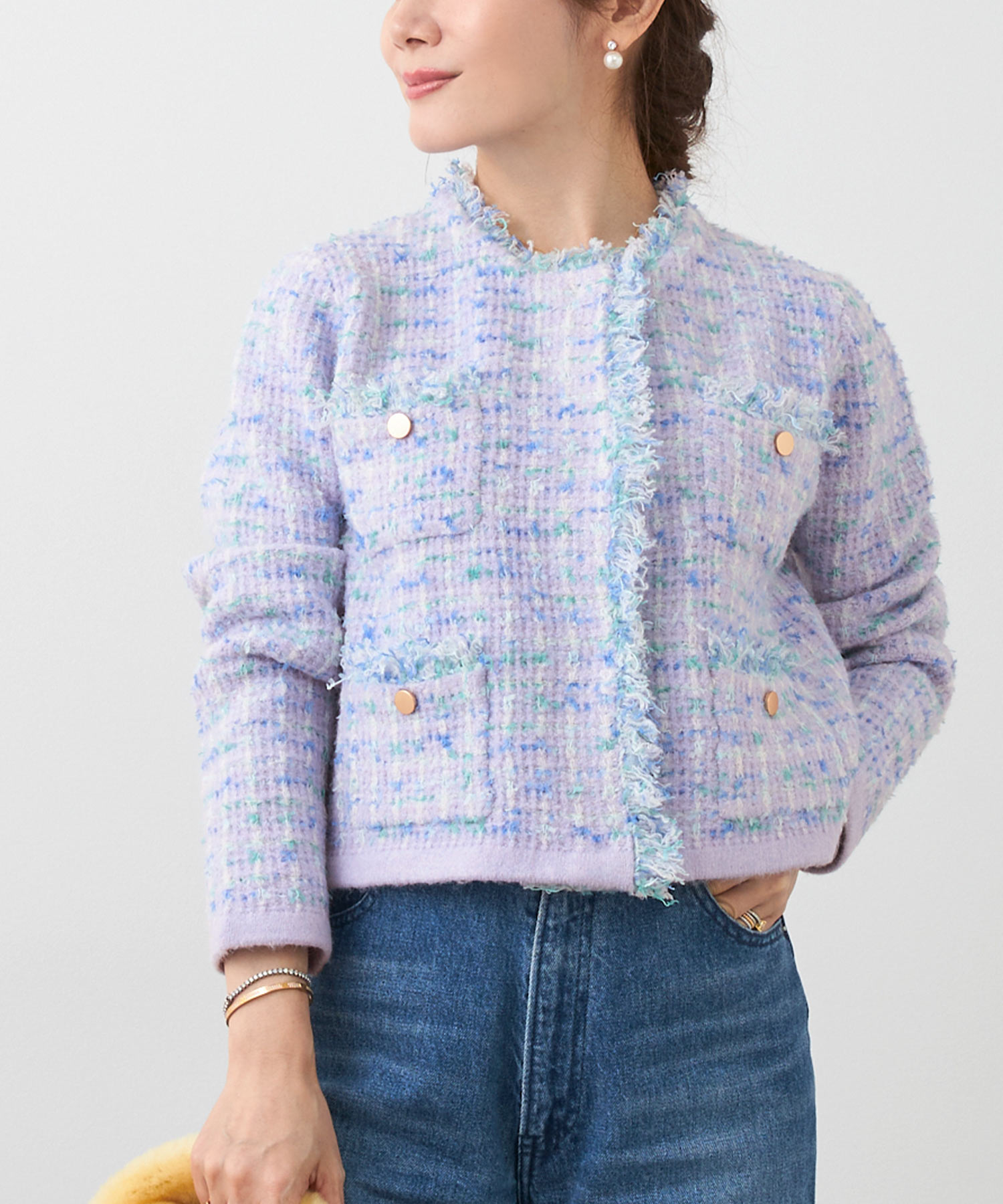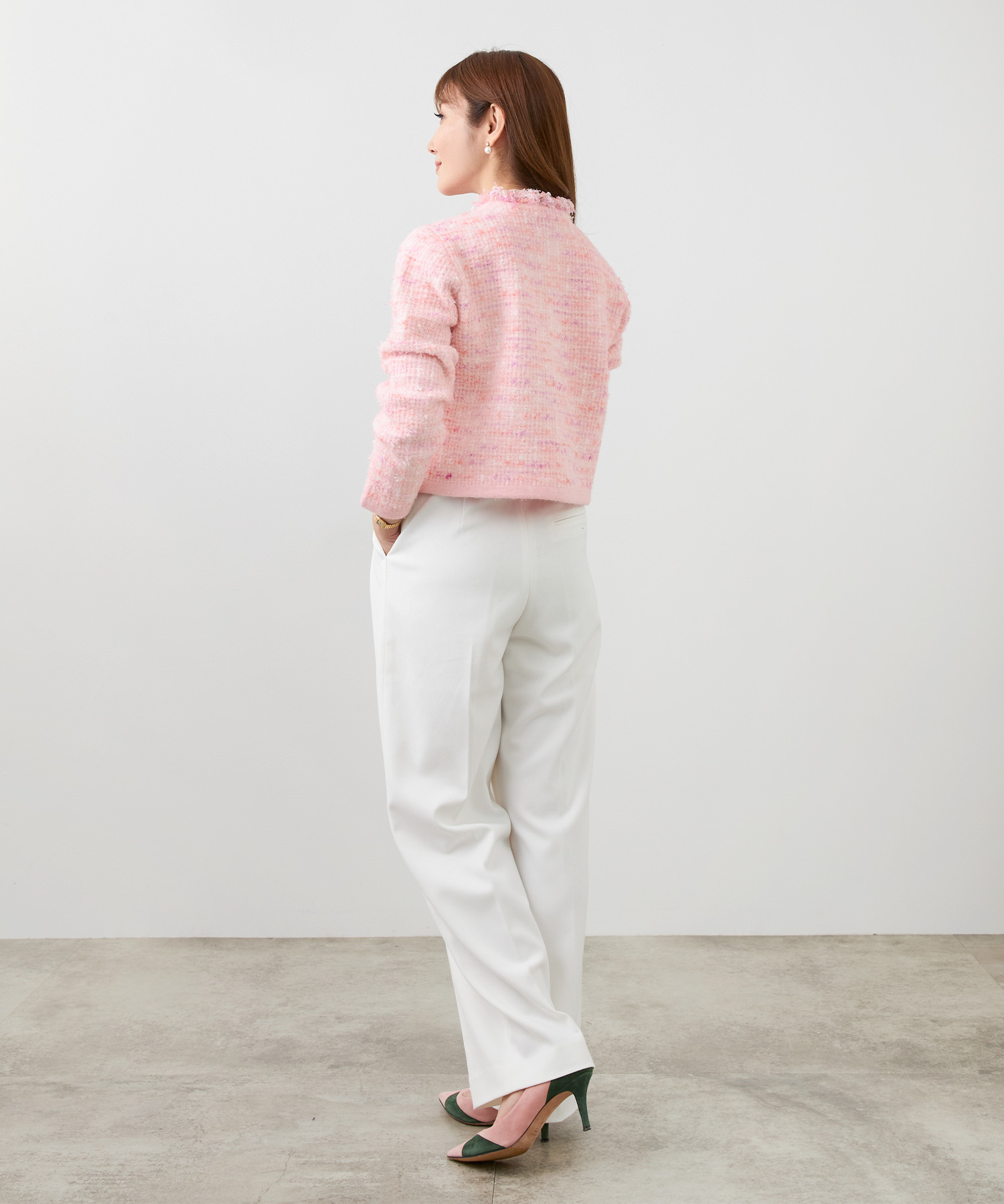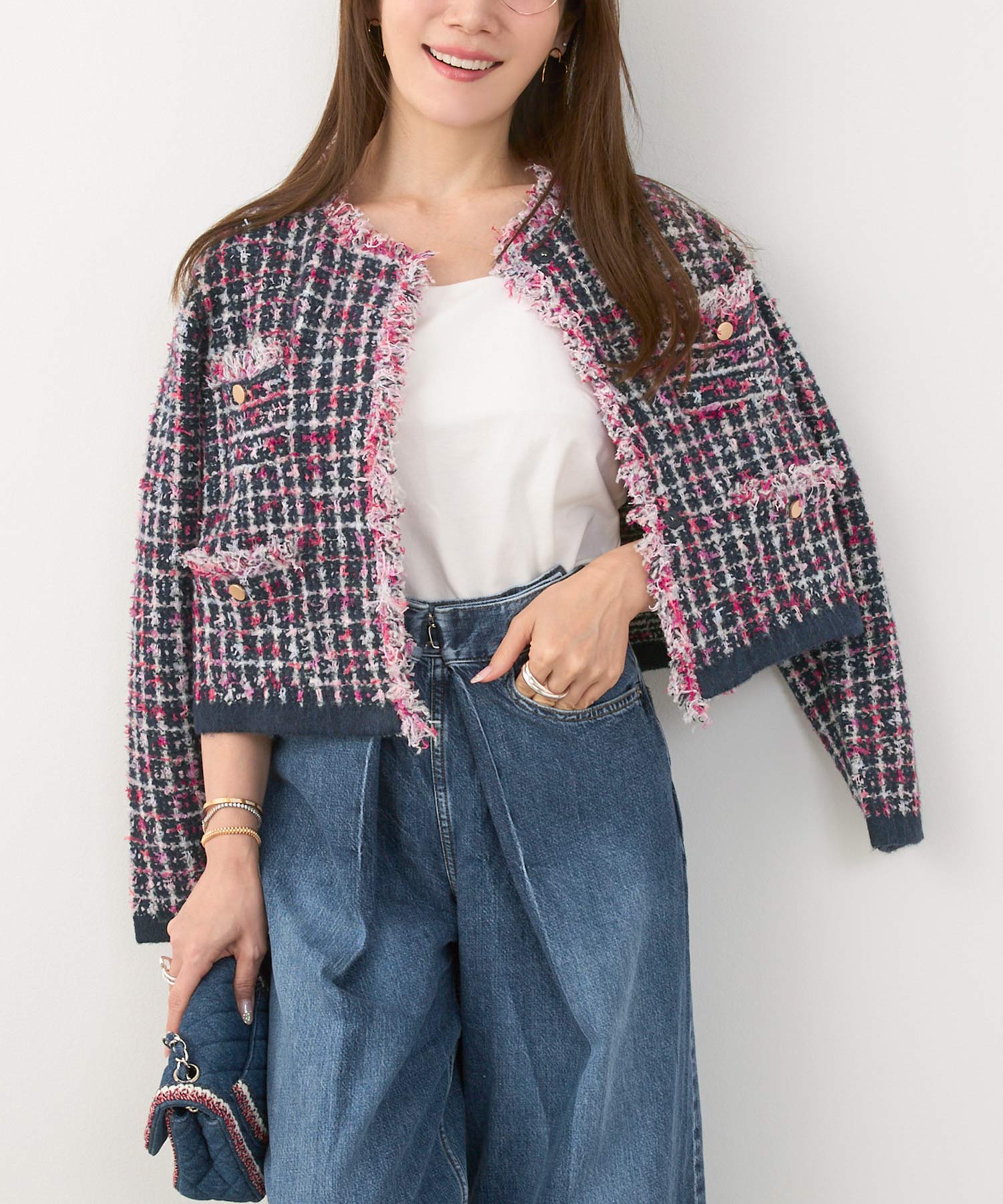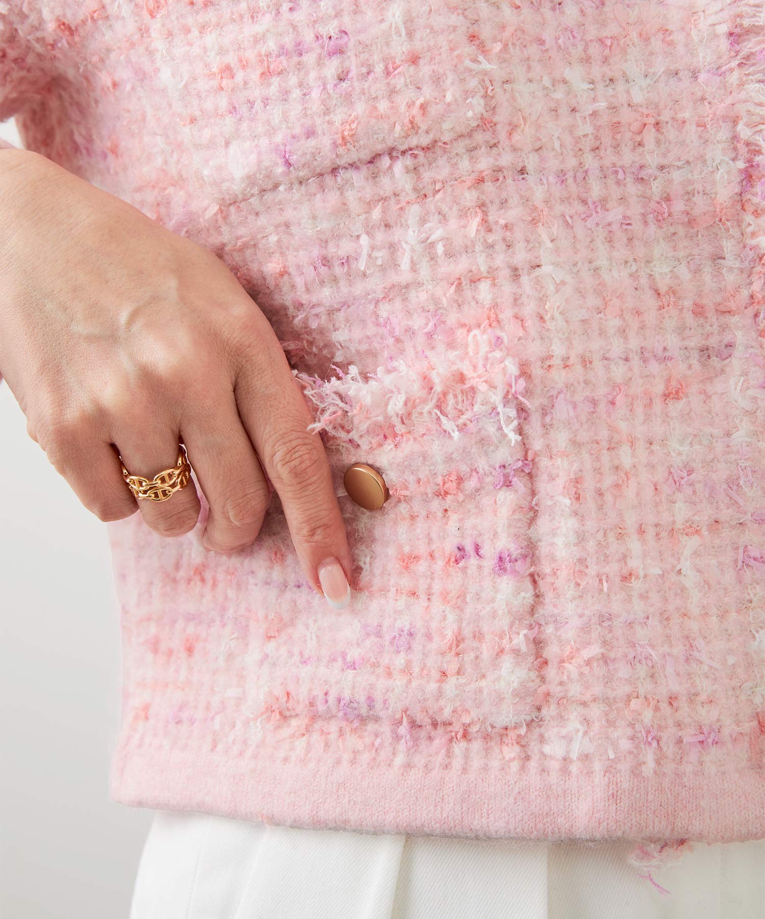 ふちフリンジツイード ラウンドネック ニット カーディガン(Liala×PG)¥9,900(税込)