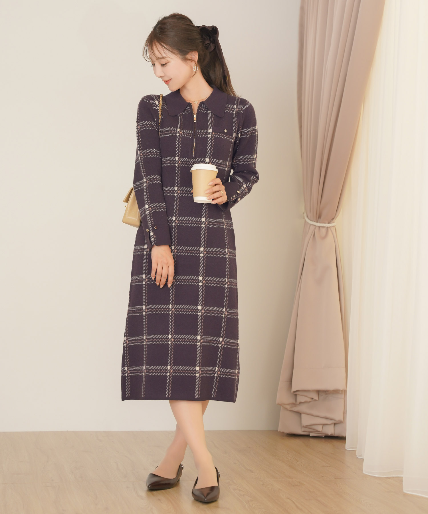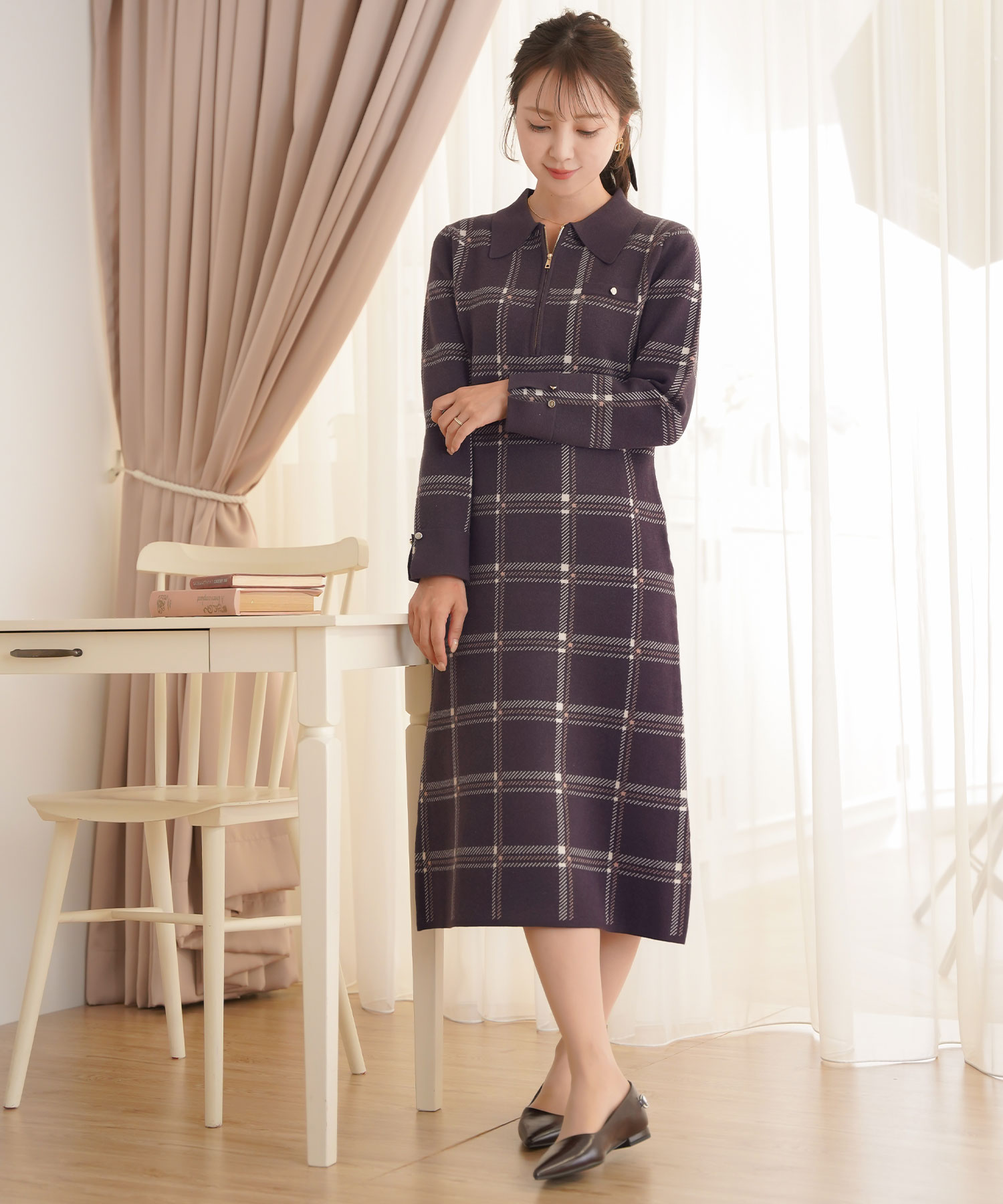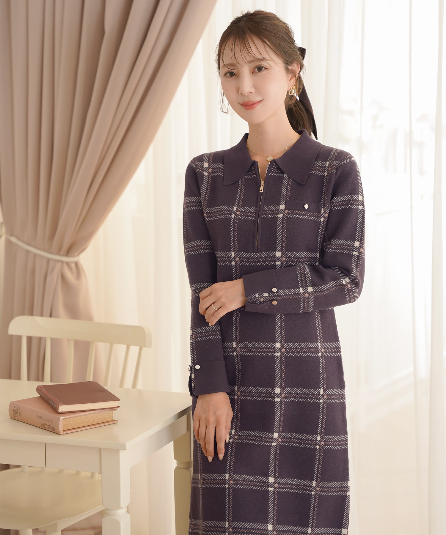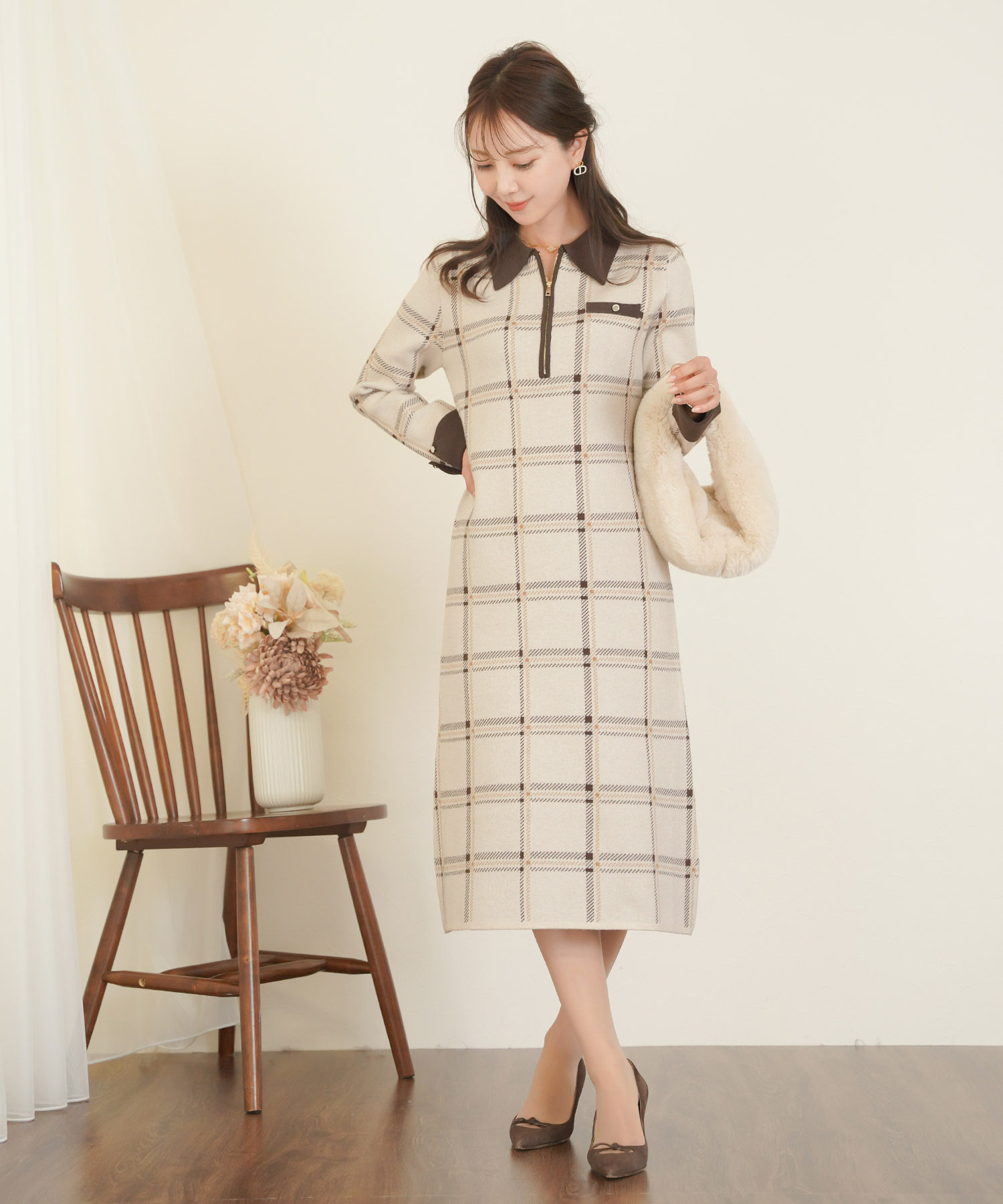 ハーフジップ チェック ニット ワンピース(le reve vaniller)¥15,400(税込)