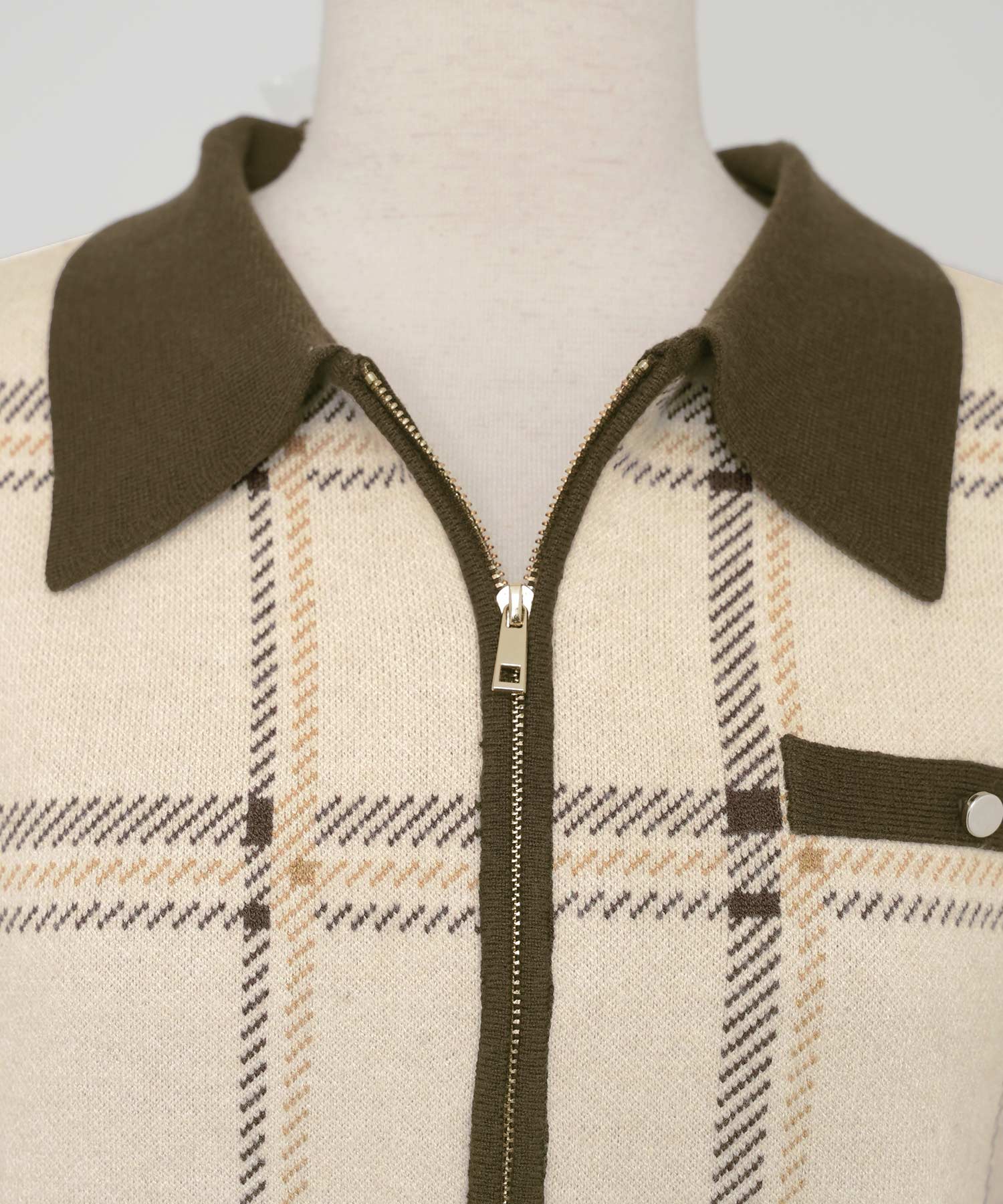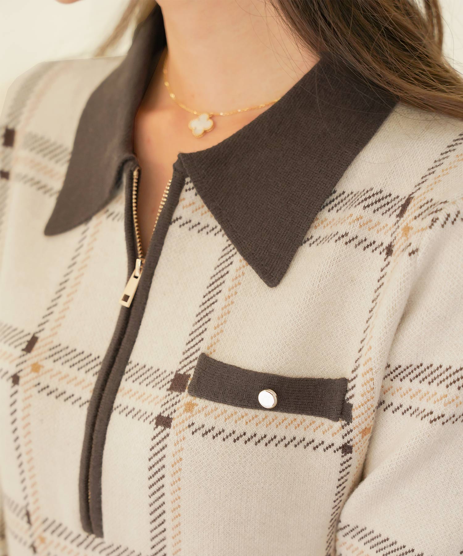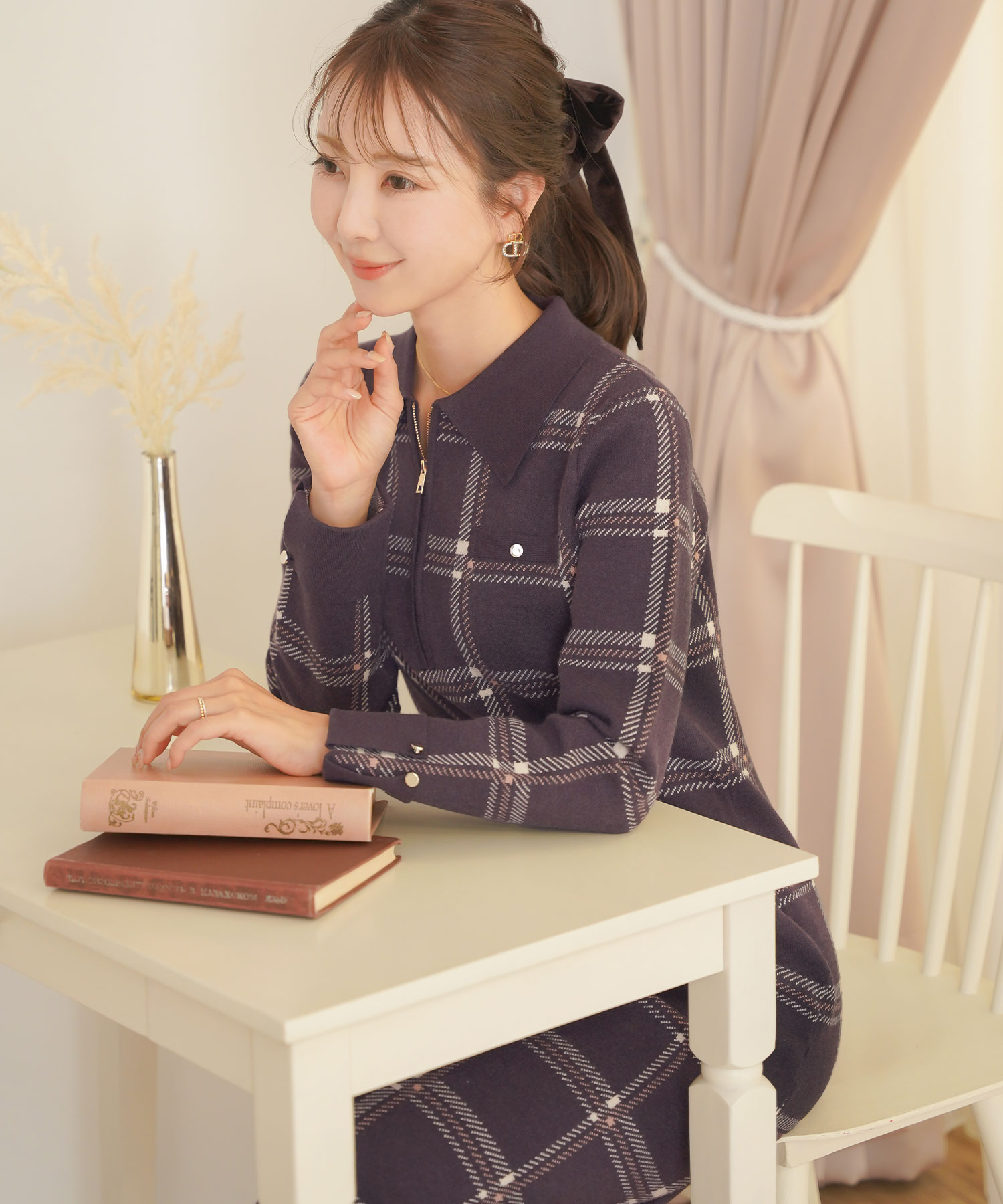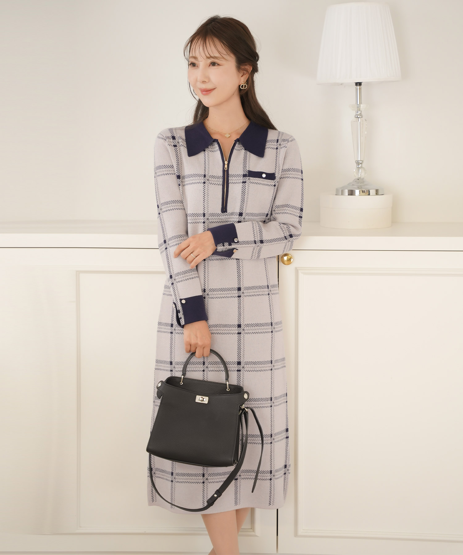 ハーフジップ チェック ニット ワンピース(le reve vaniller)¥15,400(税込)