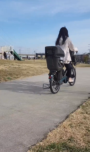 アウターを着てママチャリを漕ぐスタッフ動画もインスタアカウントで公開中!