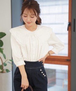 刺繍入り 襟スカラップ ブラウス le reve vaniller 全3色 |lvn821-1660