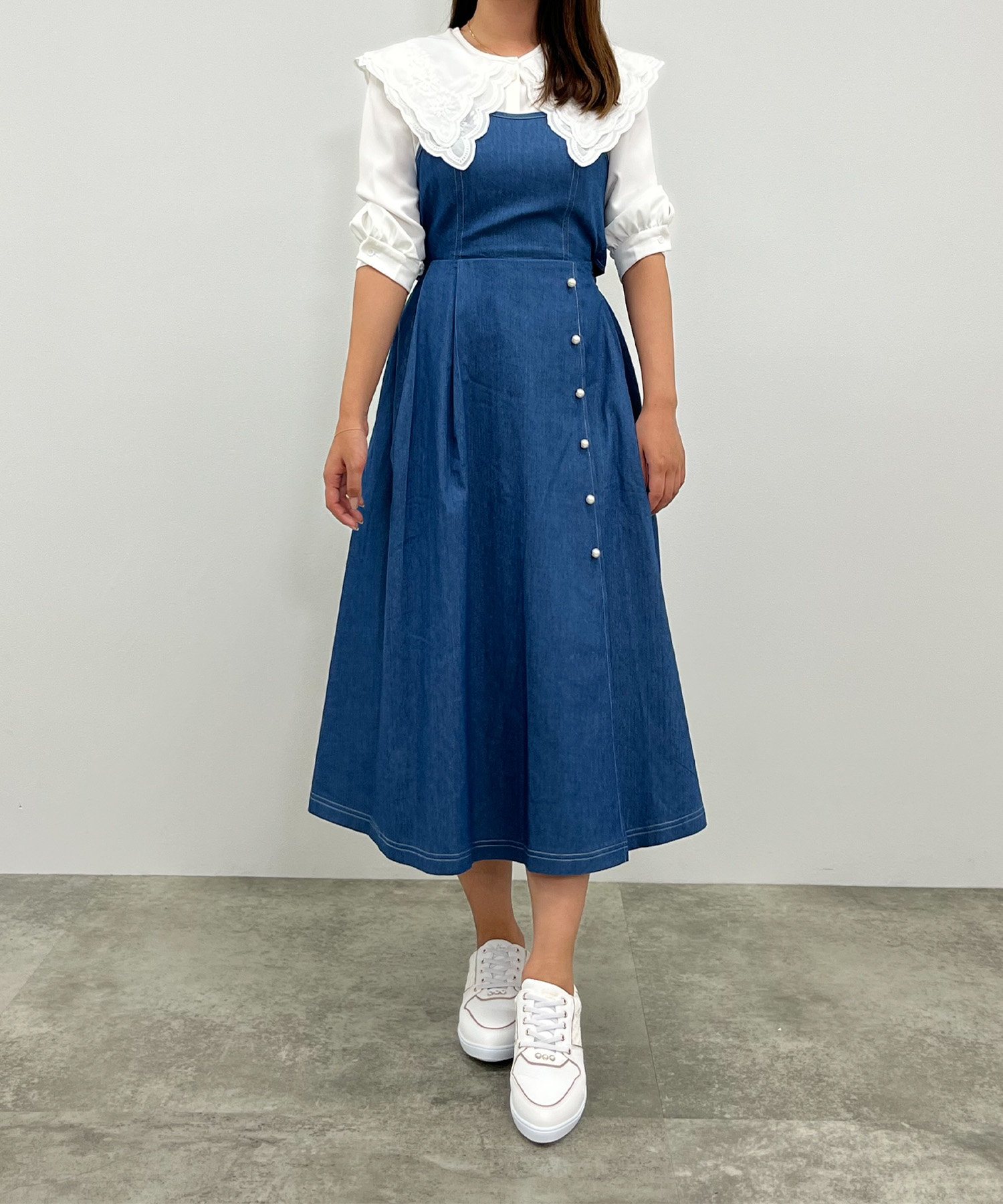 4:ポインテッドトゥがデニムワンピをきれいめに格上げ