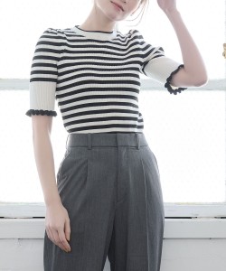 ボーダー 袖フリル ニット lieulien 全3色|lul411-0206