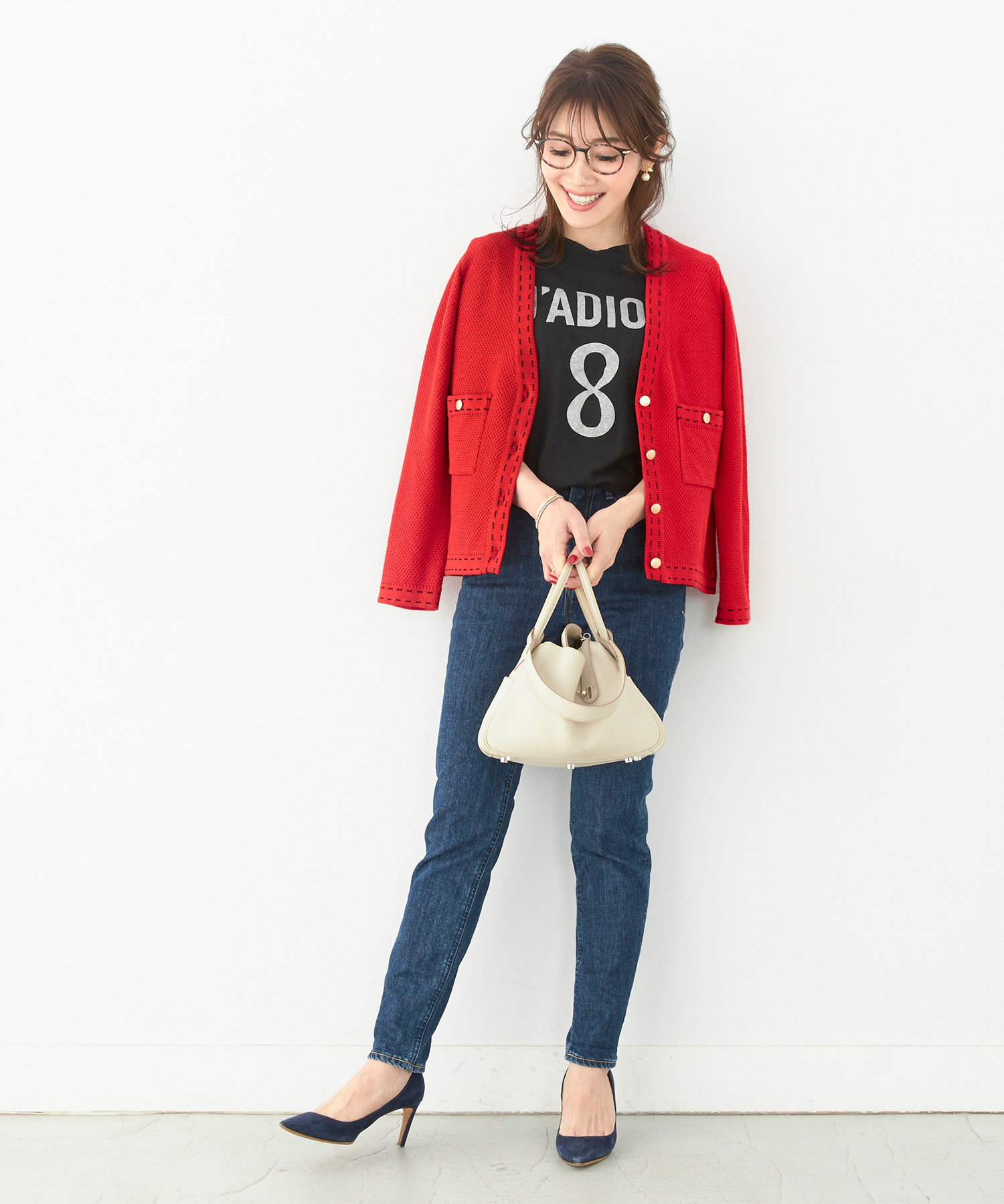 カジュアルなデニムコーデこそ、キレのあるぱっきりとしたルーシャスレッドで洗練させて。ルーシャスレッドのトップスを一枚投入するだけで、ただのデニムスタイルを大人っぽく格上げします。また明るいカラーリングが表情までエネルギッシュに見せてくれるところもポイントです。