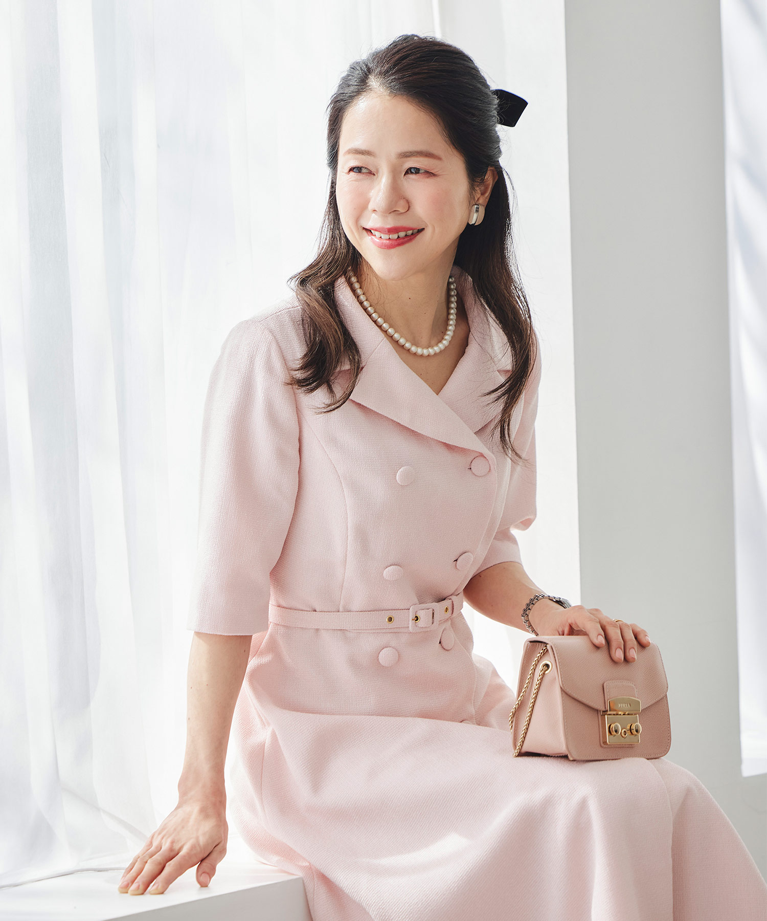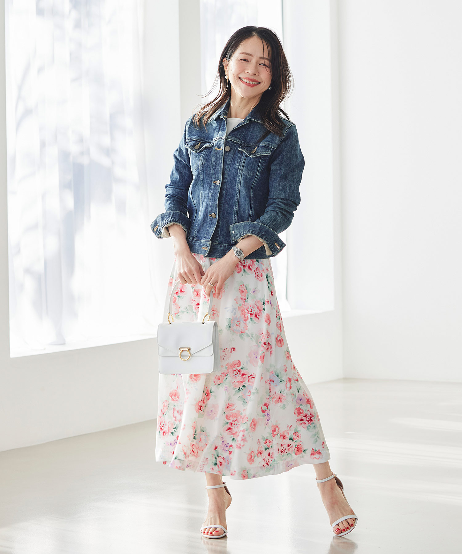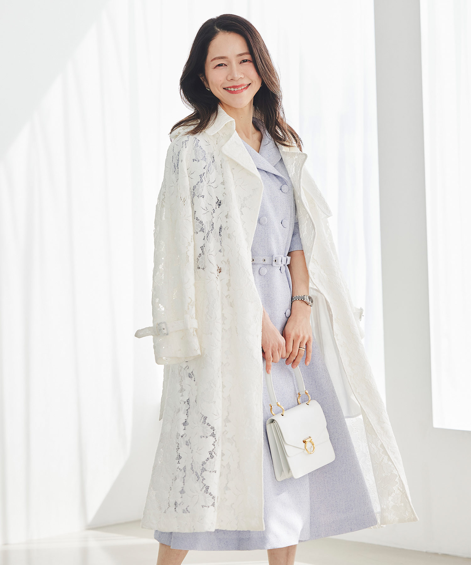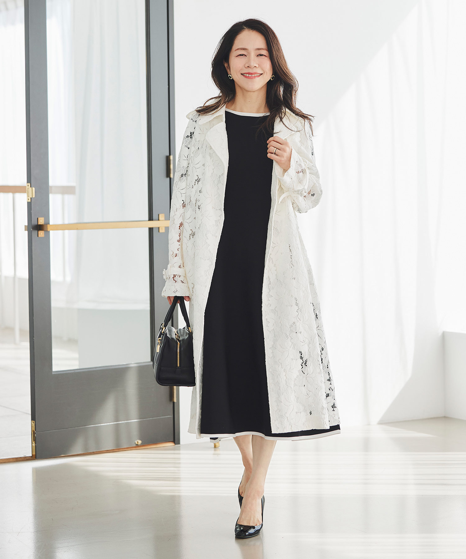 ただし大切なのは“防寒しつつ季節感を出すこと”。コートはそのままでも、インナーを白ニットやブラウスに替えたり、バッグやストールを春色にすることで重たさを回避できます。