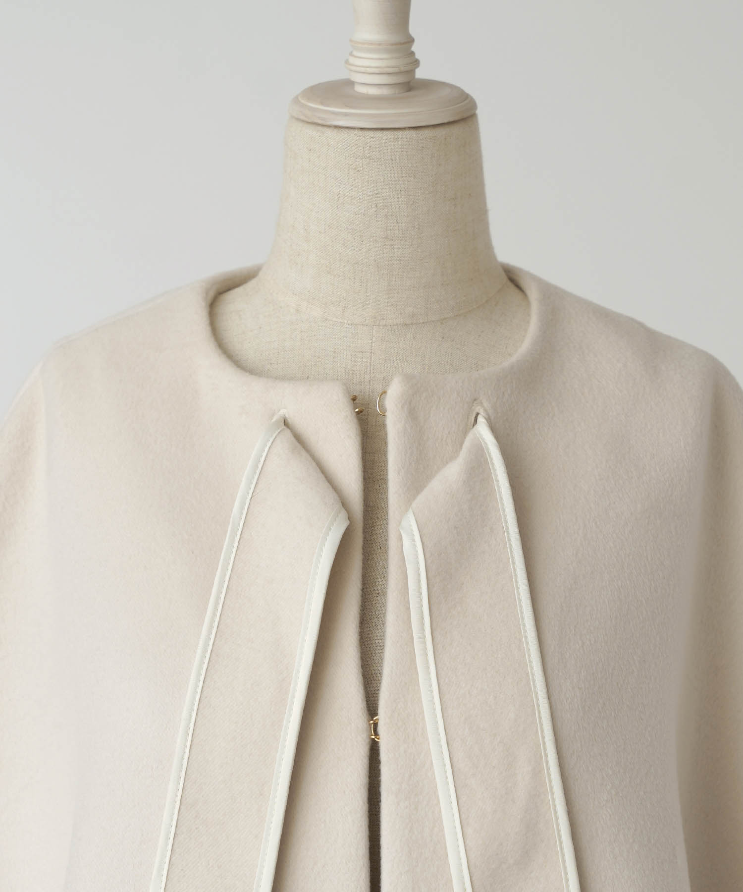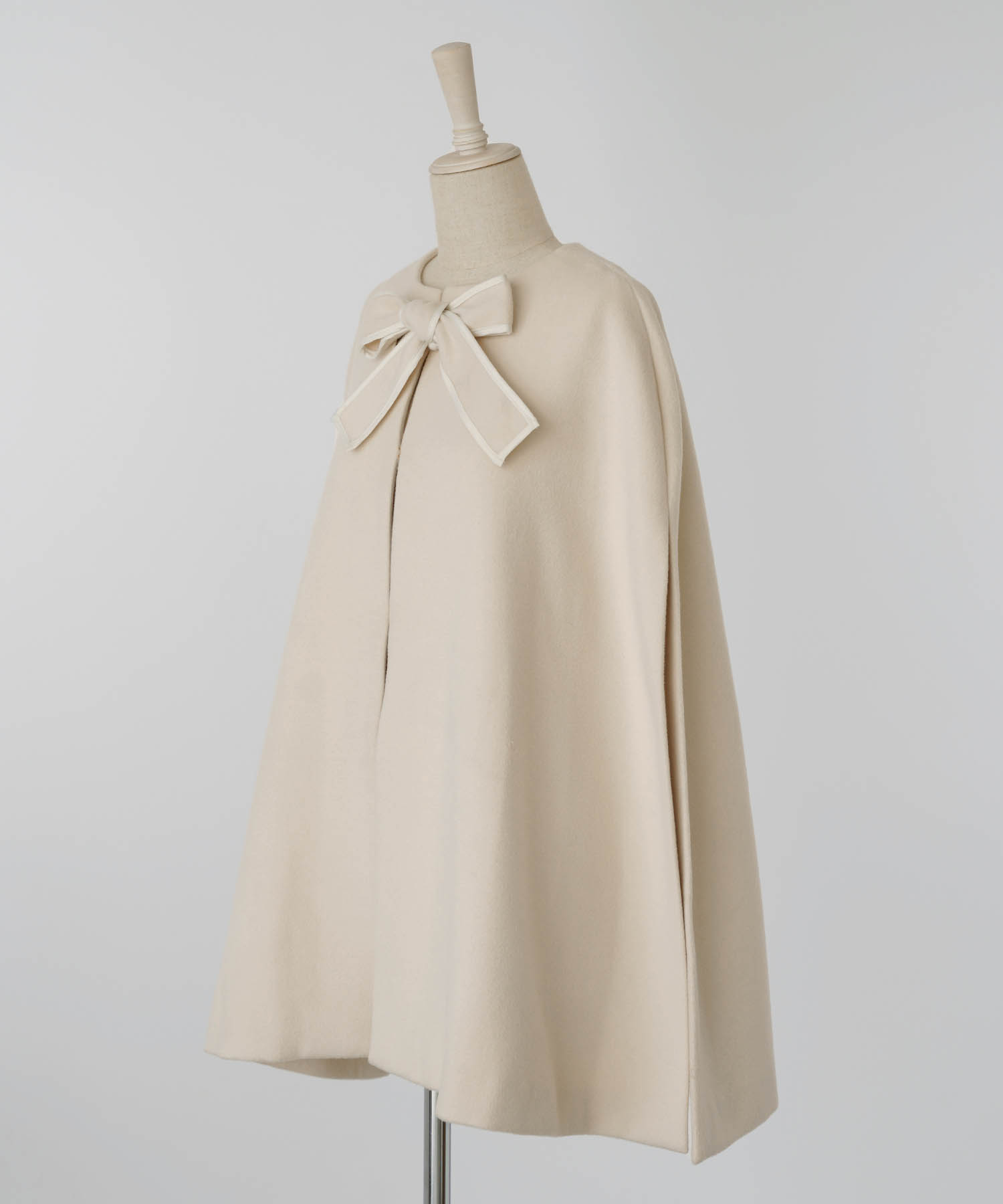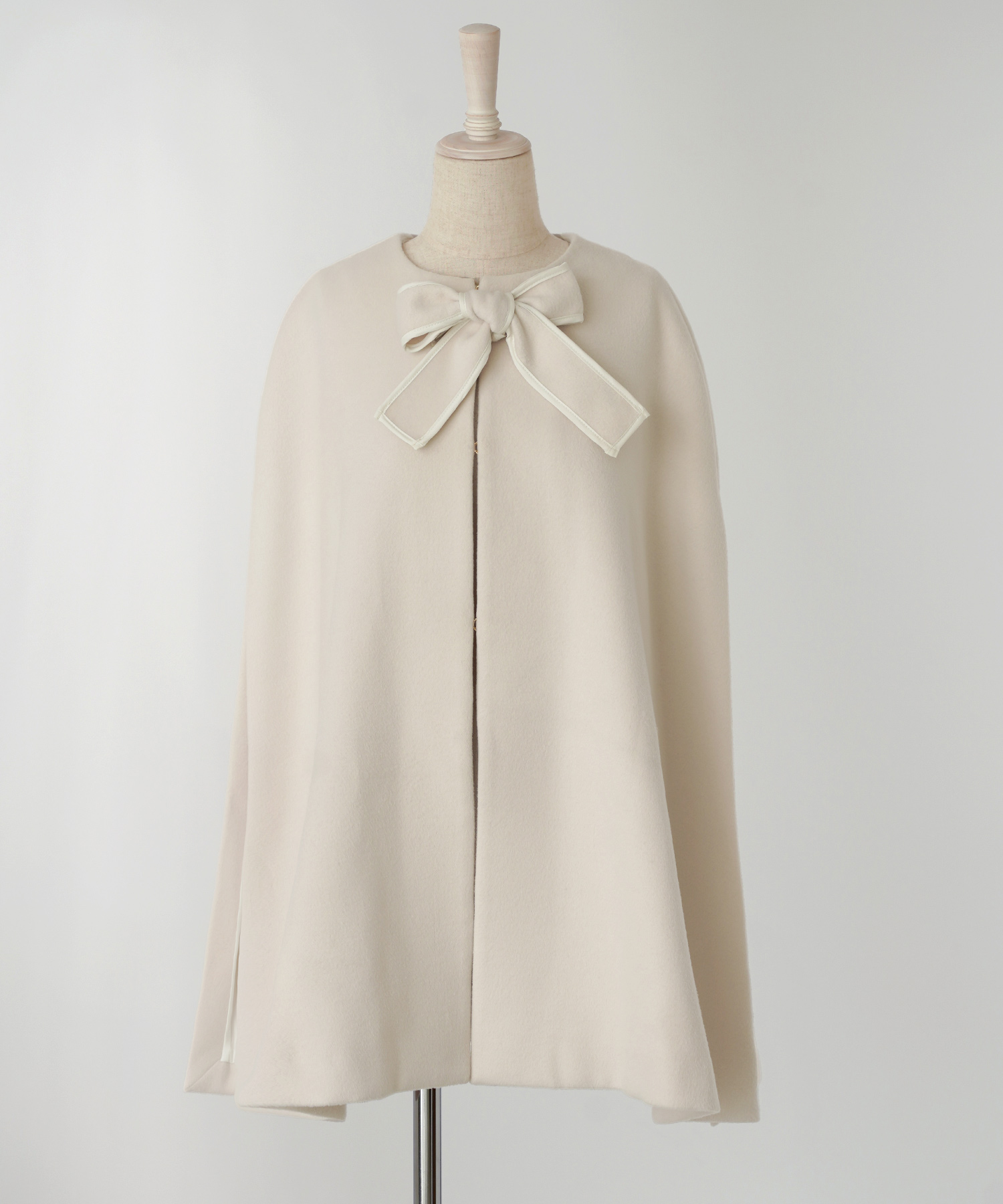大人女子にちょうどいい控えめな大きさのリボンがポイントのケープコート。バサッと羽織るだけでクラシカルで品のよい着こなしが叶います。首元はノーカラーでタートルネックをインナーに合わせて襟を見せた着こなしもおすすめです。