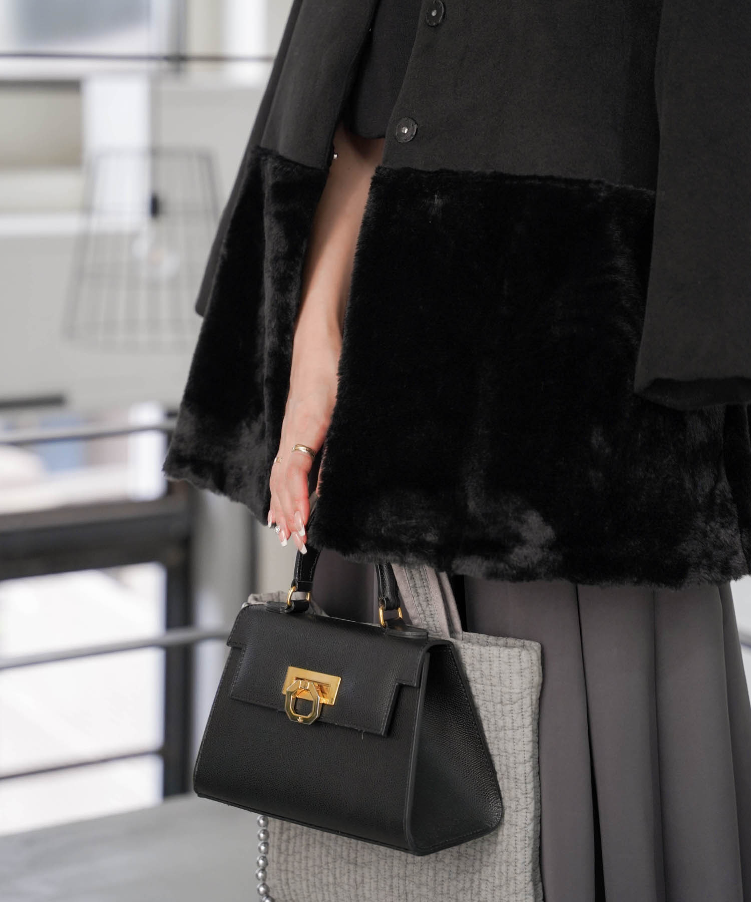 こちらはコートの裾に毛足の長いエコファーをあしらったデザイン。腰にかかるミドル丈で、裾に向かってやや広がったAラインシルエットが女性らしさを際立たせます。素材は冬の防寒にもぴったりのウールを使用。秋冬と大活躍してくれるアイテムです。