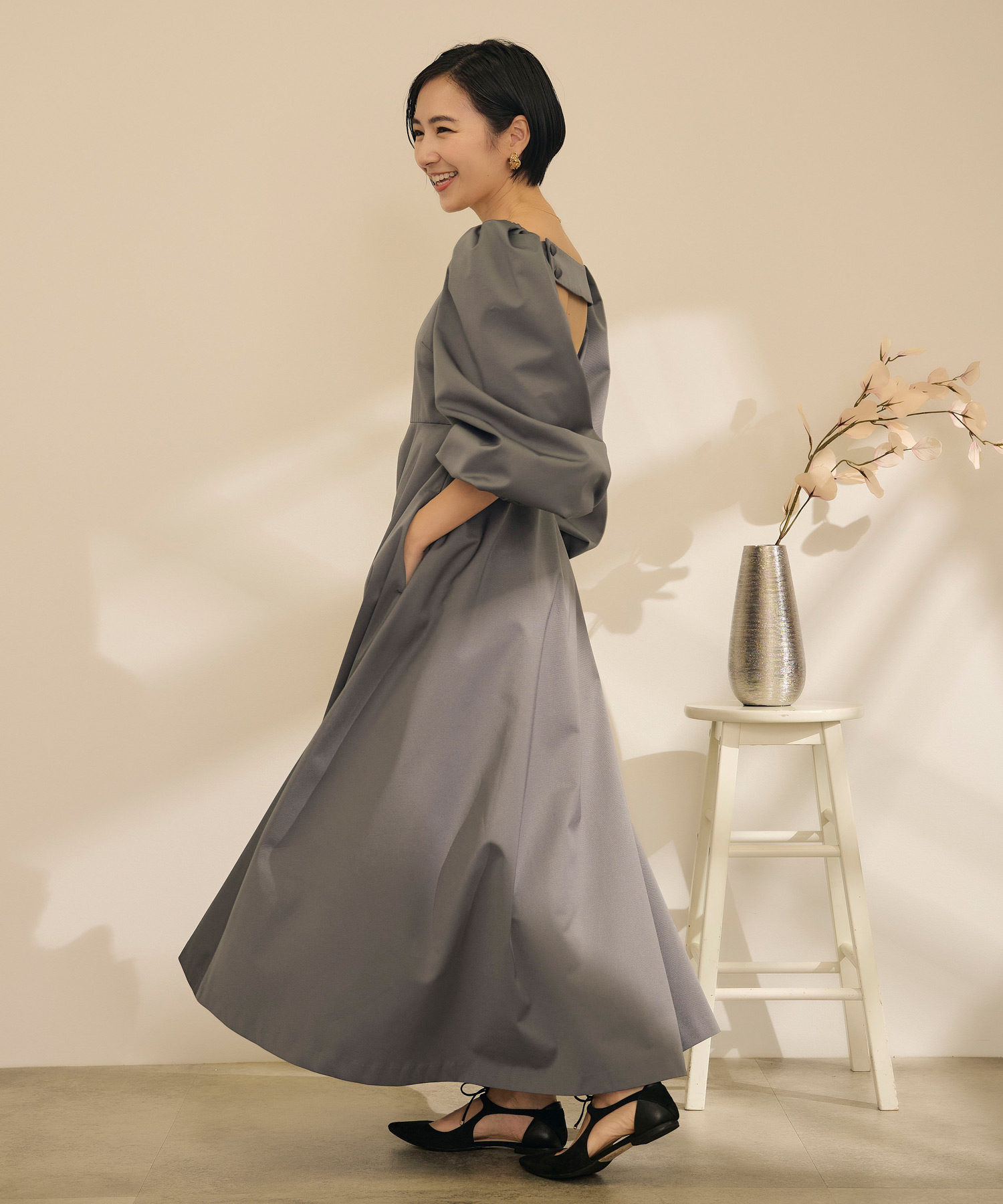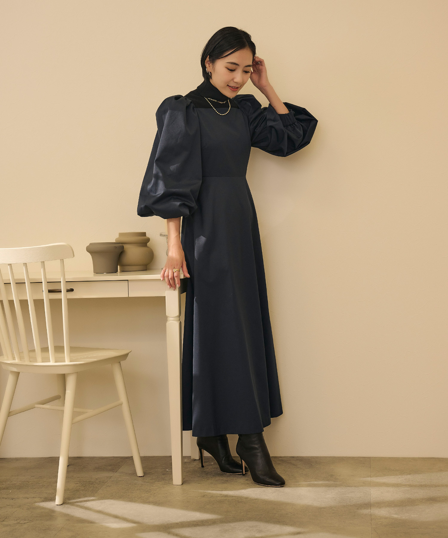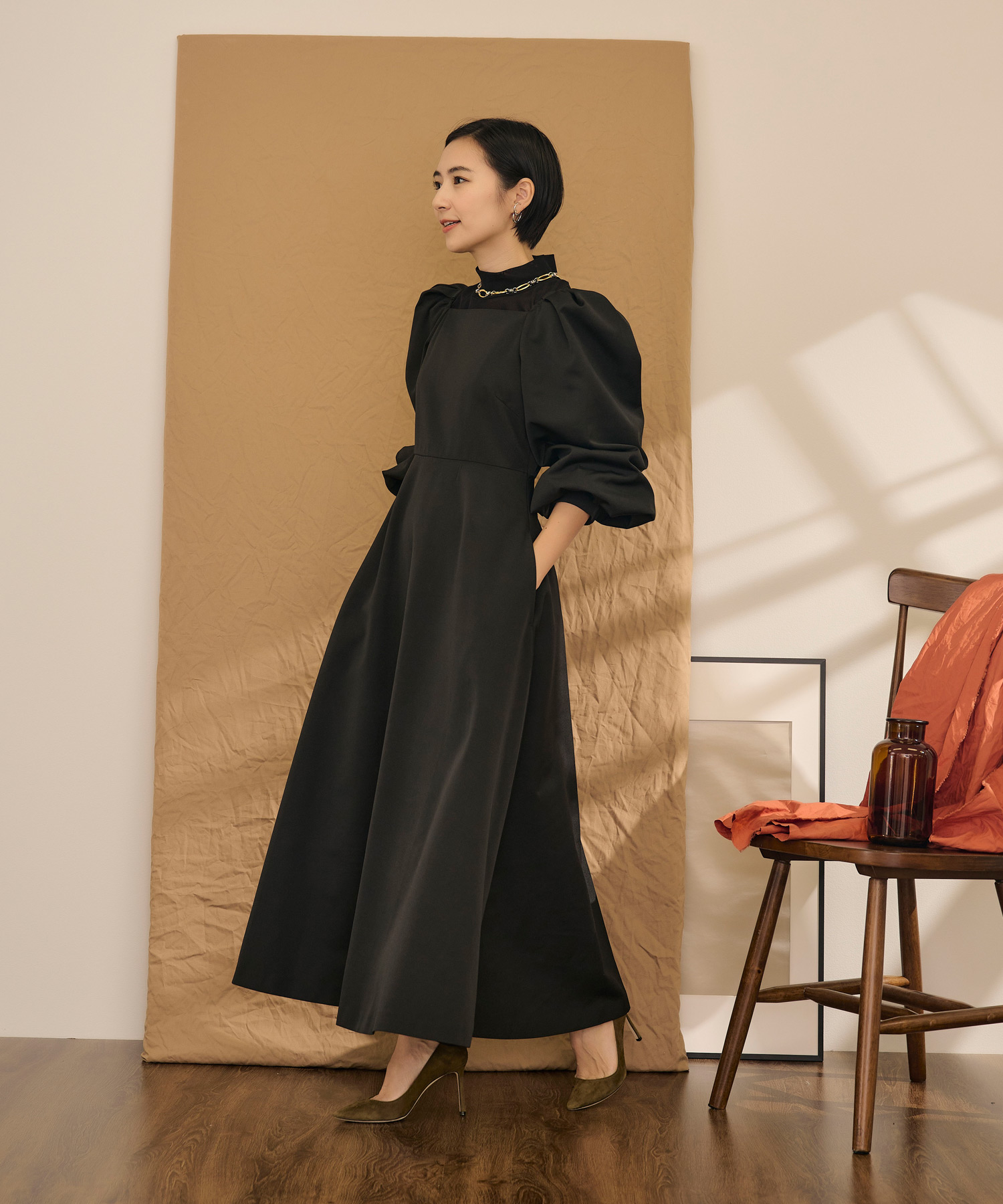 ■スクエアネック ボリュームスリーブ ワンピース (lieulien×sari kiri)¥15,180