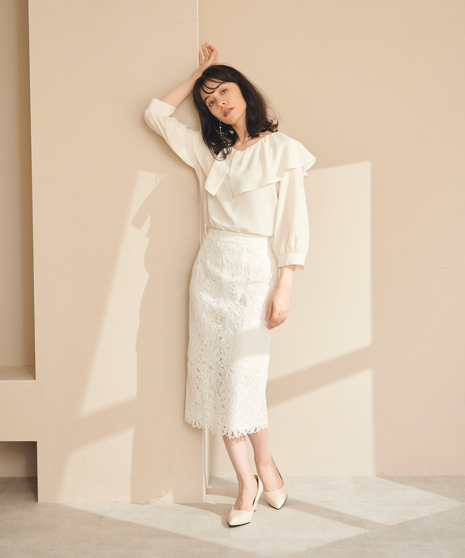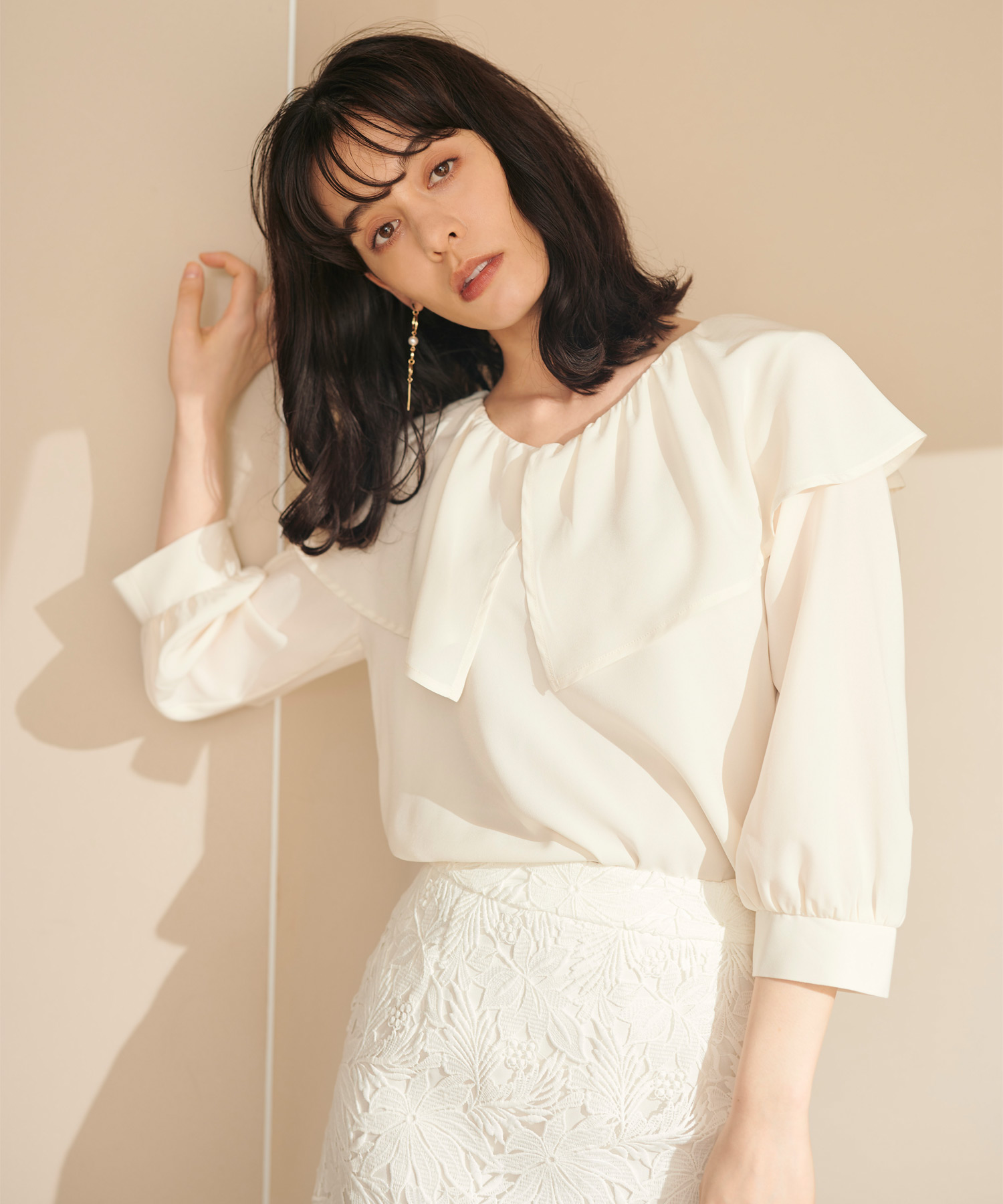 顔周りを明るく華やかにするビッグカラーのデザインブラウス。とろみのある素材感が上品で、タイトスカートやストレートパンツとスタイリングすることで通勤スタイルにもぴったりのきれいめコーデが叶います。