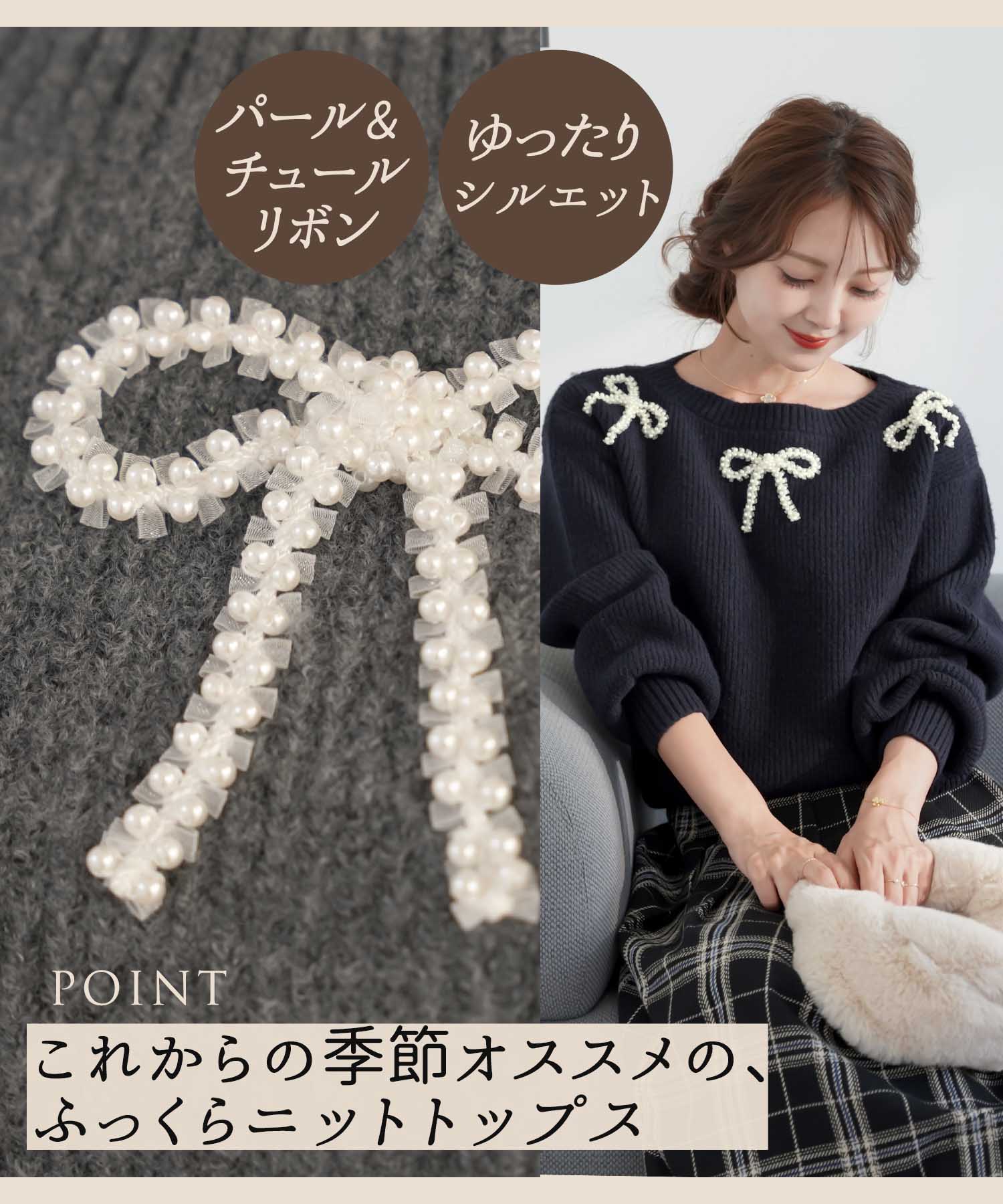 ■リボンモチーフ パール ニット トップス (le reve vaniller)¥9,980