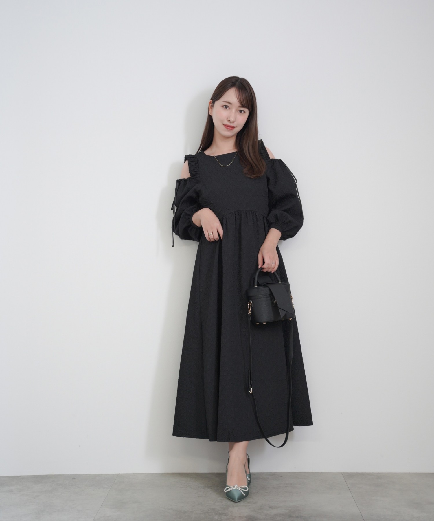 カッティングショルダー ジャガード ワンピース(lieulien×Chika)¥14,080(税込)