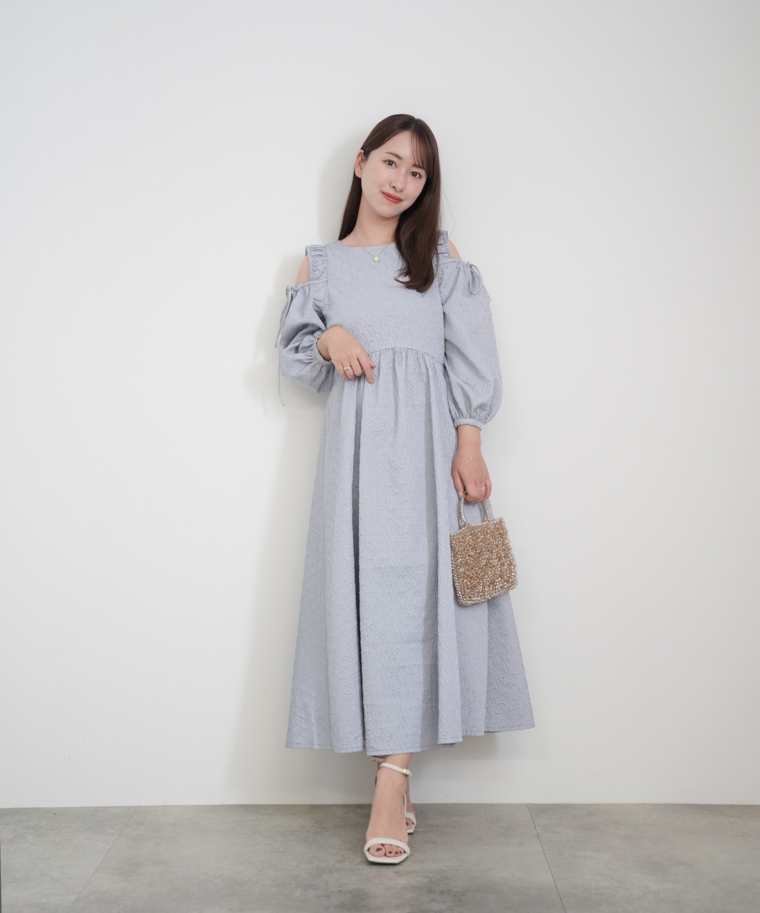 観劇やコンサートで華やかさをプラス!両肩リボン付きワンピース