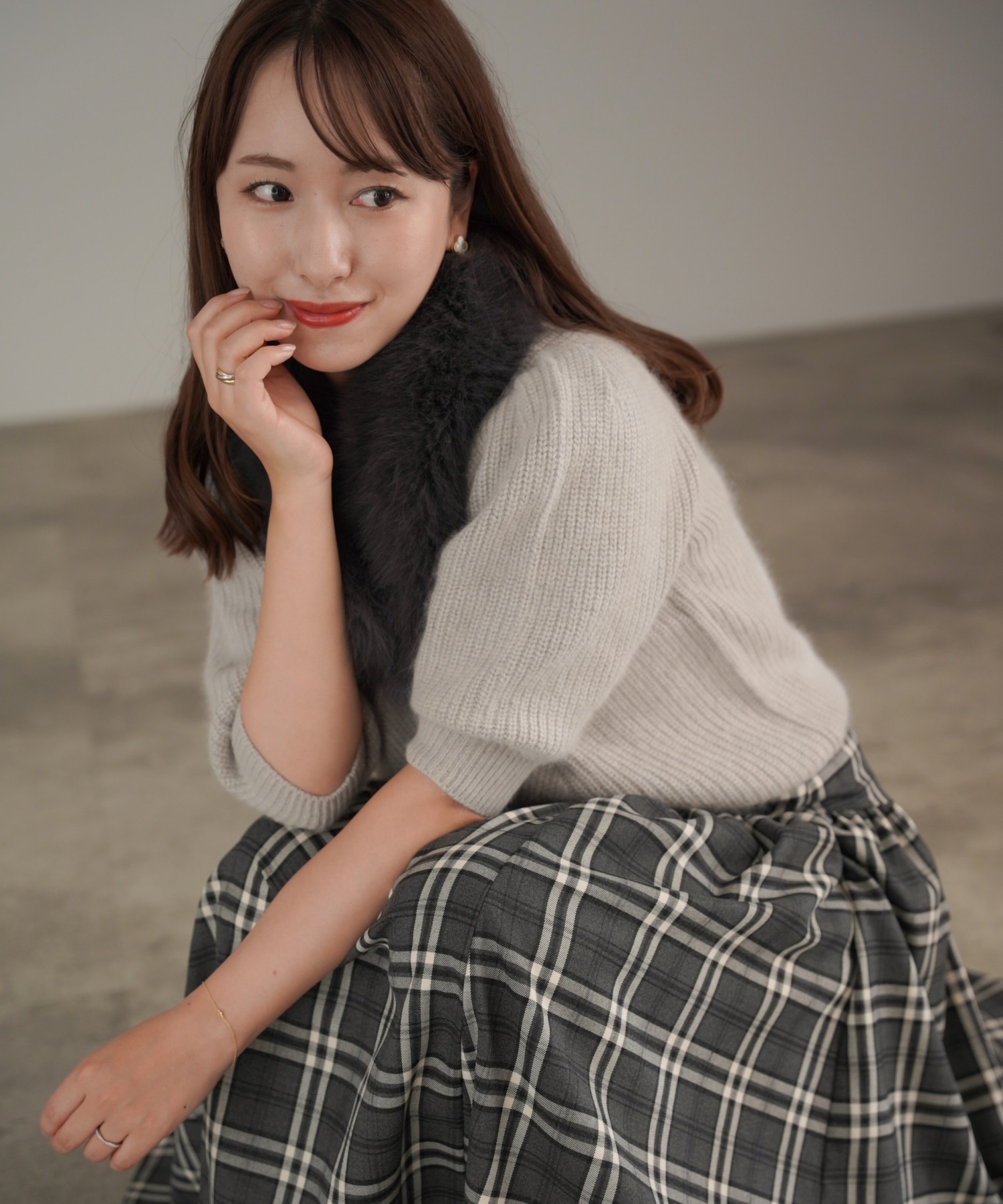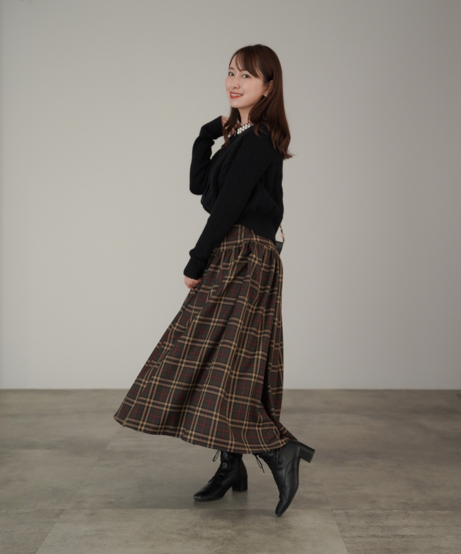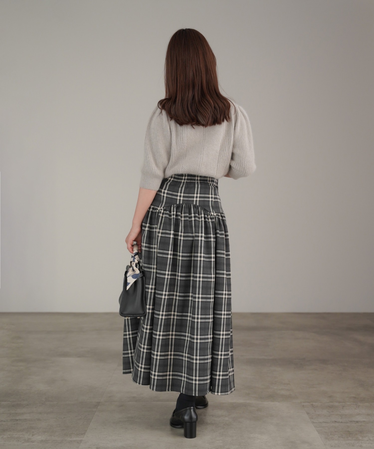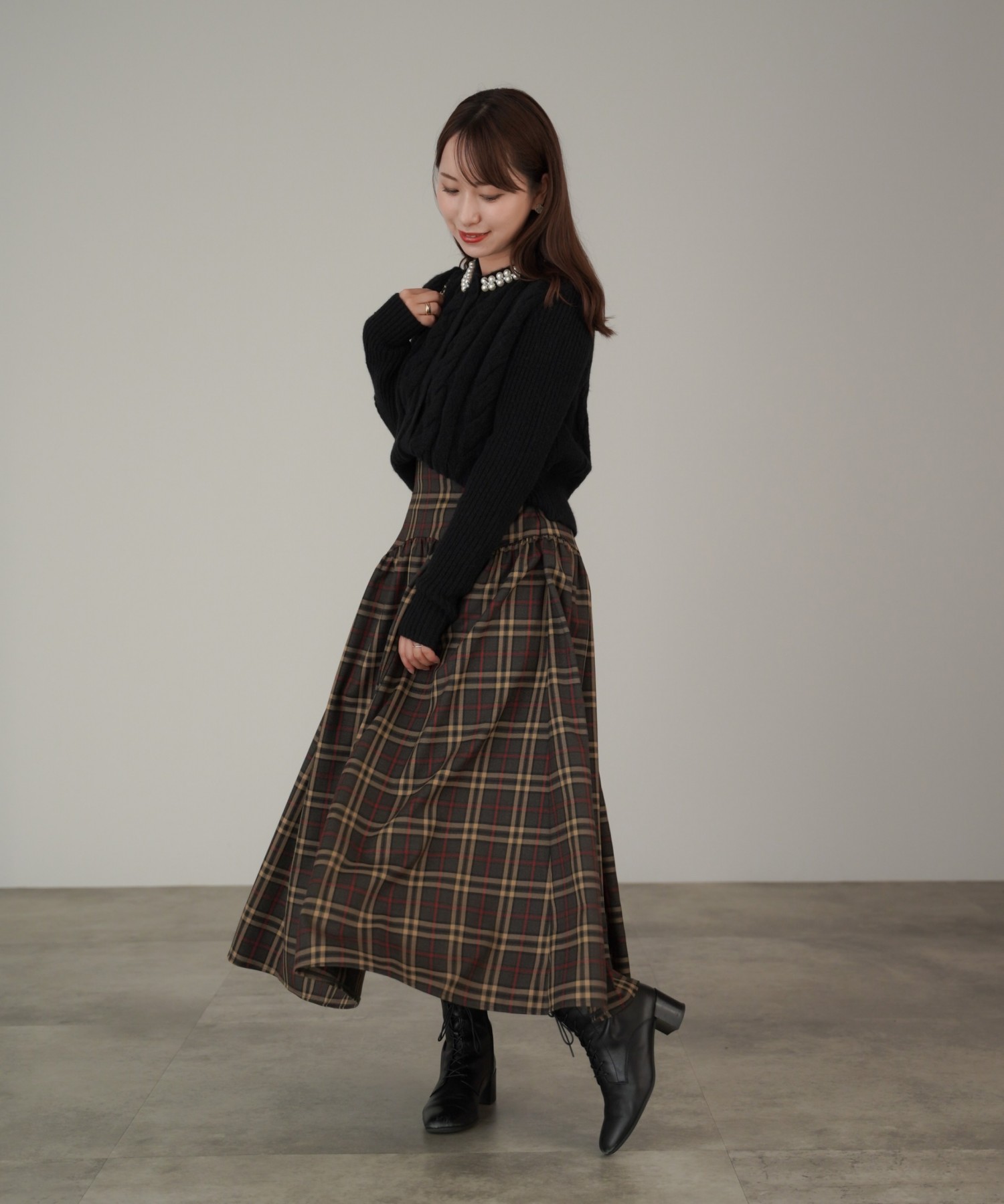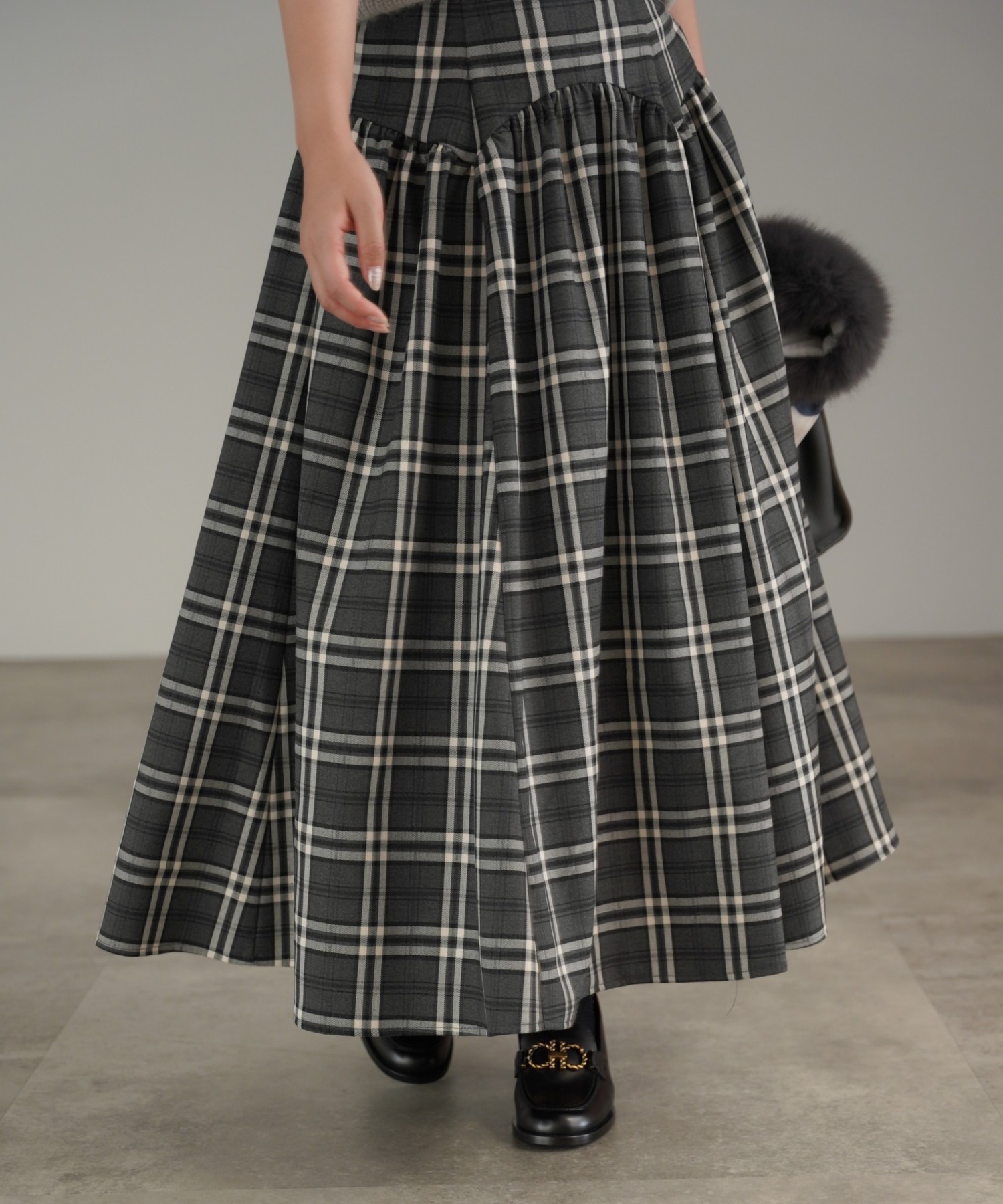 スカラップ切替 チェック フレアー スカート (lieulien×Chika)¥14,300(税込)