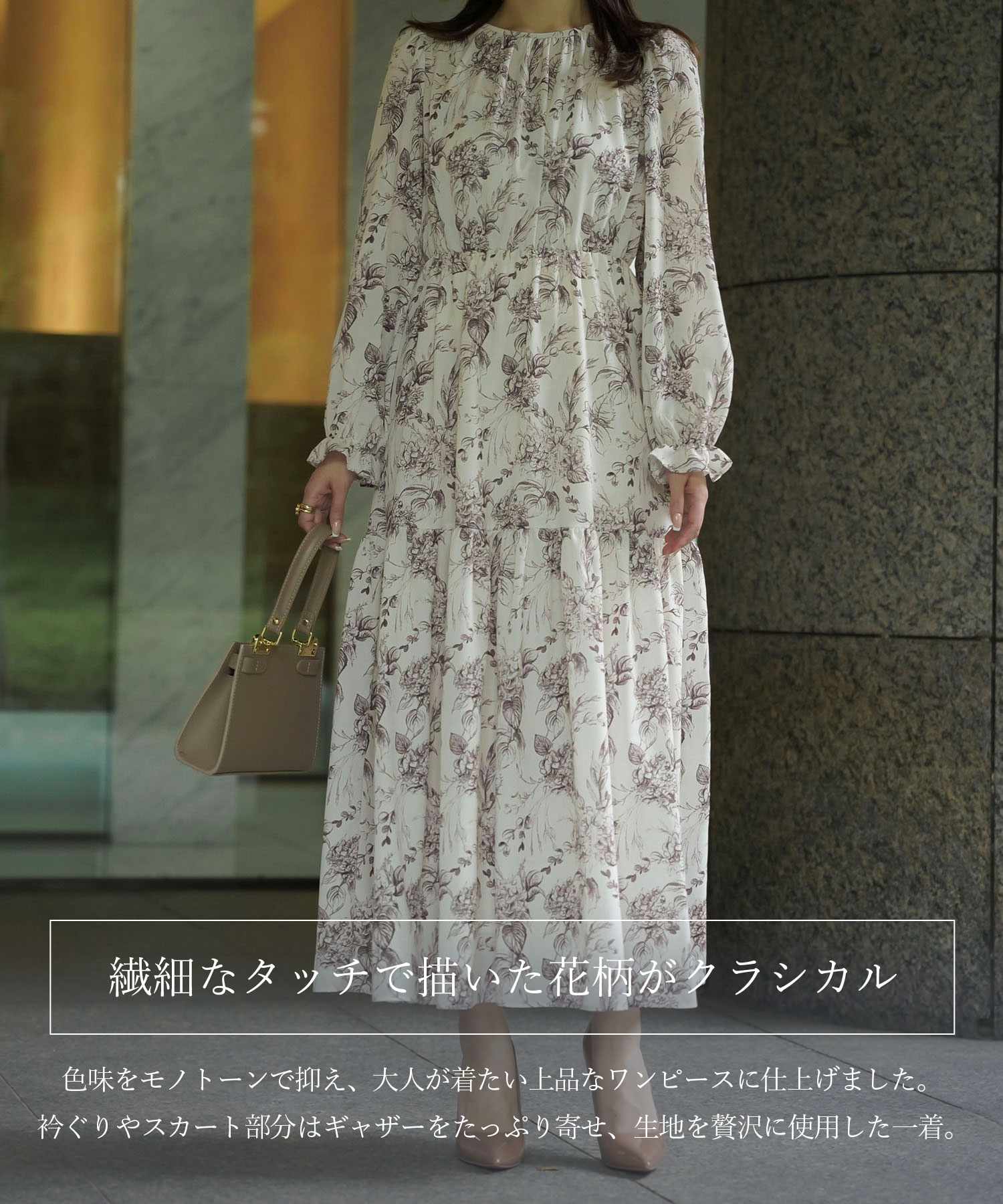 クラシカルな花柄で気品を纏う!ホテル婚活イベントに最適な上品ワンピース