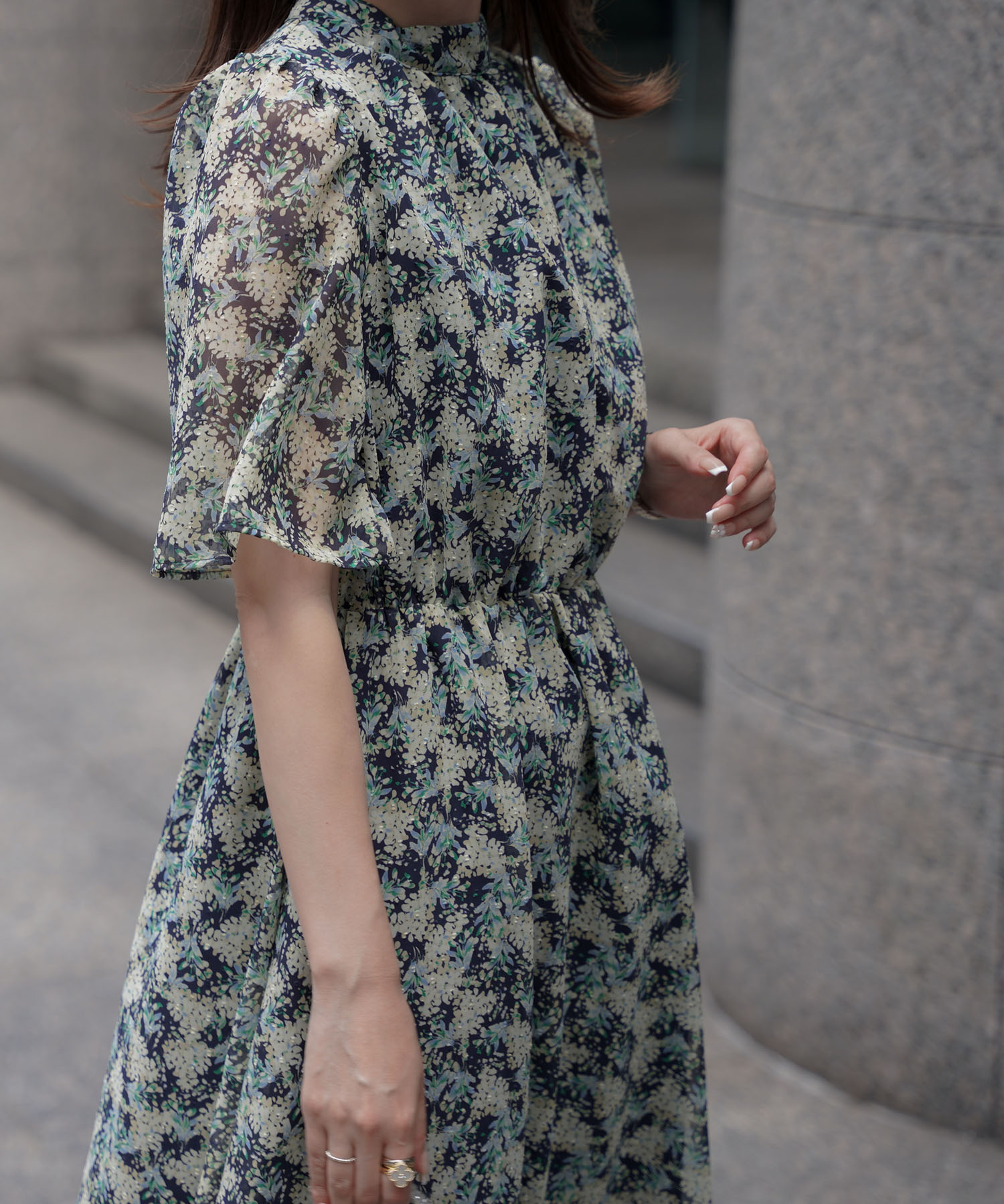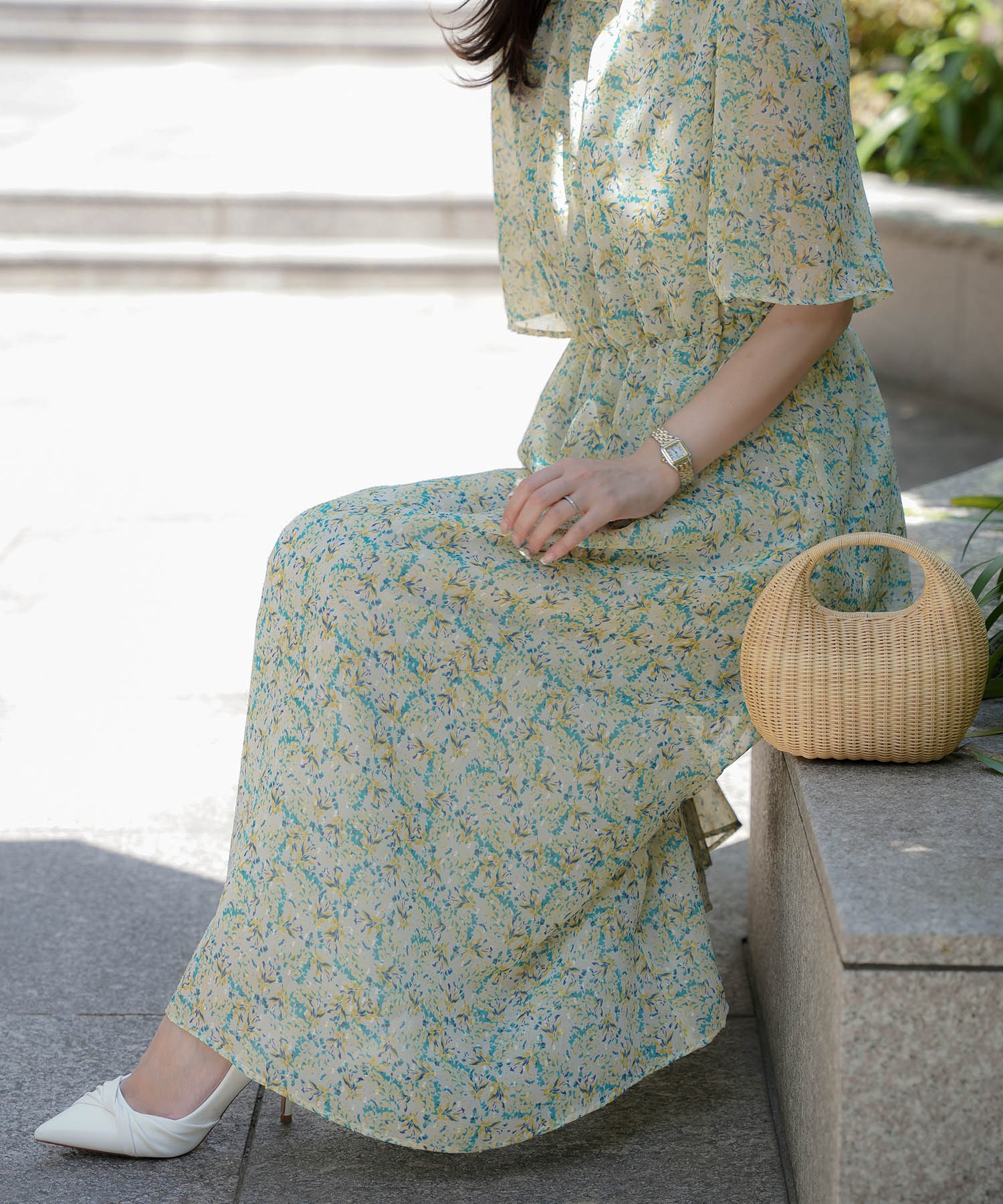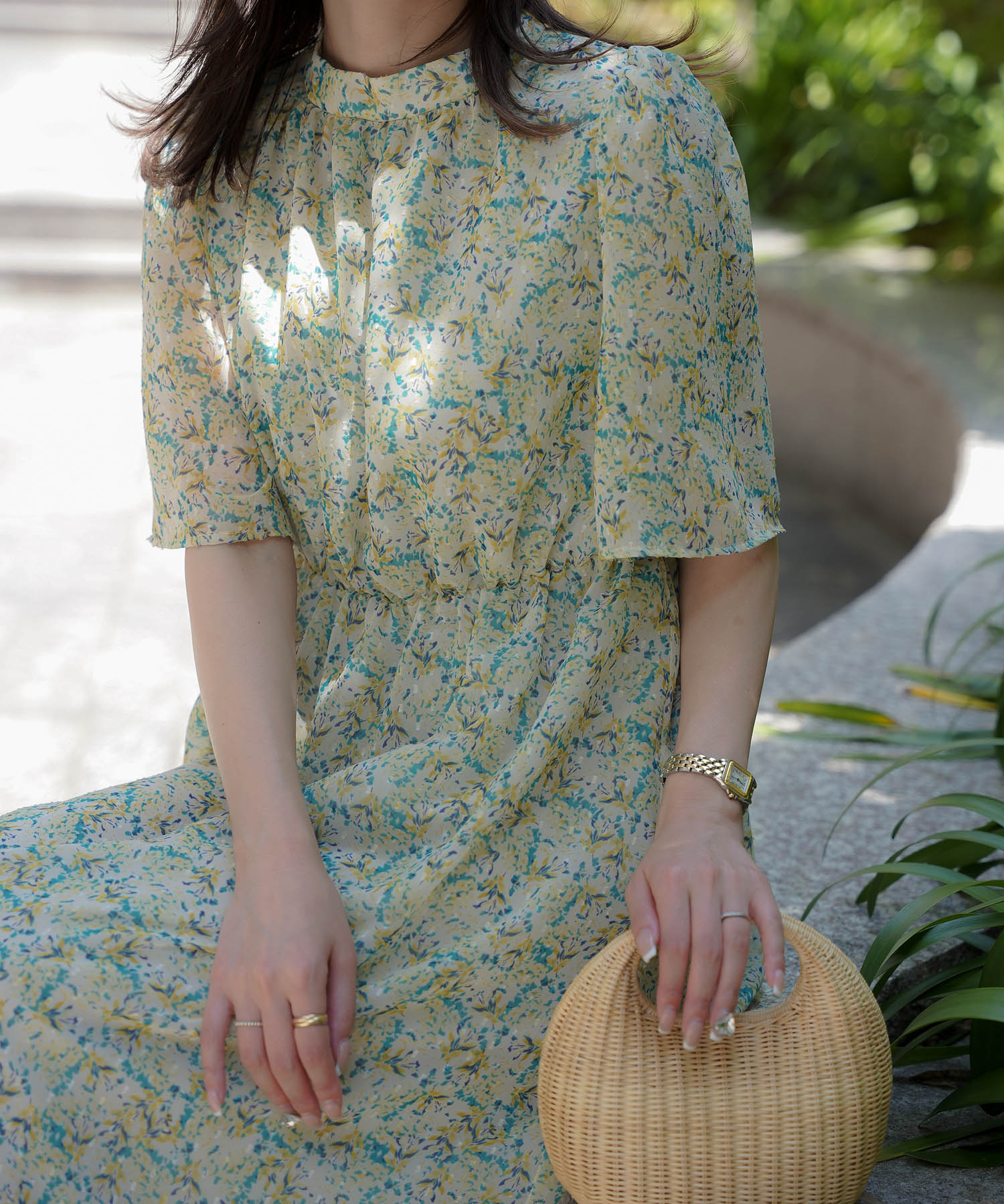 水彩柄 シフォン カットドビー ワンピース(HUIT)¥17,380(税込)