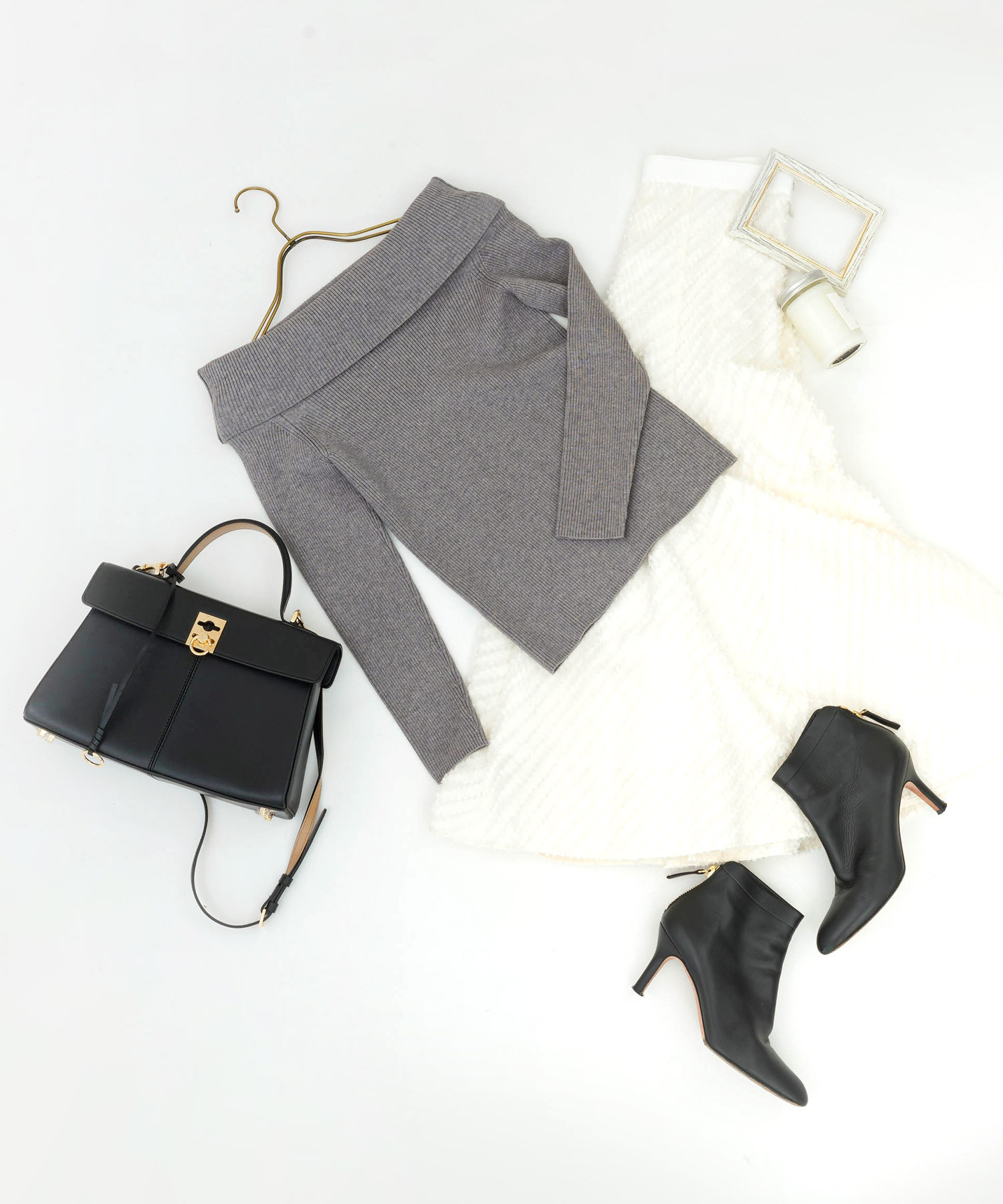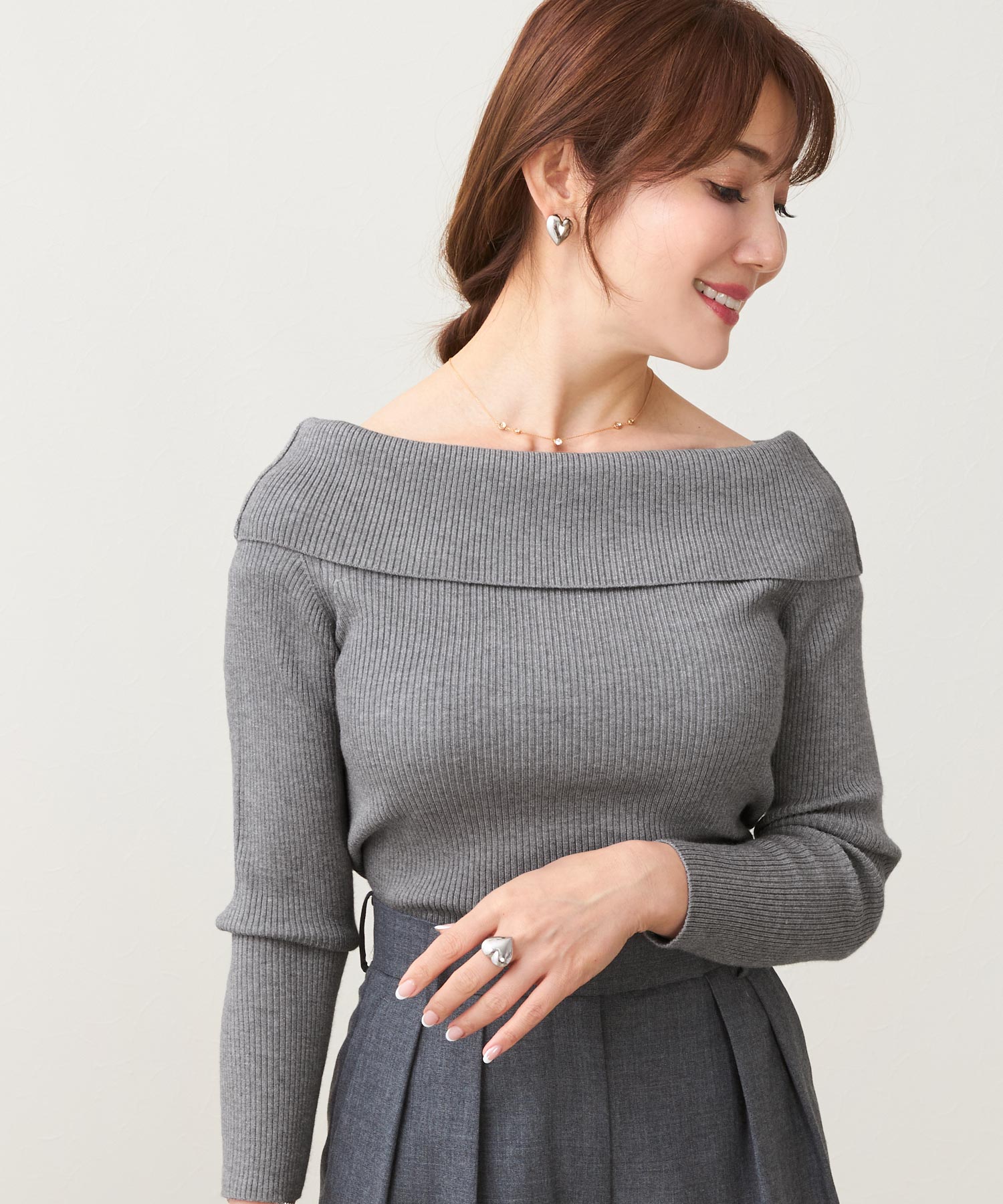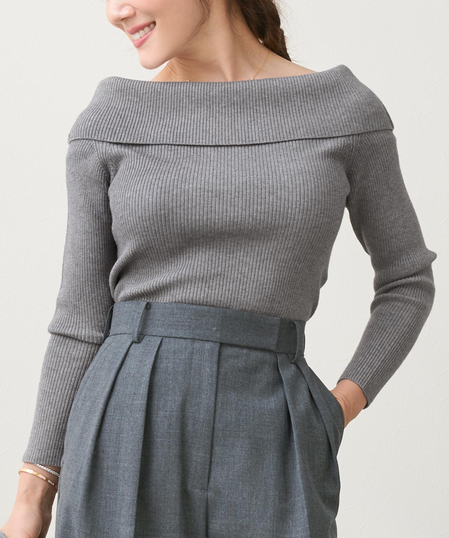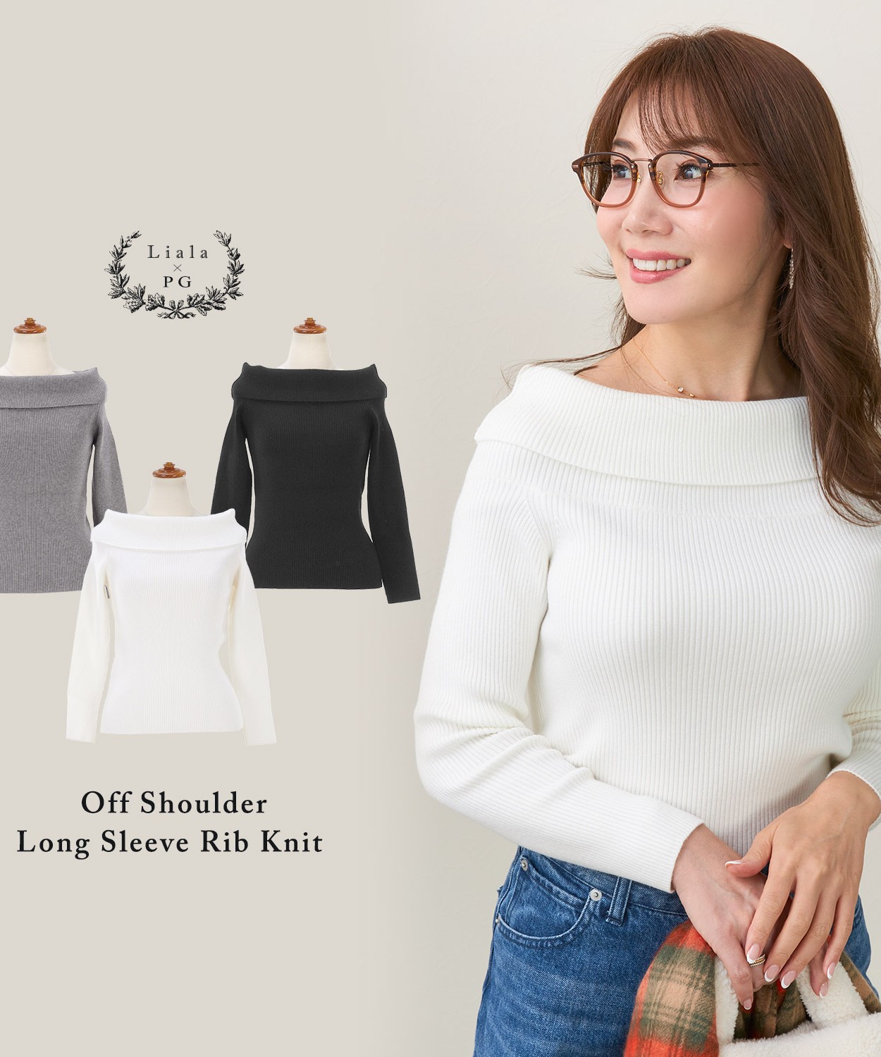 オフショルダー リブ ニット 長袖(Liala×PG)¥8,800(税込)