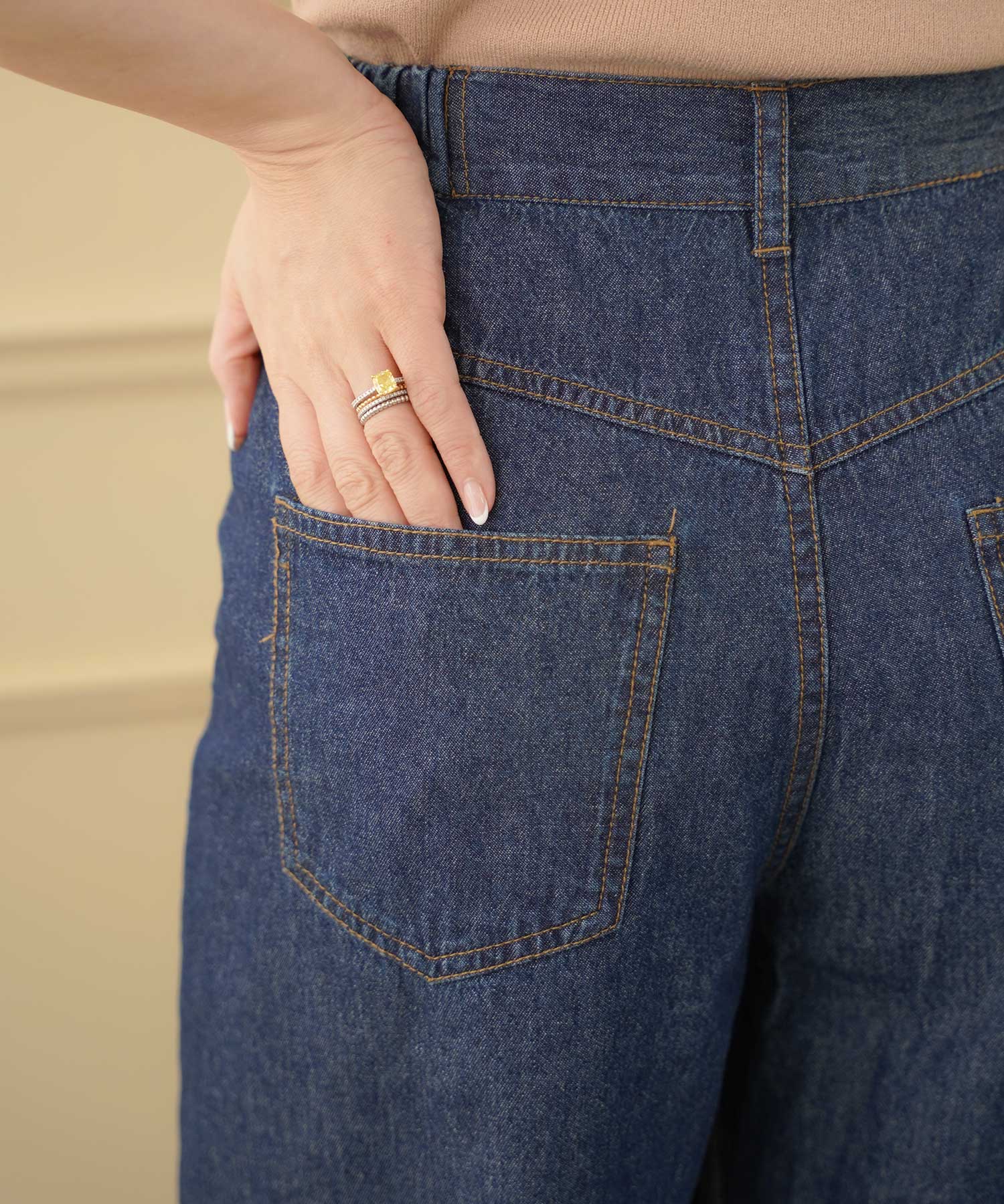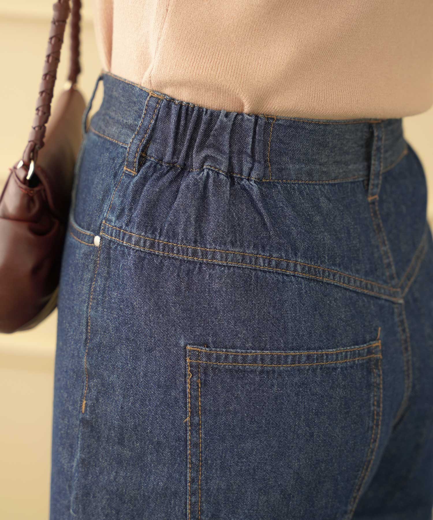 柔らかく落ち感のある大人デニムパンツ。ワイドシルエットで動きやすく、後ろウエストはゴム入りで快適な着心地。長時間座っても窮屈さを感じず、運動会の応援にぴったりです。カラーは2色展開。サックスは加工感があり、今っぽいカジュアルスタイルに。ネイビーはワンウォッシュで、きれいめ派におすすめです。9月は長袖カットソー、10月はニットと合わせて、大人カジュアルを楽しんでください。
