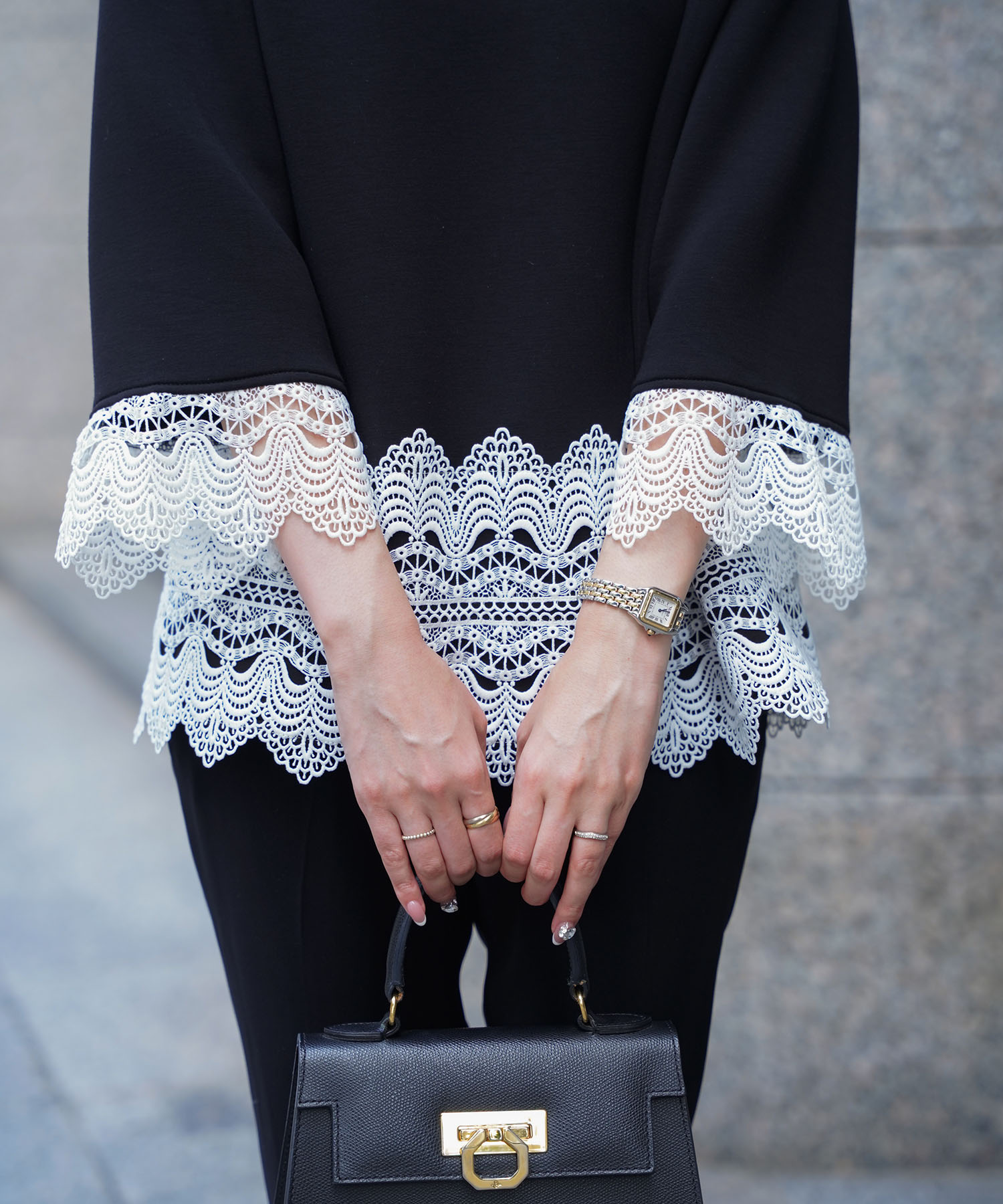 - 初秋の通勤スタイルはレース袖シャツワンピースでエレガントに仕上げる