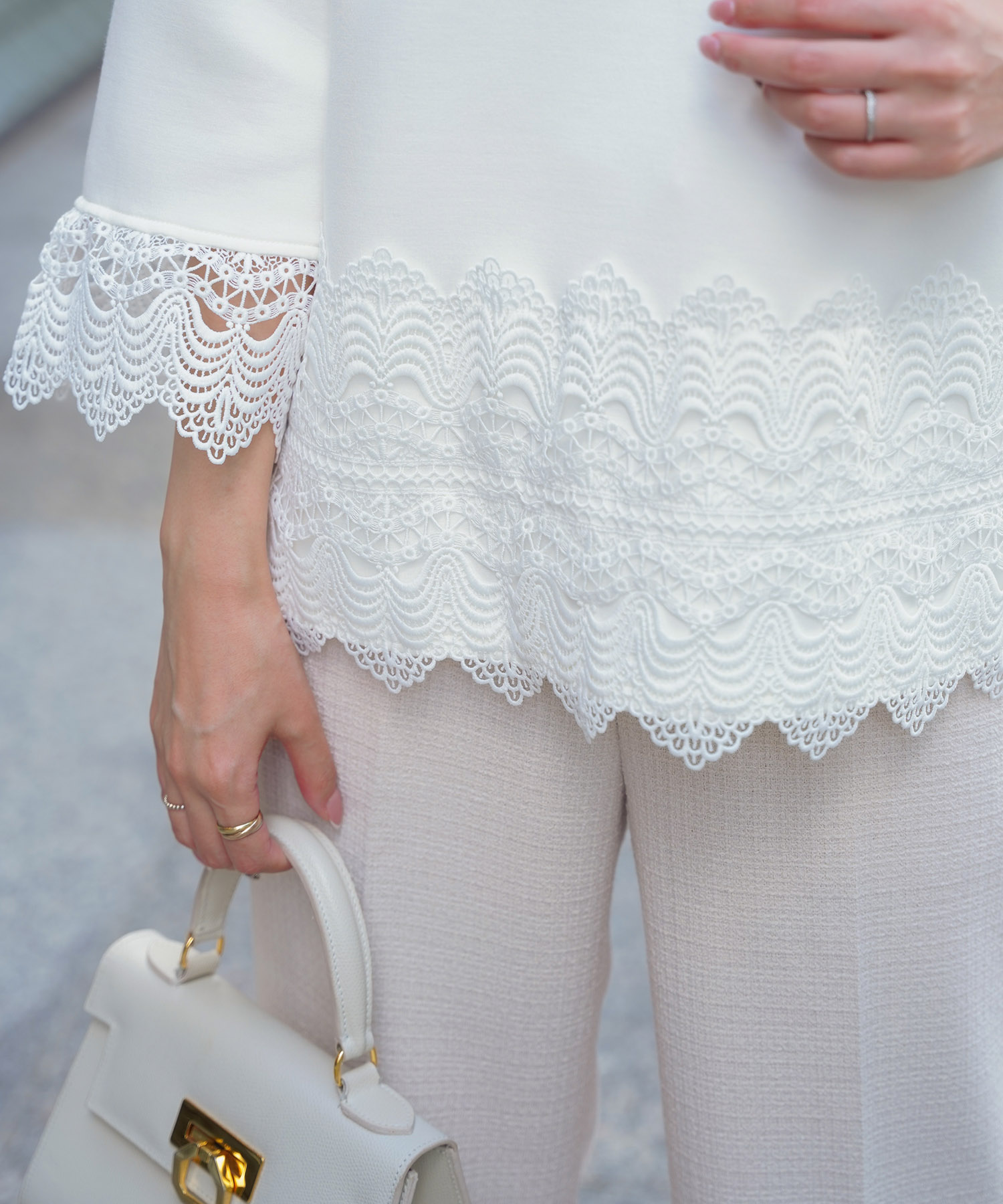 お宮参りには優雅な総レースブラウスで!清楚な装いで大切な日を彩る