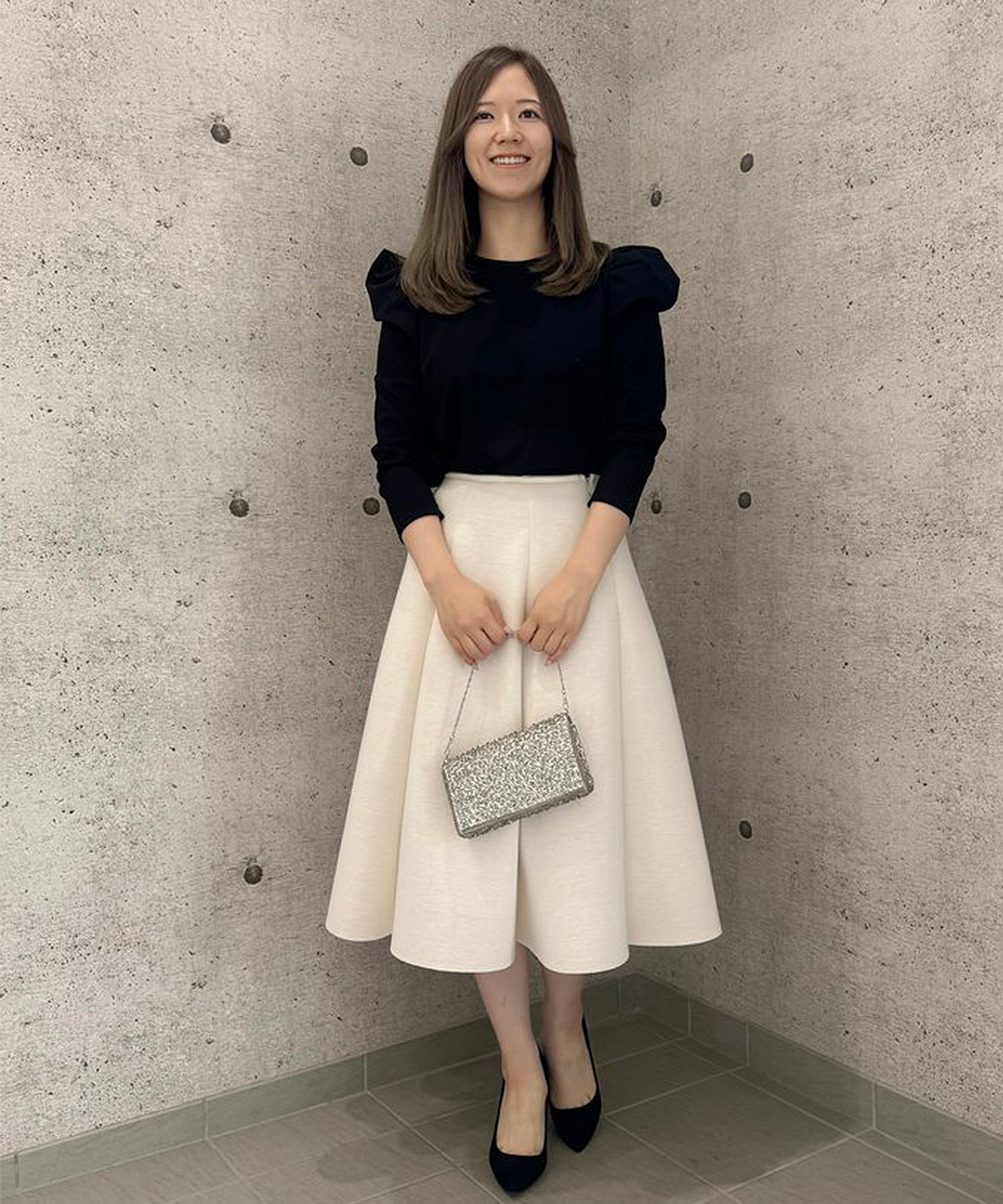 - フリルブラウスとスカートで作るやわらかで上品な研修スタイル