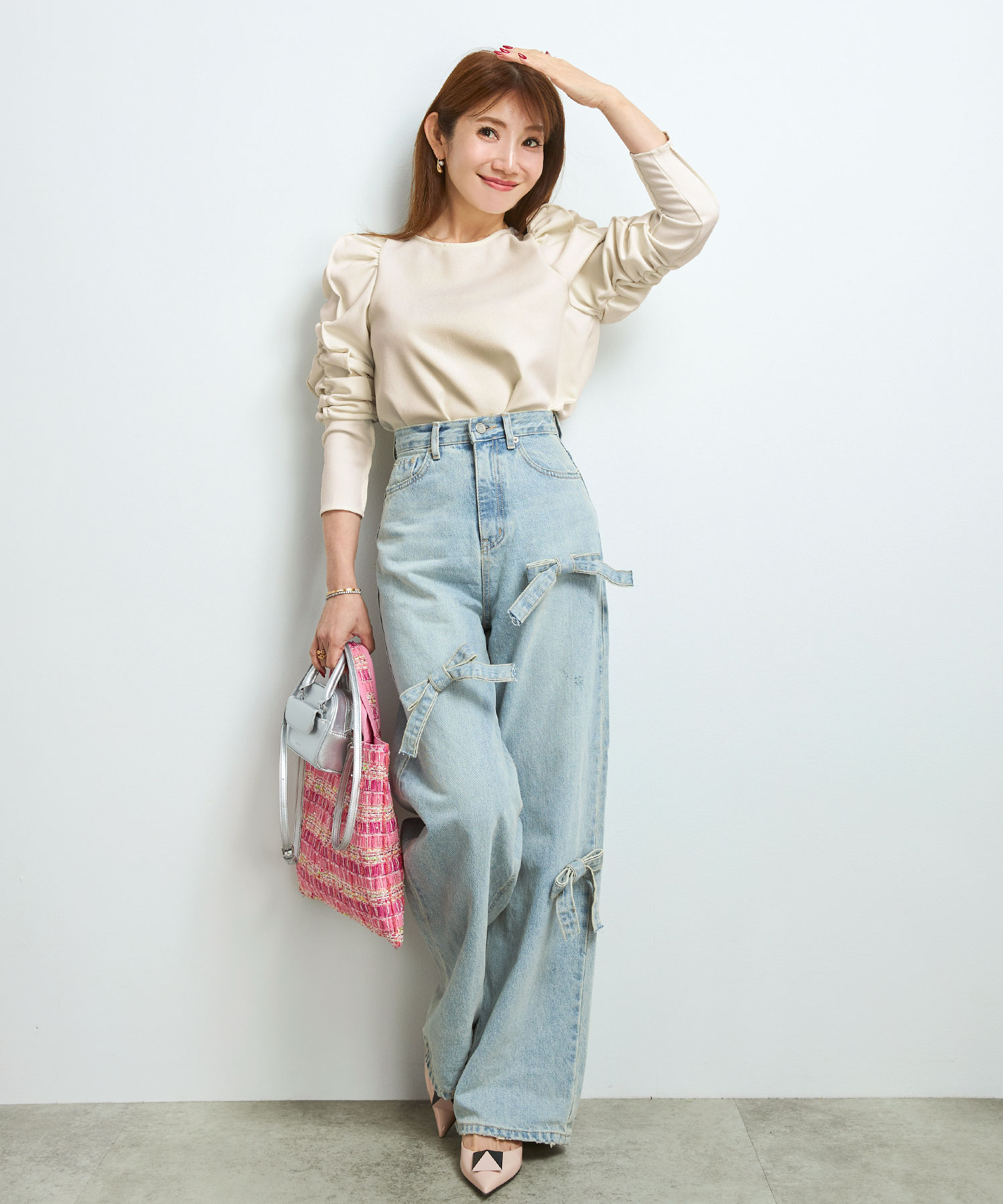 - 落ち感素材のワイドデニムパンツで叶える!秋の運動会の大人カジュアルスタイル