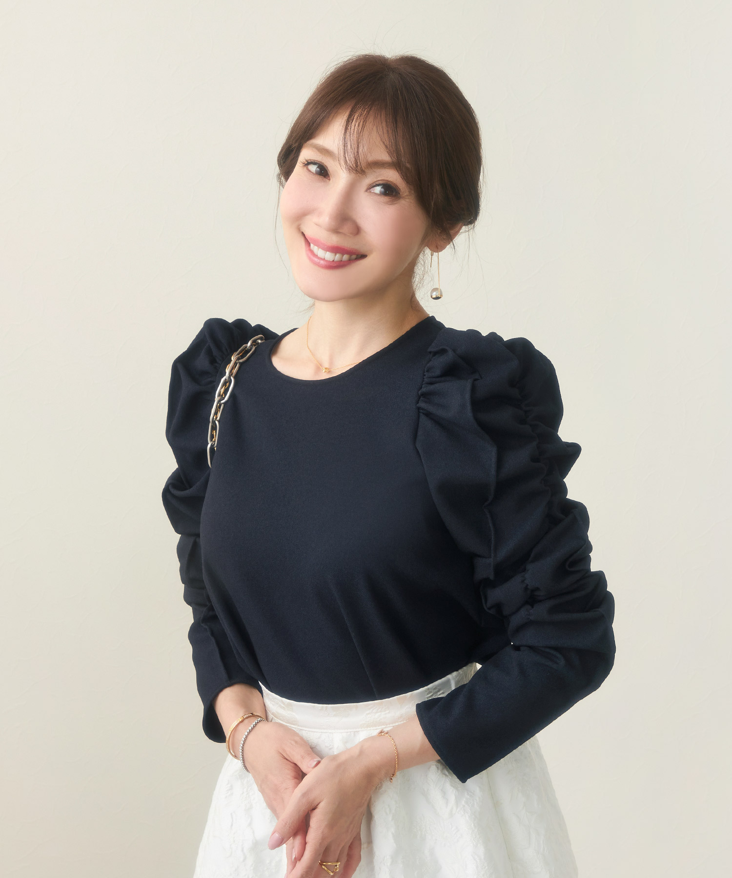 ギャザー&フリルスリーブ ブラウス 長袖(Liala×PG)¥8,800(税込)