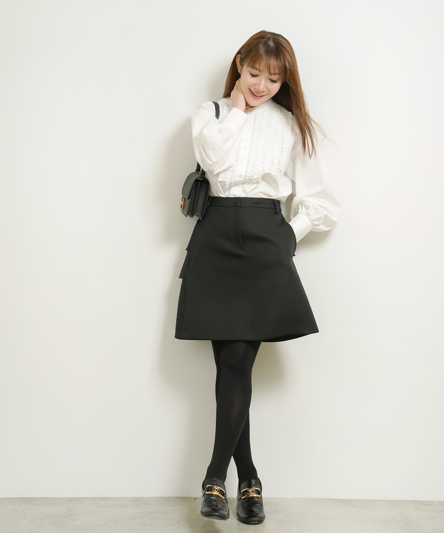 バンドカラー フリル ブラウス 長袖(Liala×PG)¥8,800(税込)
