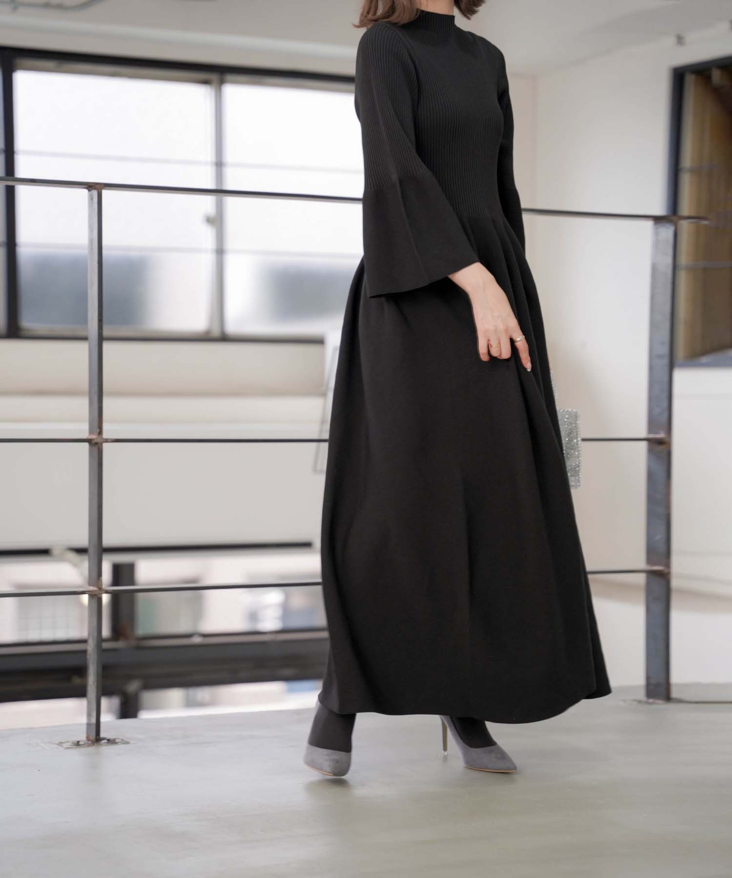 オープンカラー ホールガーメント ニット ワンピース(le reve vaniller)