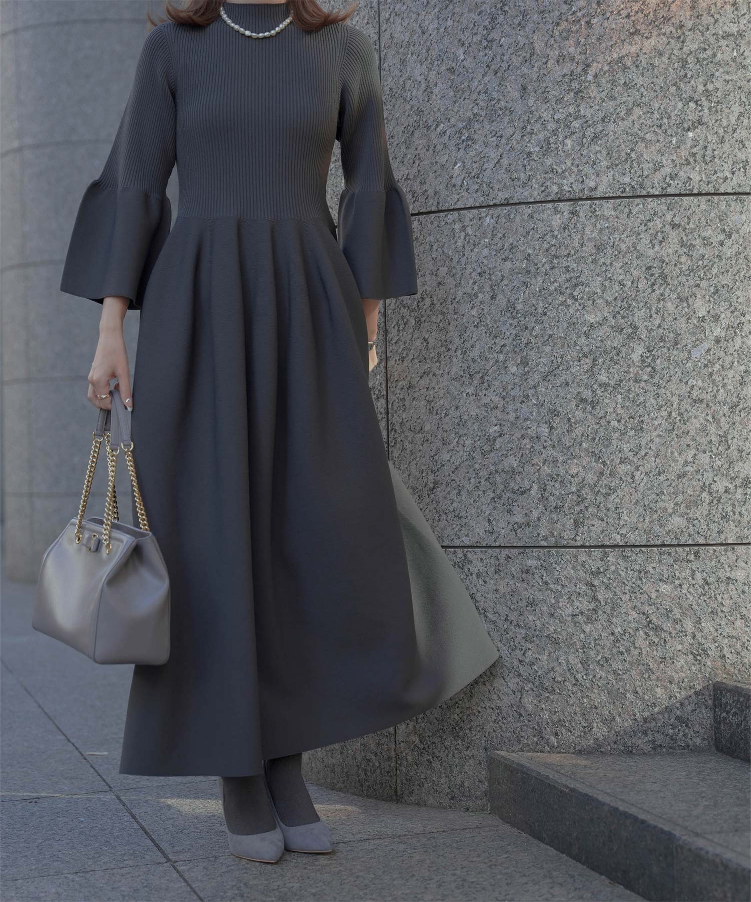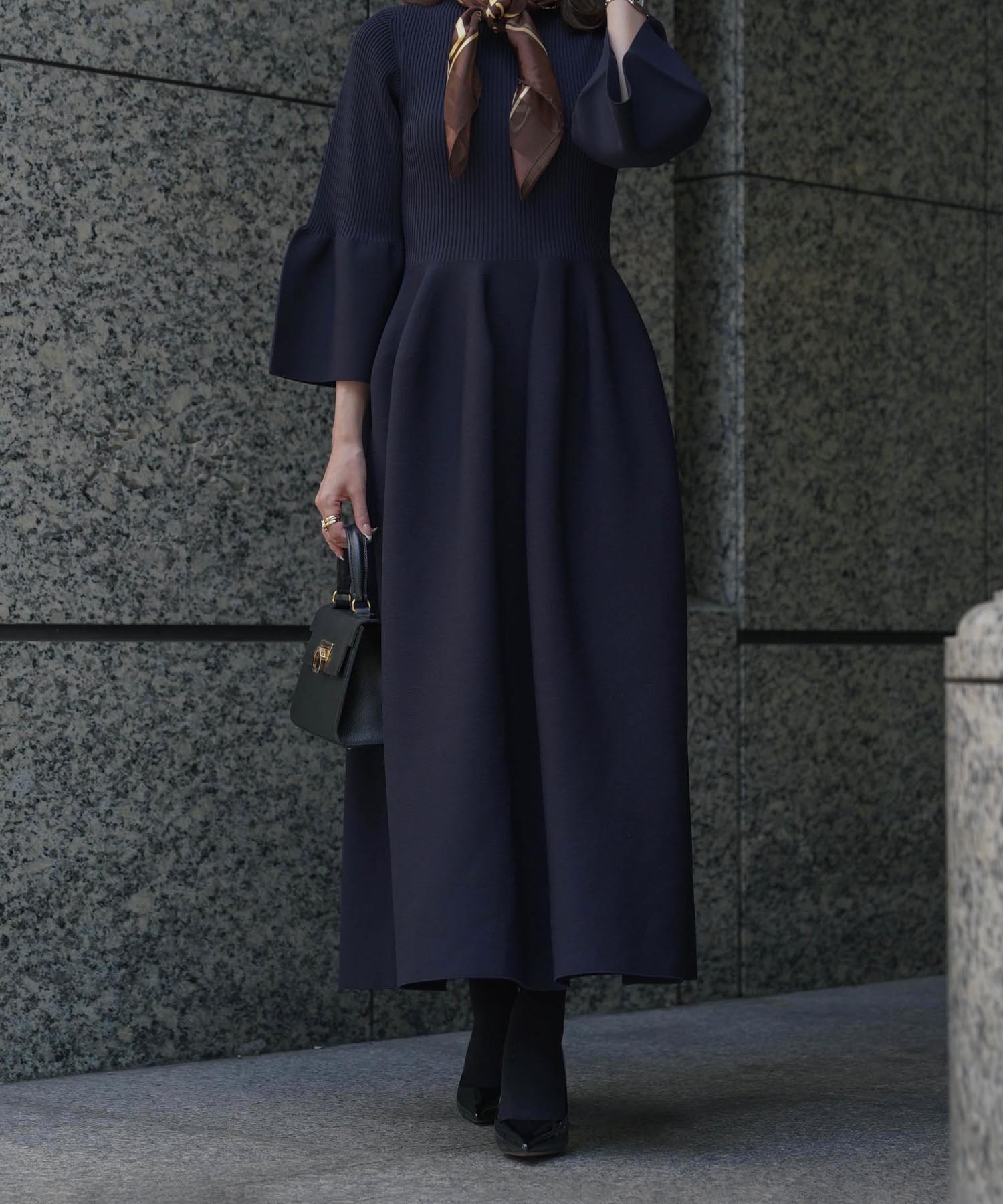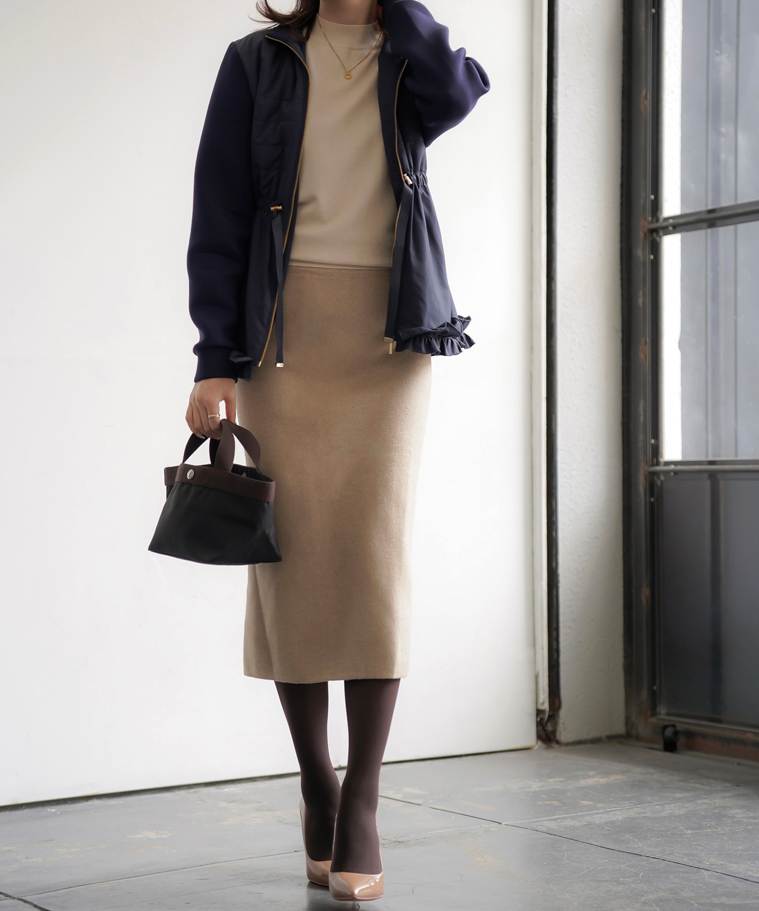 下旬は夜の冷え込みが増えるため、ニットワンピや軽い中綿・キルティングまで視野に。首元や足首を温めるだけでも体感が変わります。