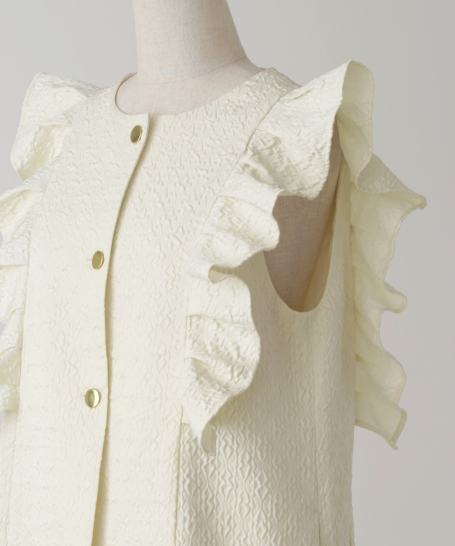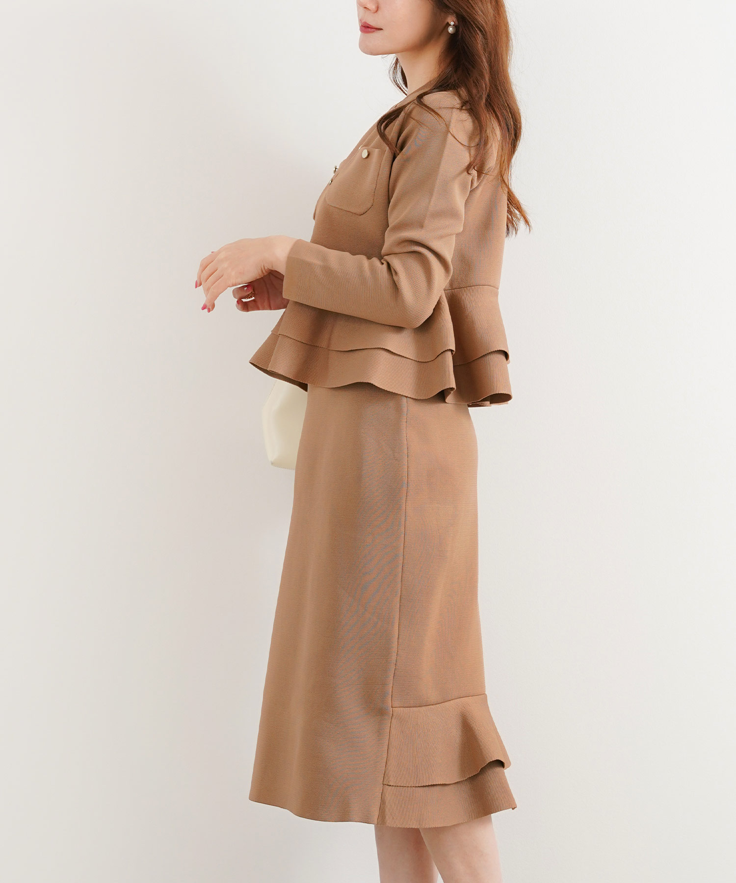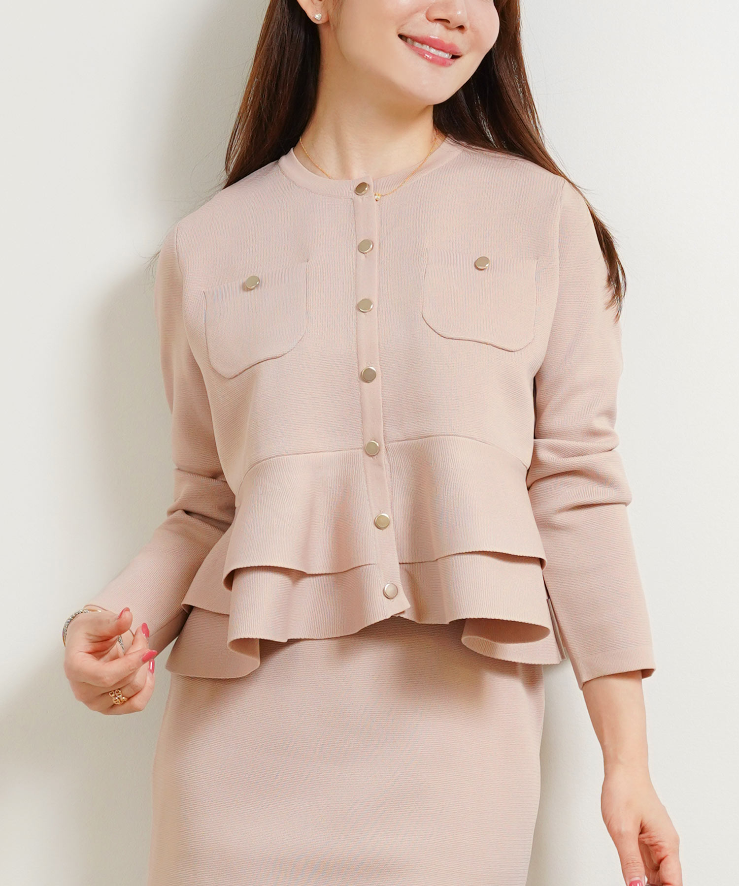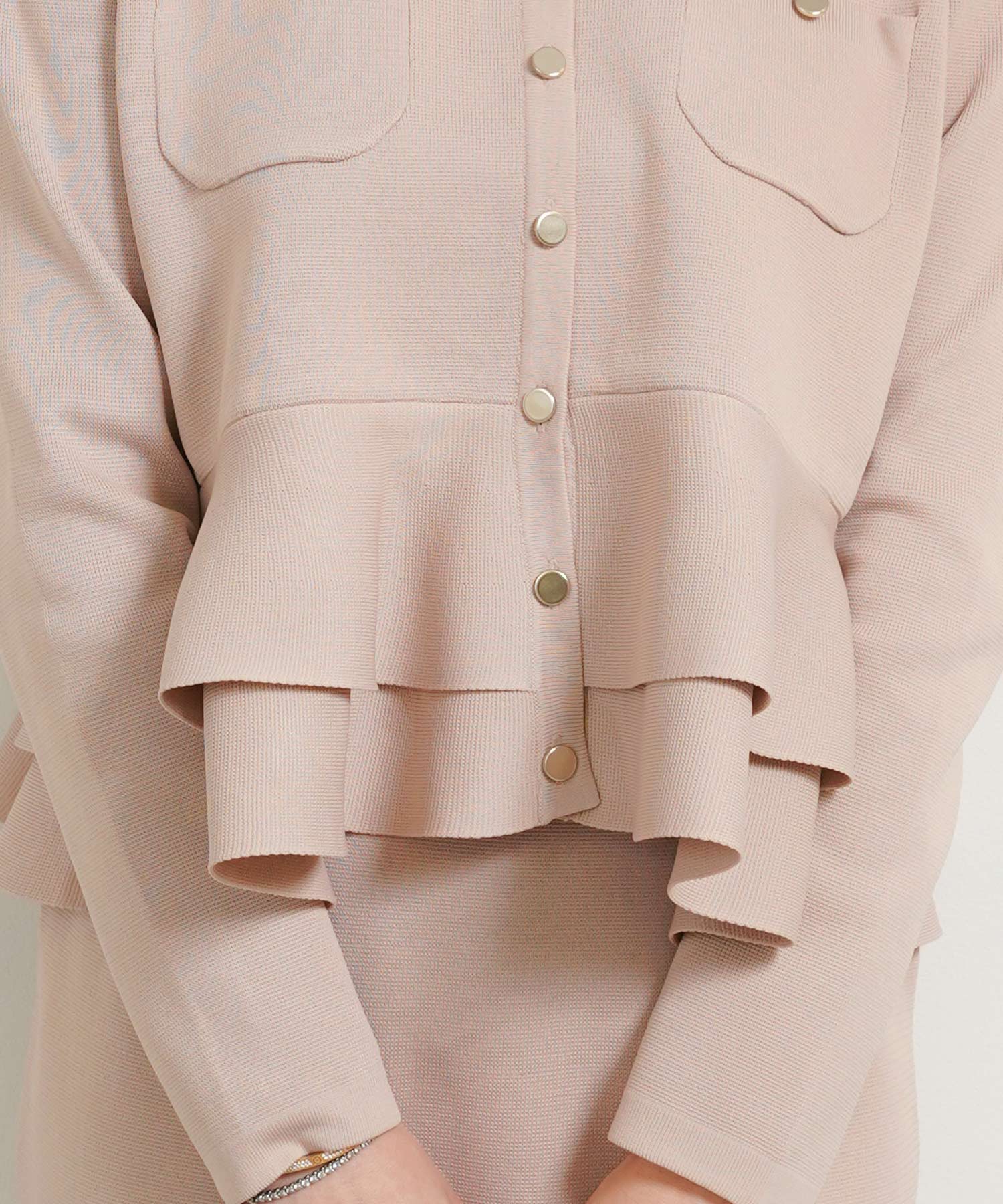 ダンボールニット 2段フリル ペプラム ノーカラージャケット(le reve vaniller)