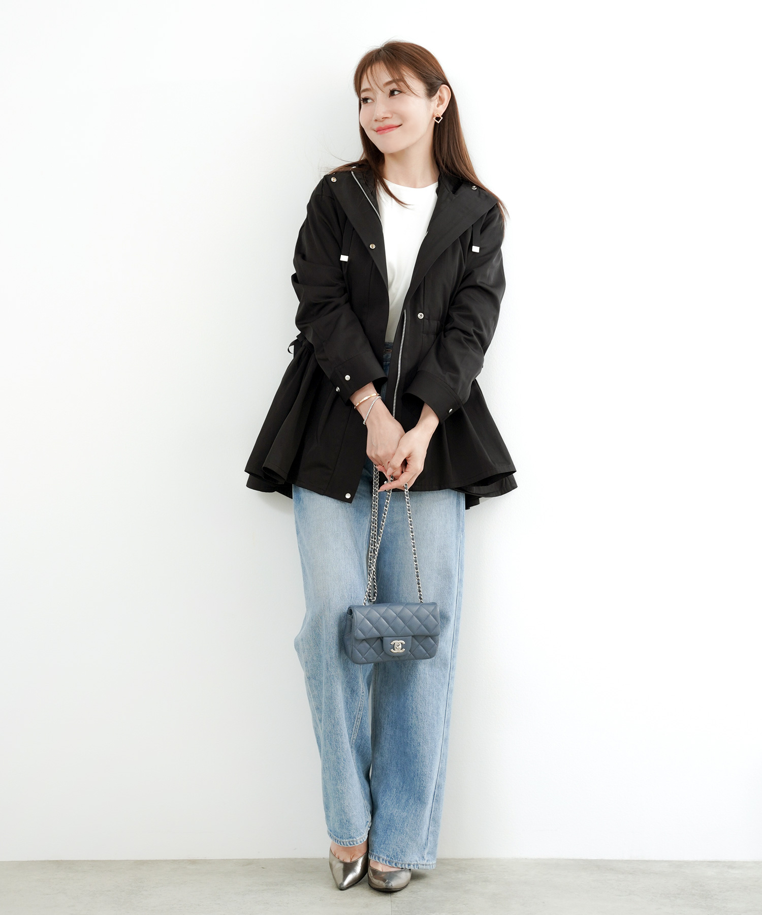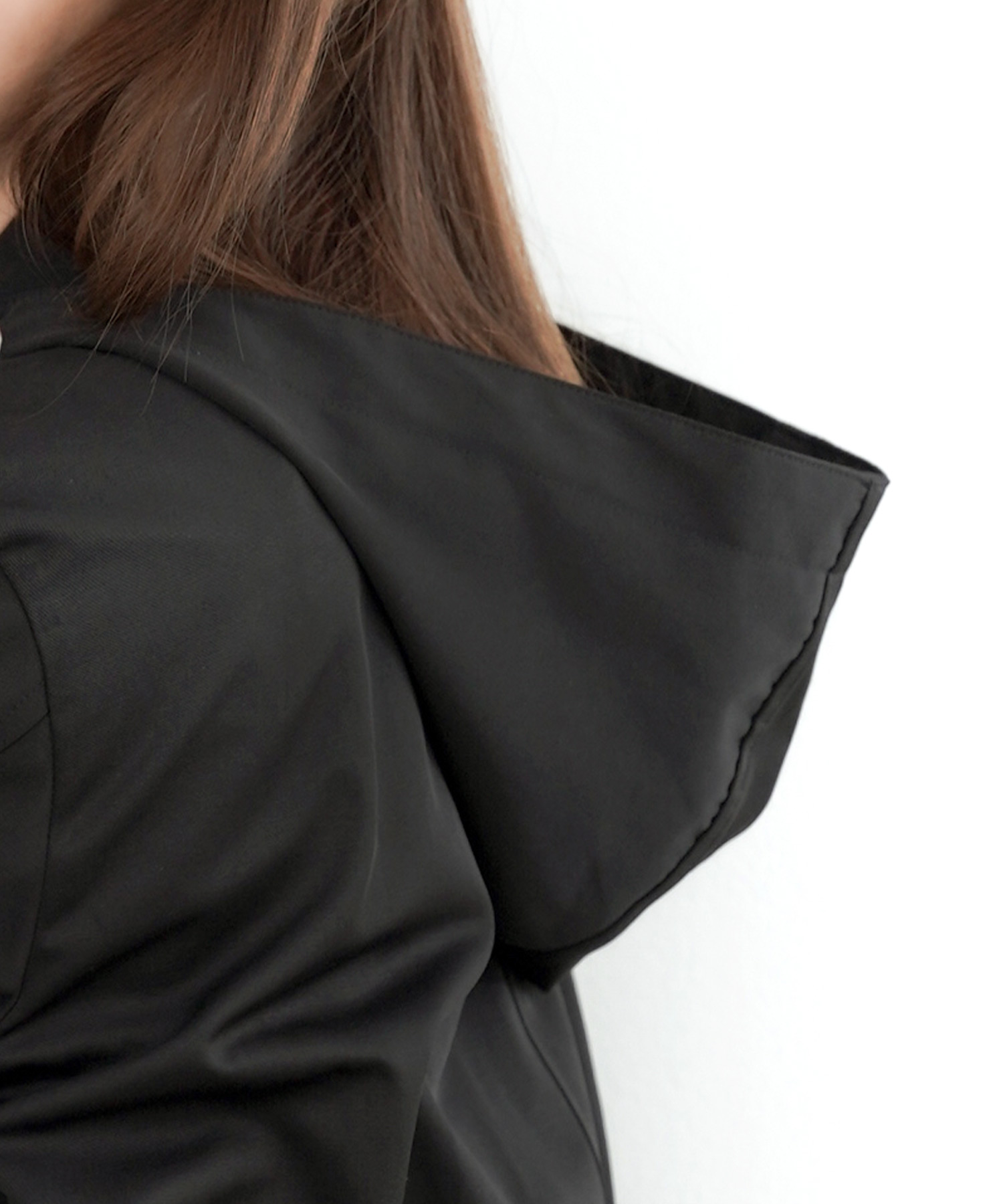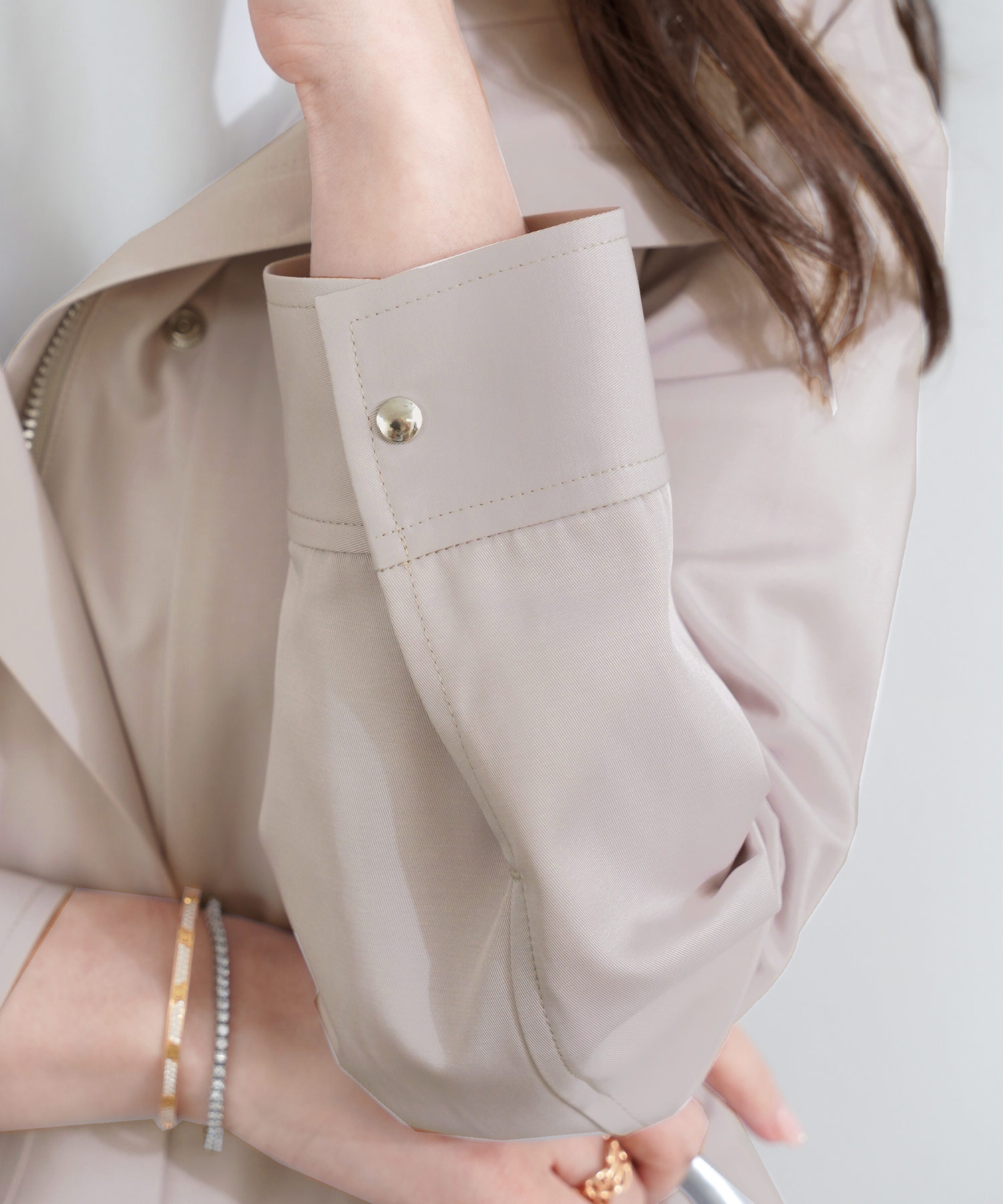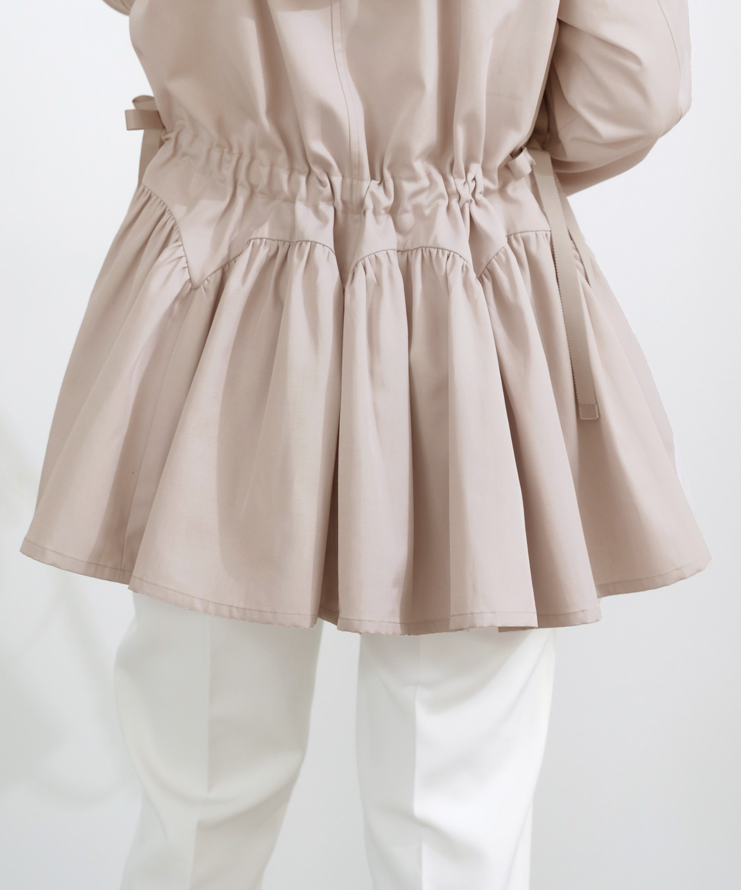 軽やかな生地とティアードの程よい甘さで、羽織るだけで表情が出るライトアウターです。表面がさらりとして花粉や汚れが付きにくく、小雨程度なら水滴を弾きやすい素材感で外出時も安心。前開きの2way仕様でさっと着脱でき、しわ戻りがよく軽量だから持ち運びにも便利です。※防水ではありません。雨天時は傘等をご併用ください。