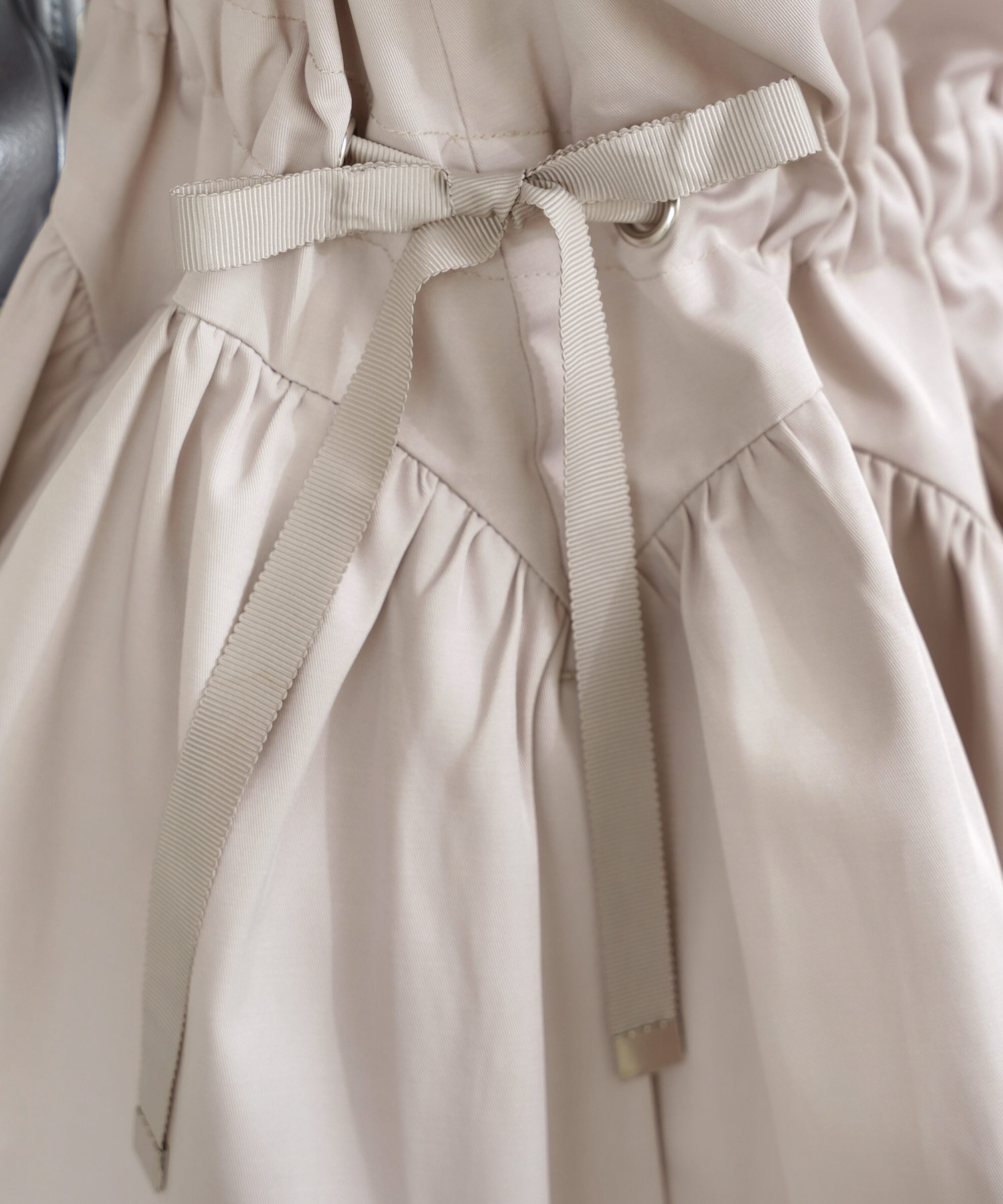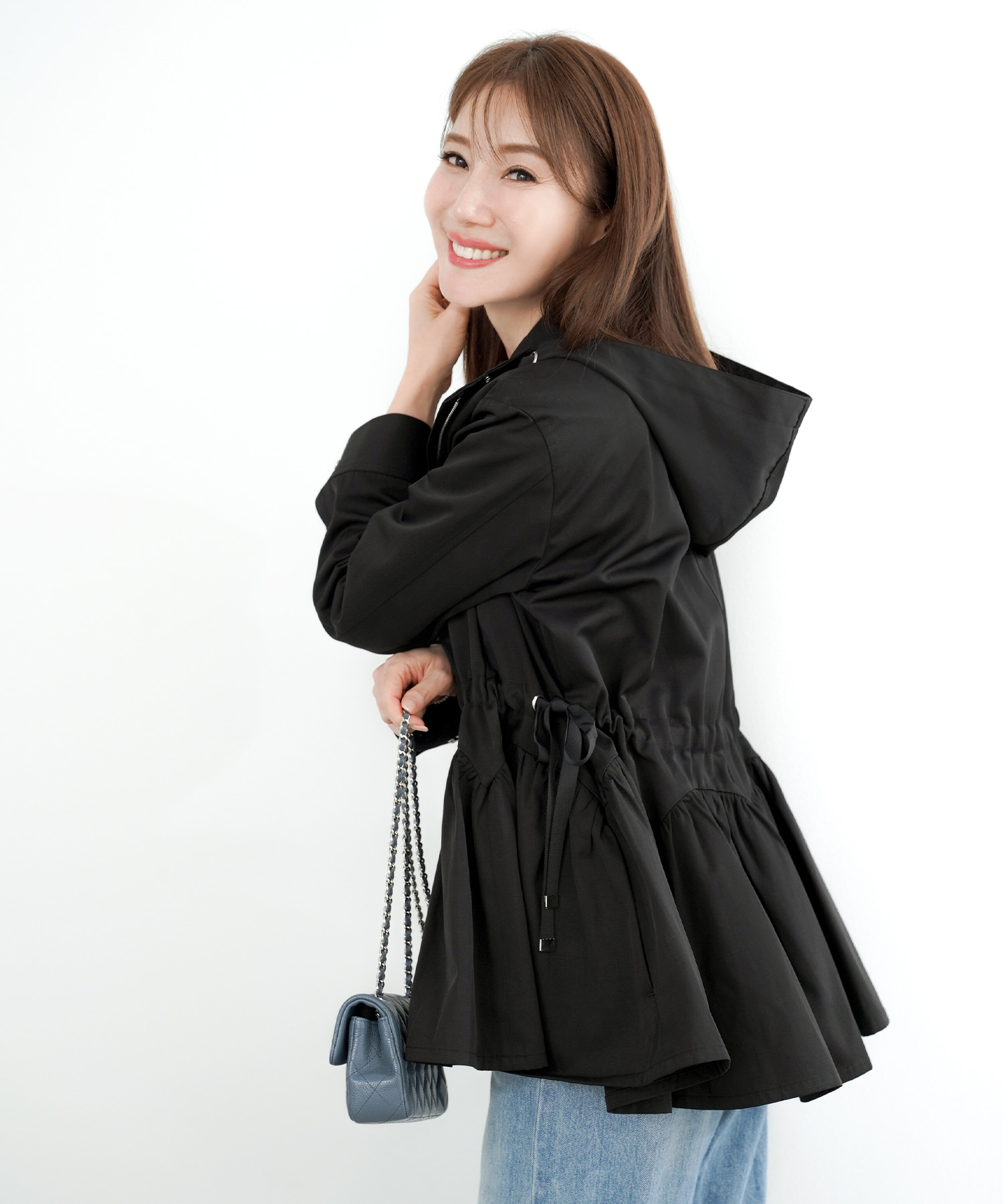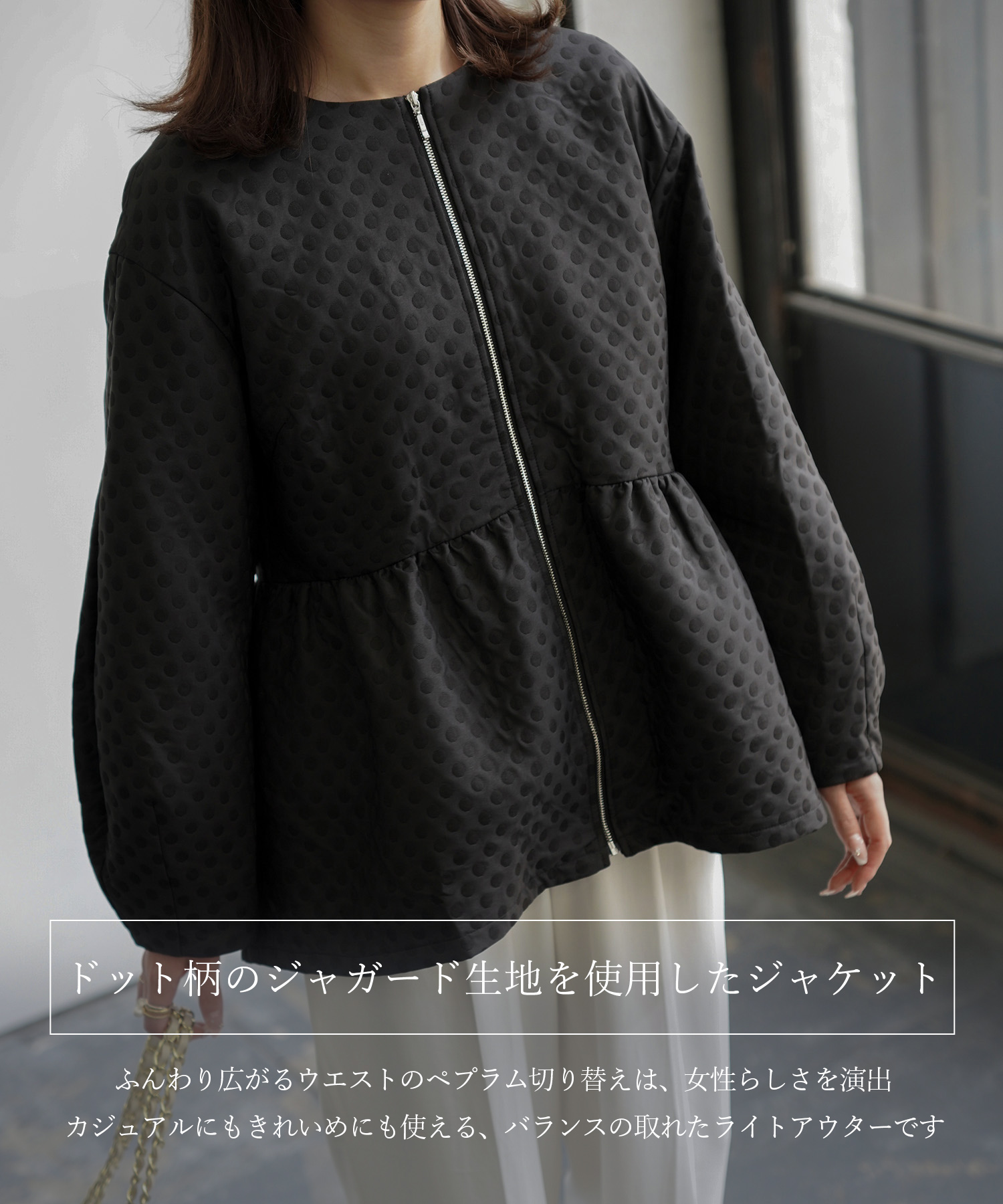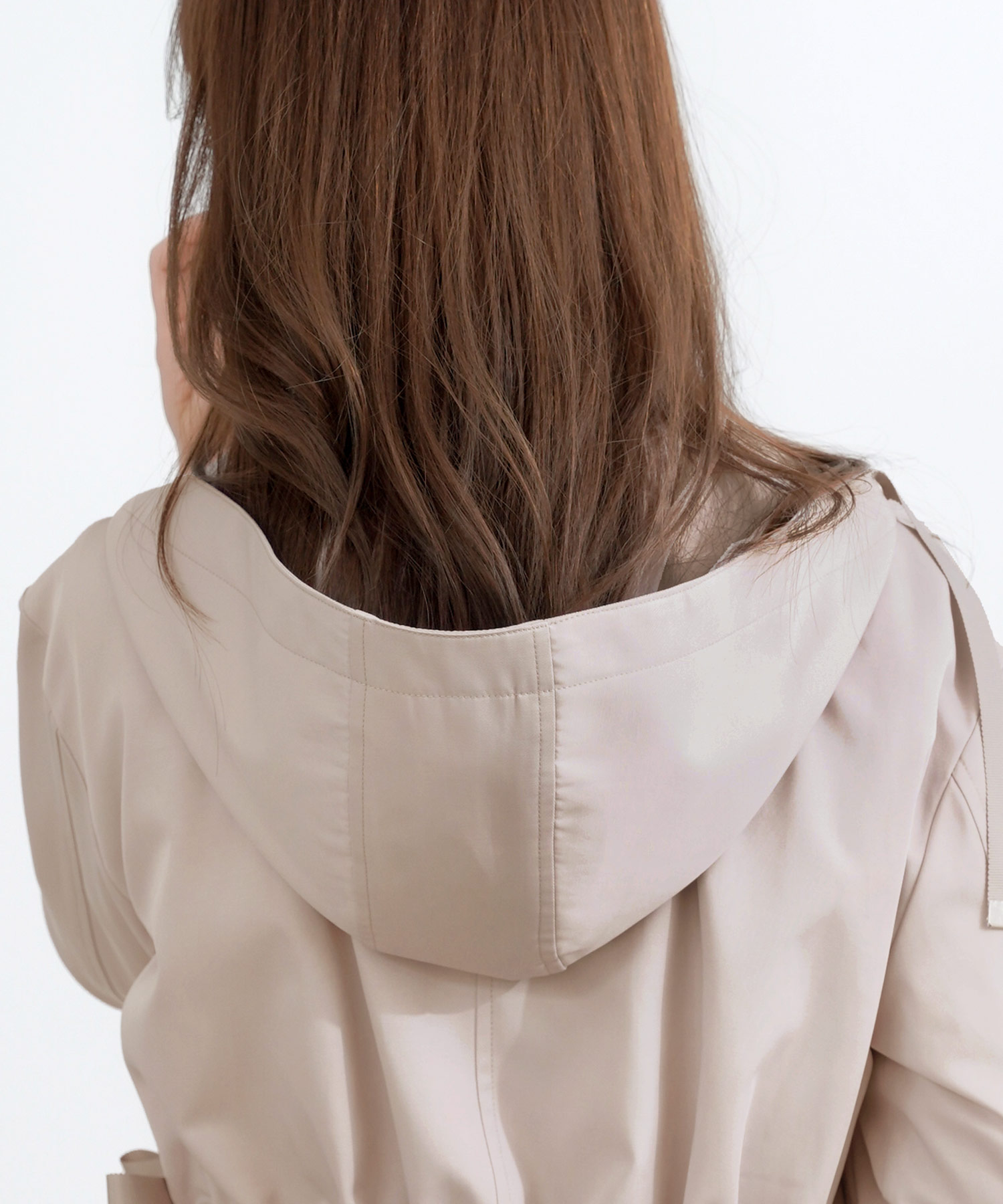 軽やかな生地とティアードの程よい甘さで、羽織るだけで表情が出るライトアウターです。表面がさらりとして花粉や汚れが付きにくく、小雨程度なら水滴を弾きやすい素材感で外出時も安心。前開きの2way仕様でさっと着脱でき、しわ戻りがよく軽量だから持ち運びにも便利です。※防水ではありません。雨天時は傘等をご併用ください。