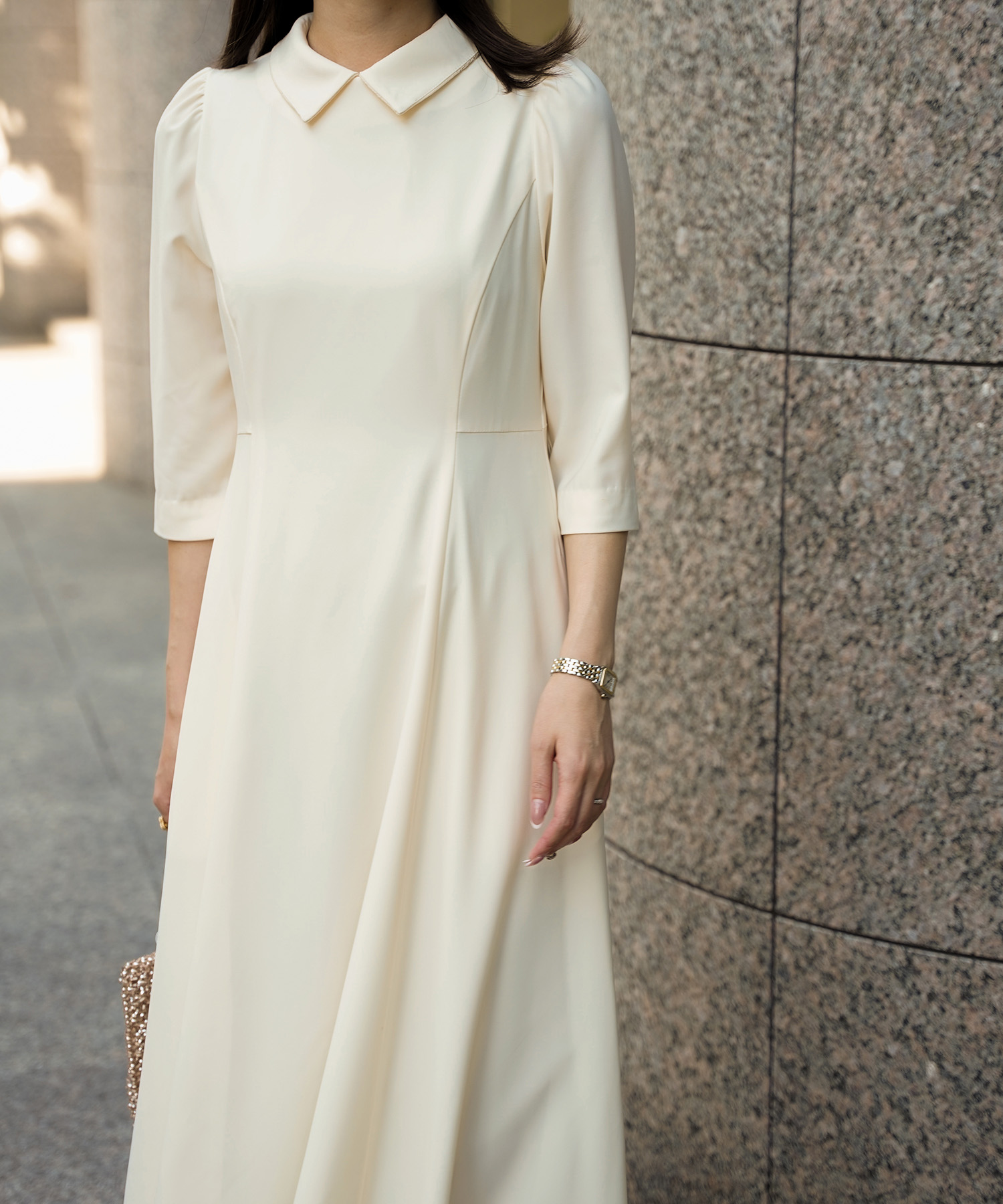 シアーの軽やかさとリボンのポイントで、着るだけで上品に華やぐワンピースです。ジャケットやストールを重ねれば、昼のセレモニーから夜の会食まで印象を崩さず対応。落ち感のきれいな素材が体のラインを拾いにくく、写真映えも狙えます。