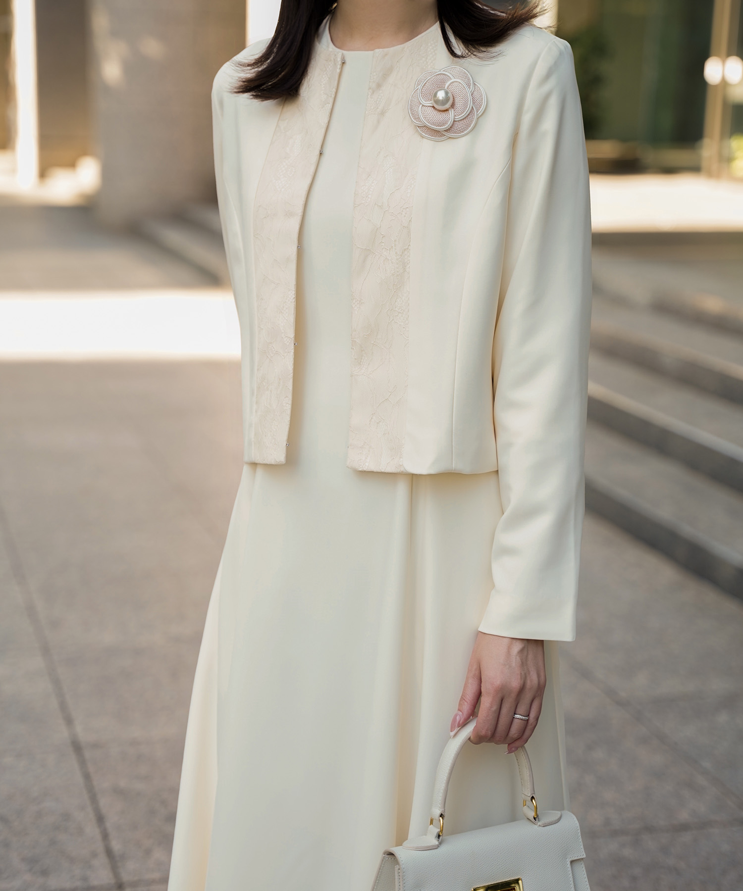 光沢や落ち感のある素材で品よくまとめ、ノーカラーの羽織で格式を上げ下げ。小物と色合わせで、会場の雰囲気にもスマートに馴染みます。