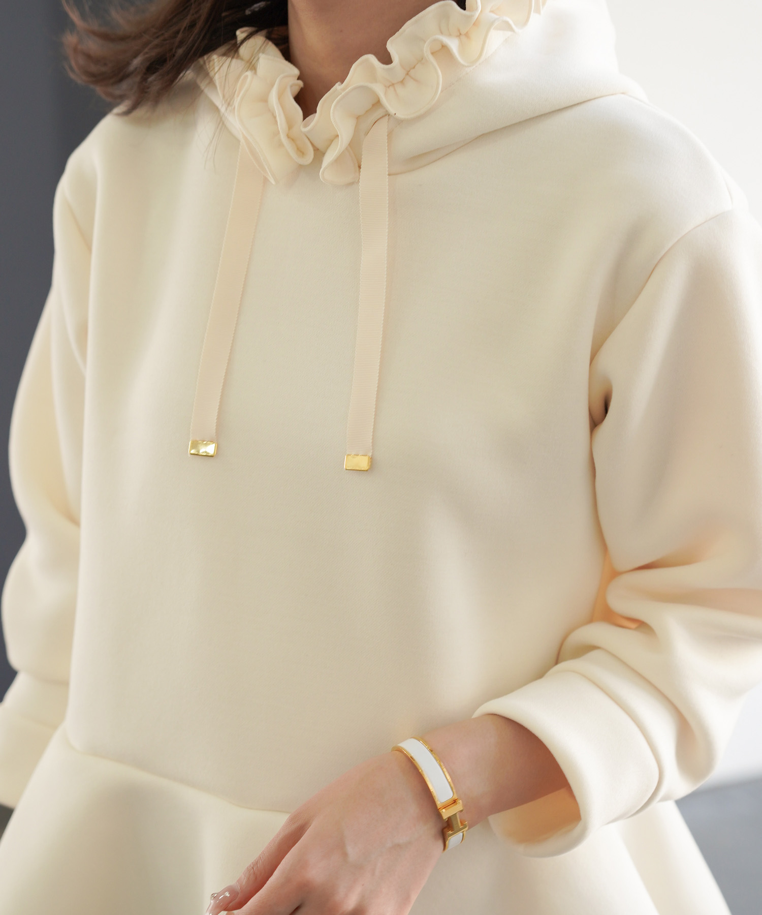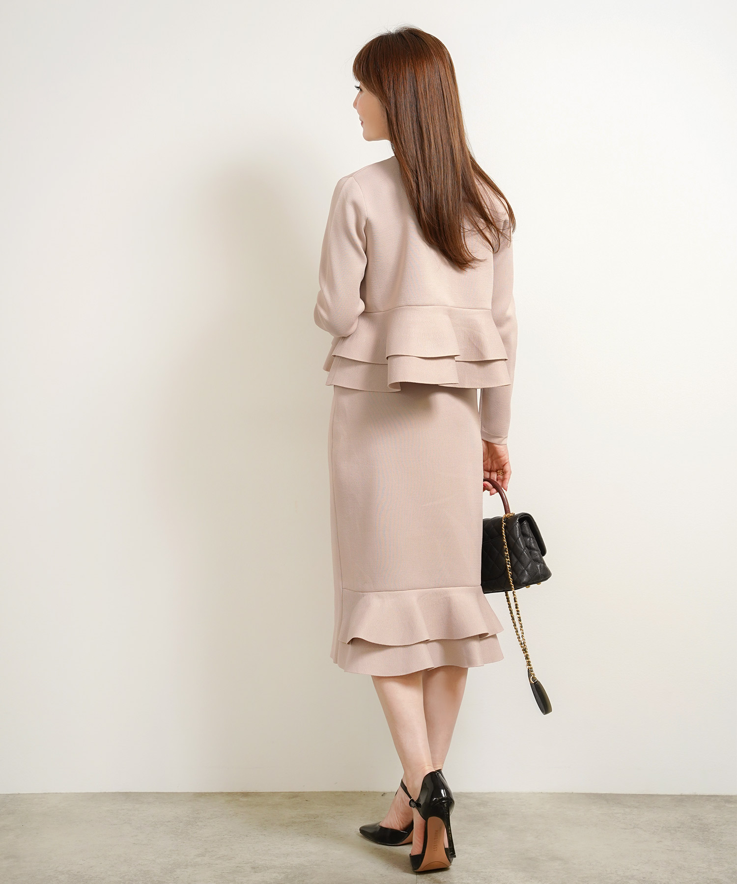ダンボールニット 2段フリル ペプラム ノーカラージャケット(le reve vaniller) ¥16,500(税込)