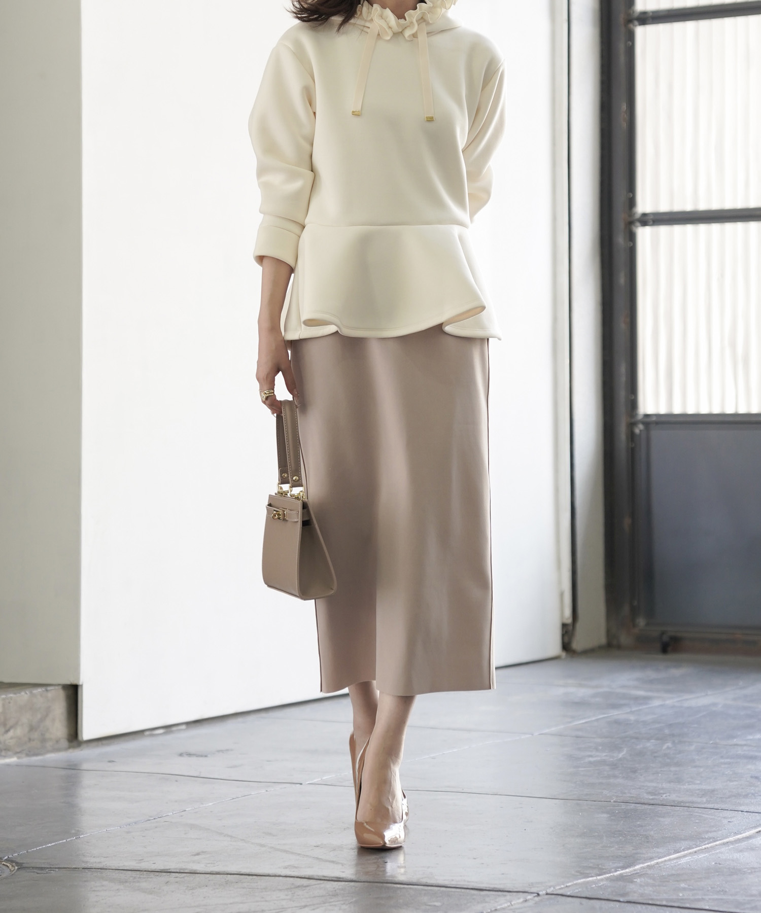 すっきりタイトのIラインで脚をまっすぐ見せ、ショート丈が重心を上げてバランスよく整います。伸びのよい同系色のストレッチ裏地付きで響きにくく、動きやすさときれい見えを両立。ブラウスにもニットにも馴染み、ジレやジャケット合わせで通勤から学校行事まで幅広く活躍します。