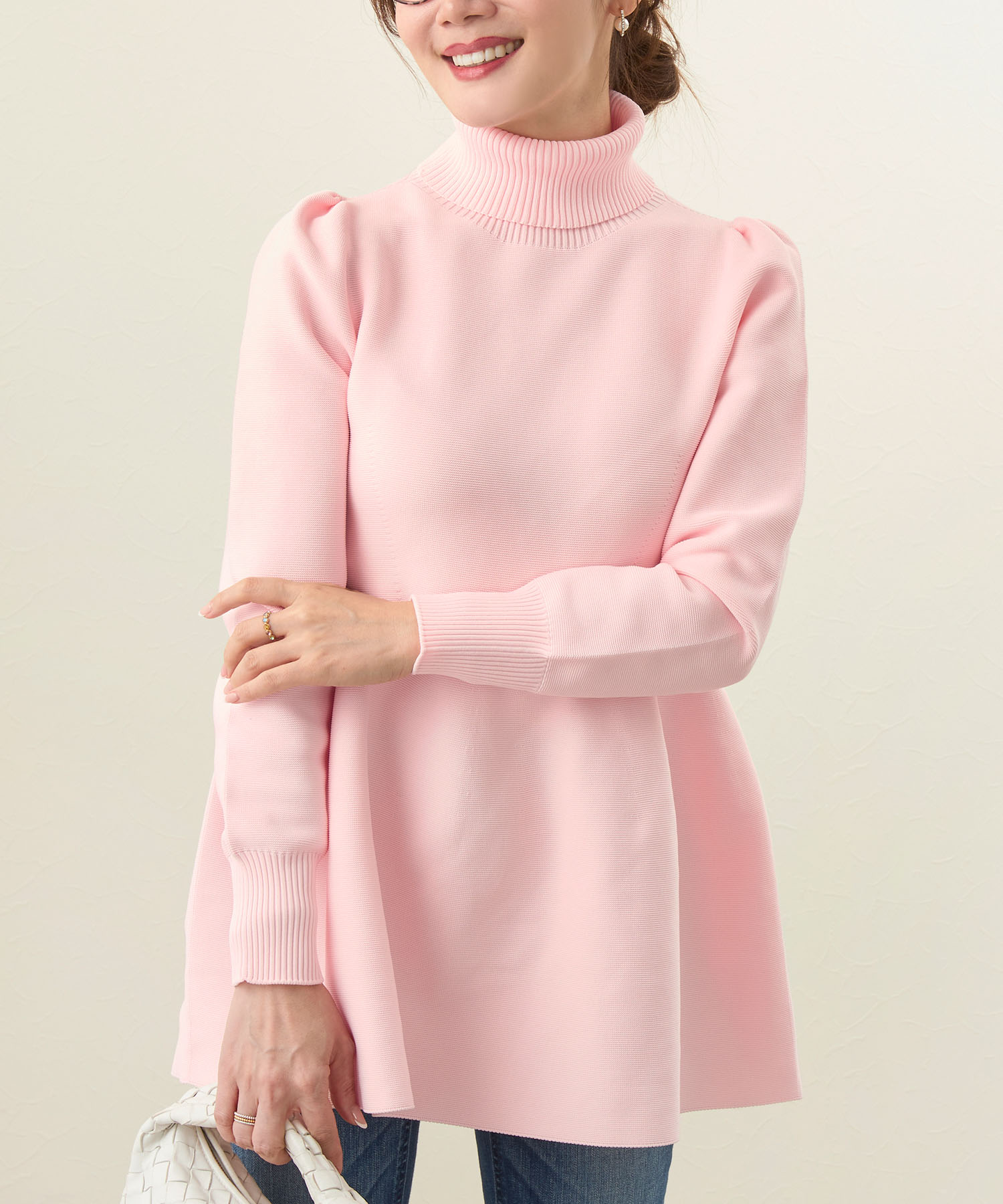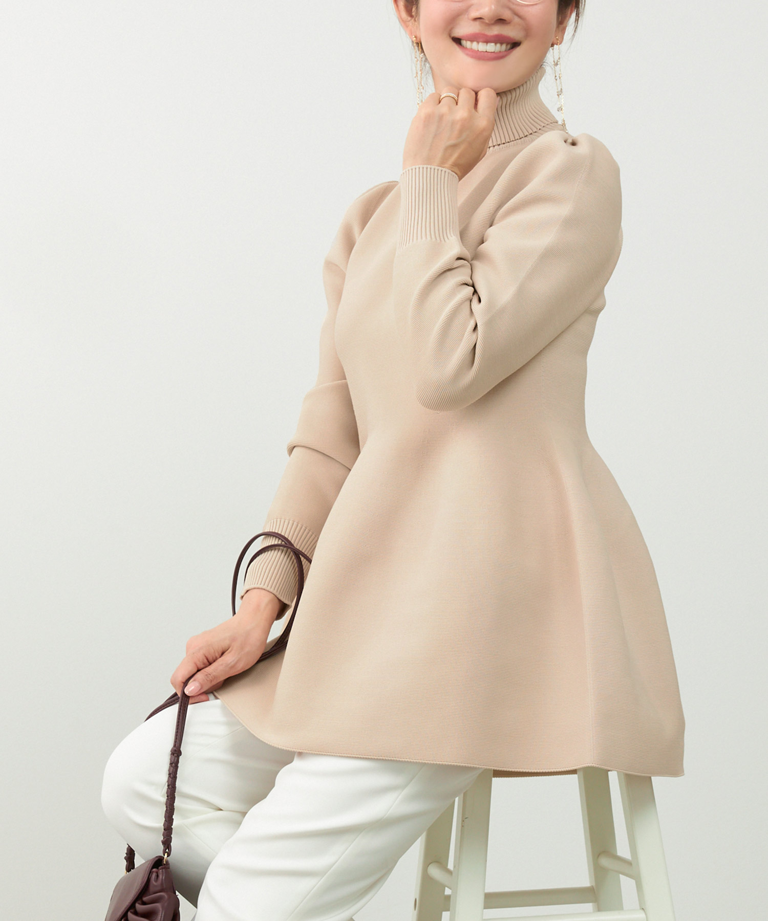 ラウンドネック 袖山ギャザー ニット(Liala×PG)
