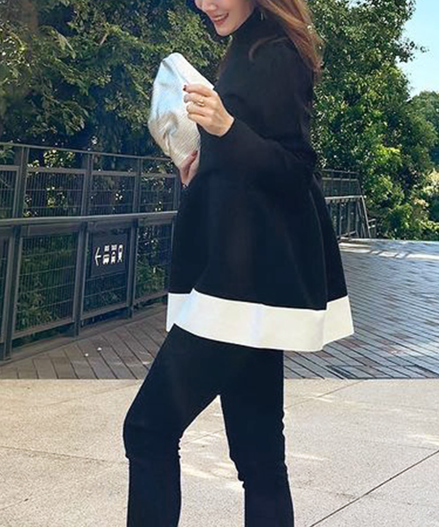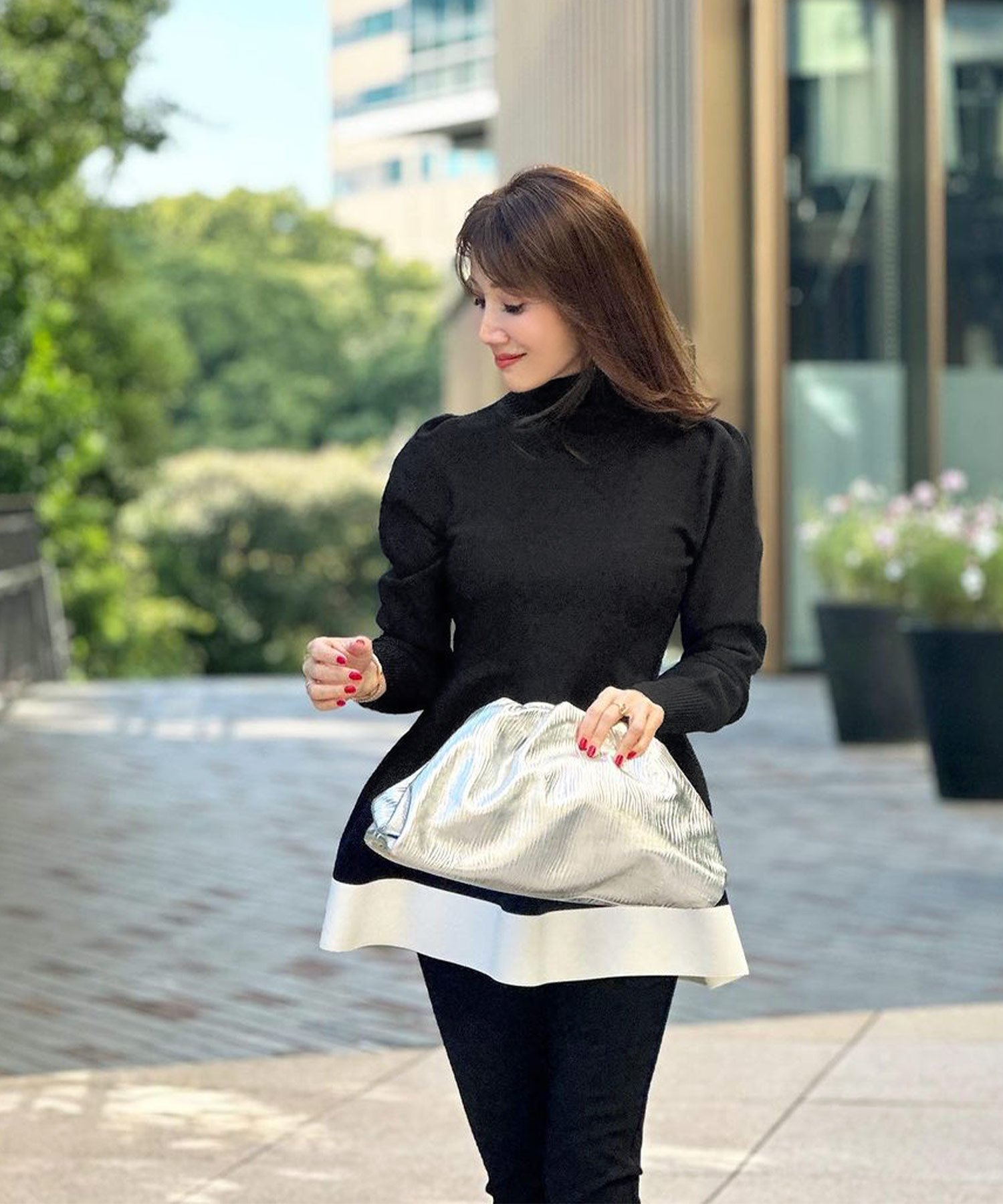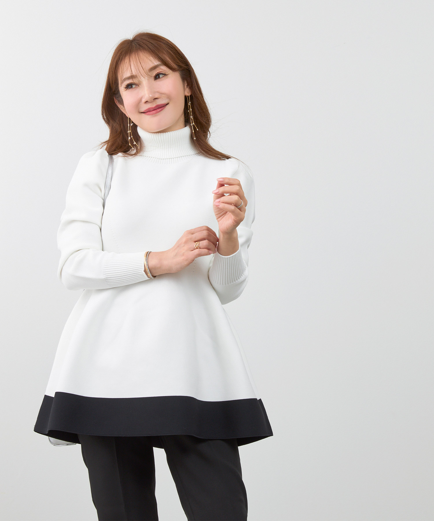 縫い代のないホールガーメントならではのなめらかさで、一枚でも体の線を拾いすぎず「きれい見え」。オープンカラーが顔まわりをすっきり引き立て、上品さと抜け感を両立します。冷える夜は中綿やキルティングのアウター、ストールを重ねれば季節の温度差にもスマートに対応できます。