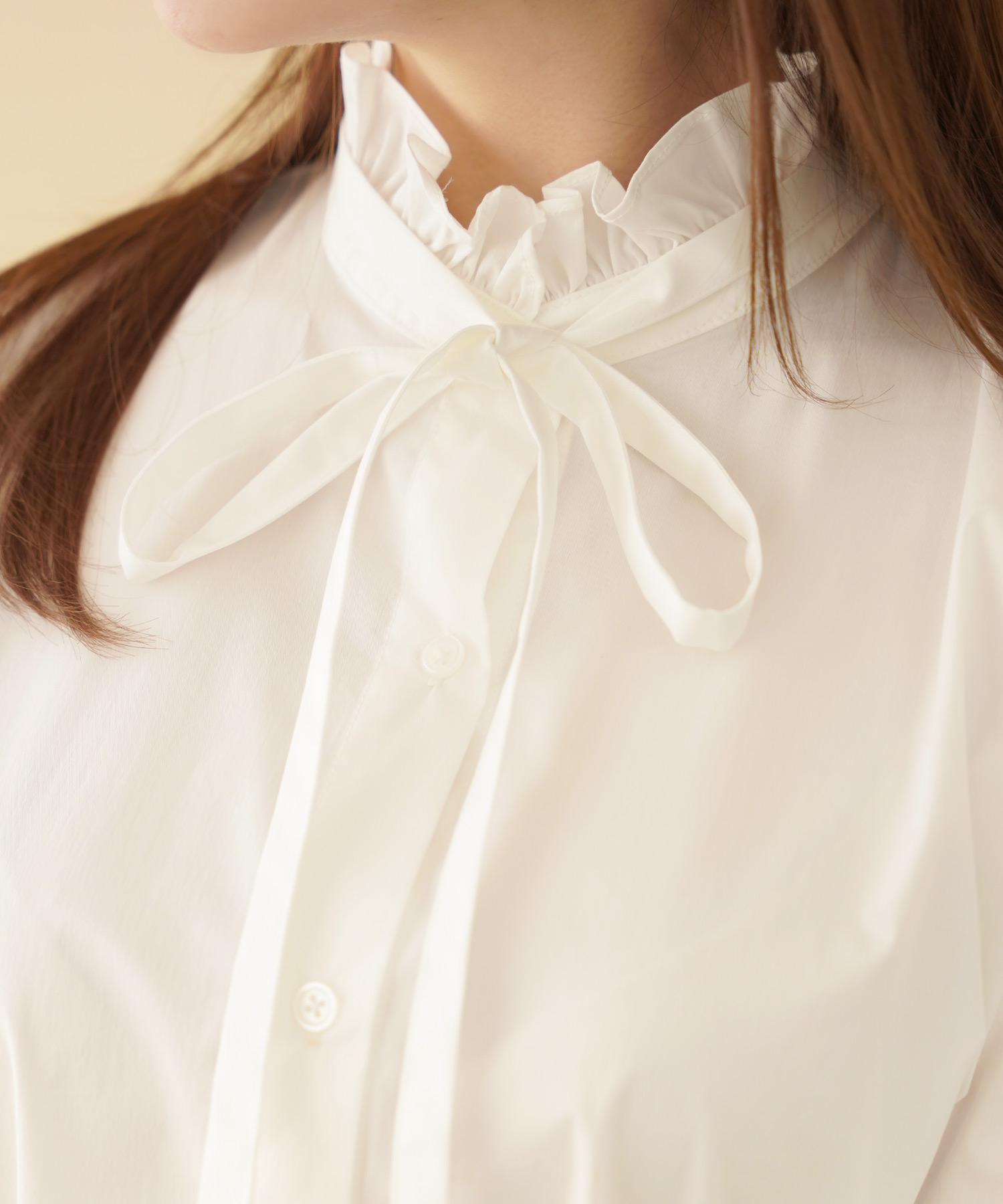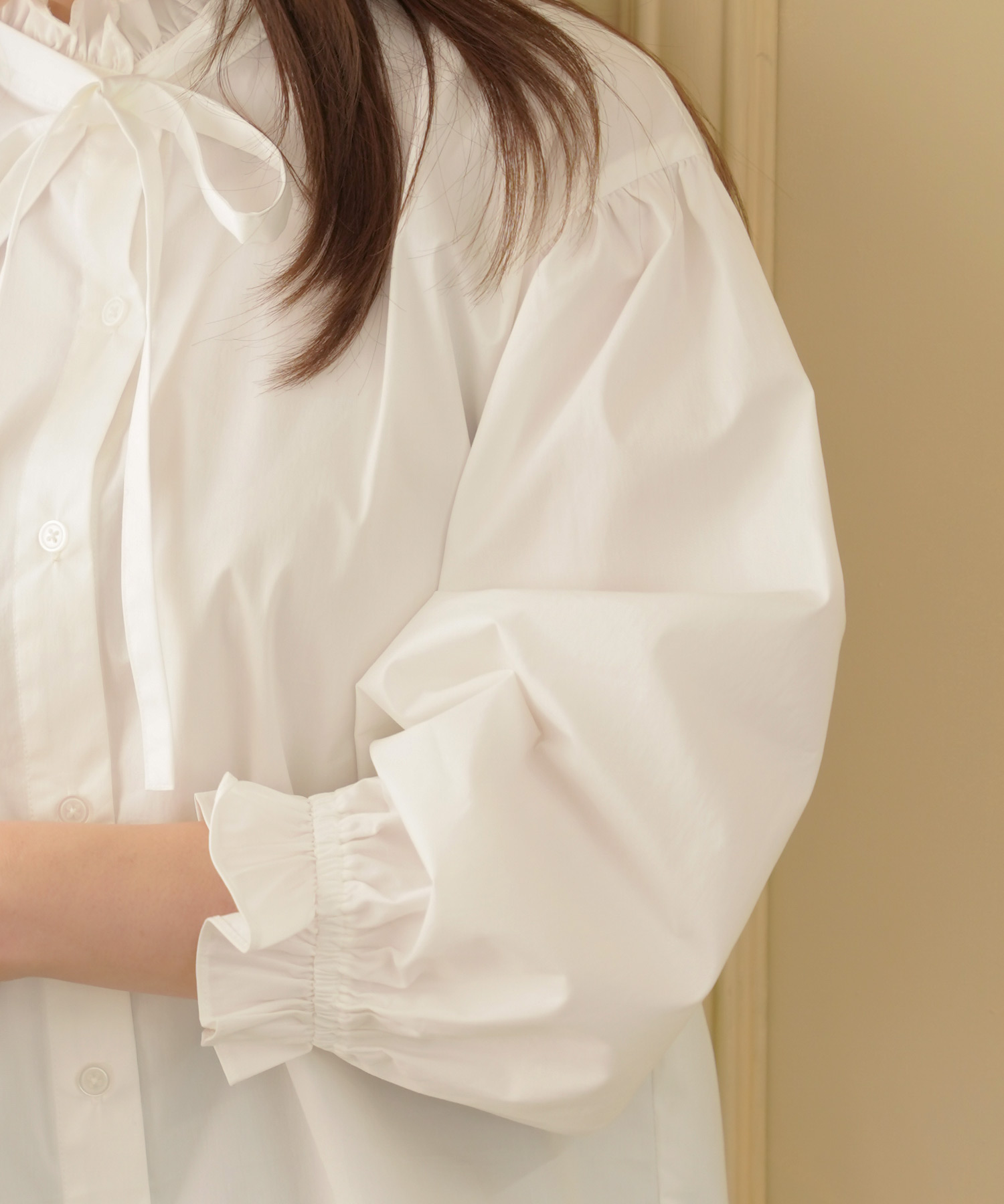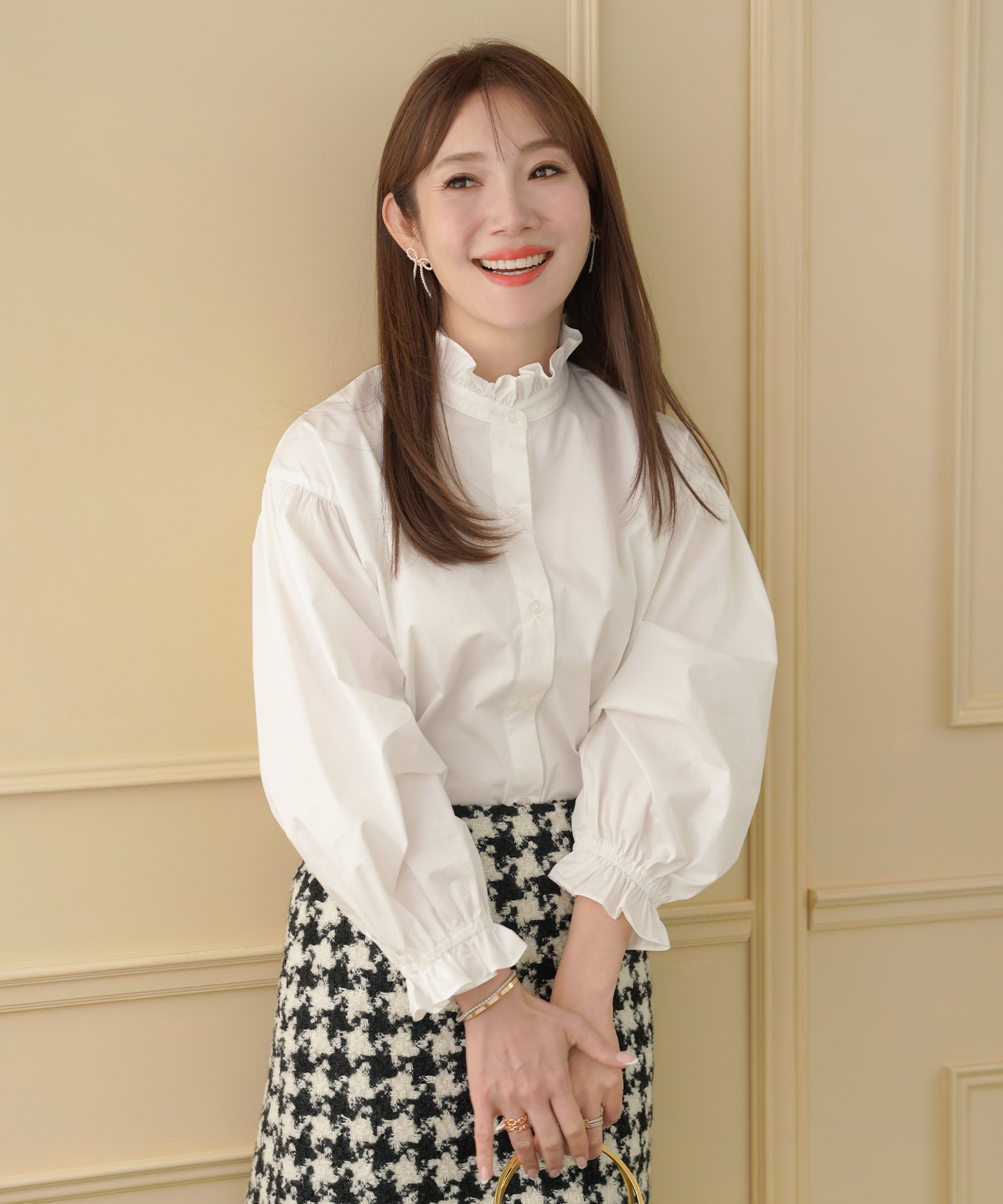 バンドカラー フリル フレアスリーブ ブラウス(Liala×PG) ¥7,700(税込)