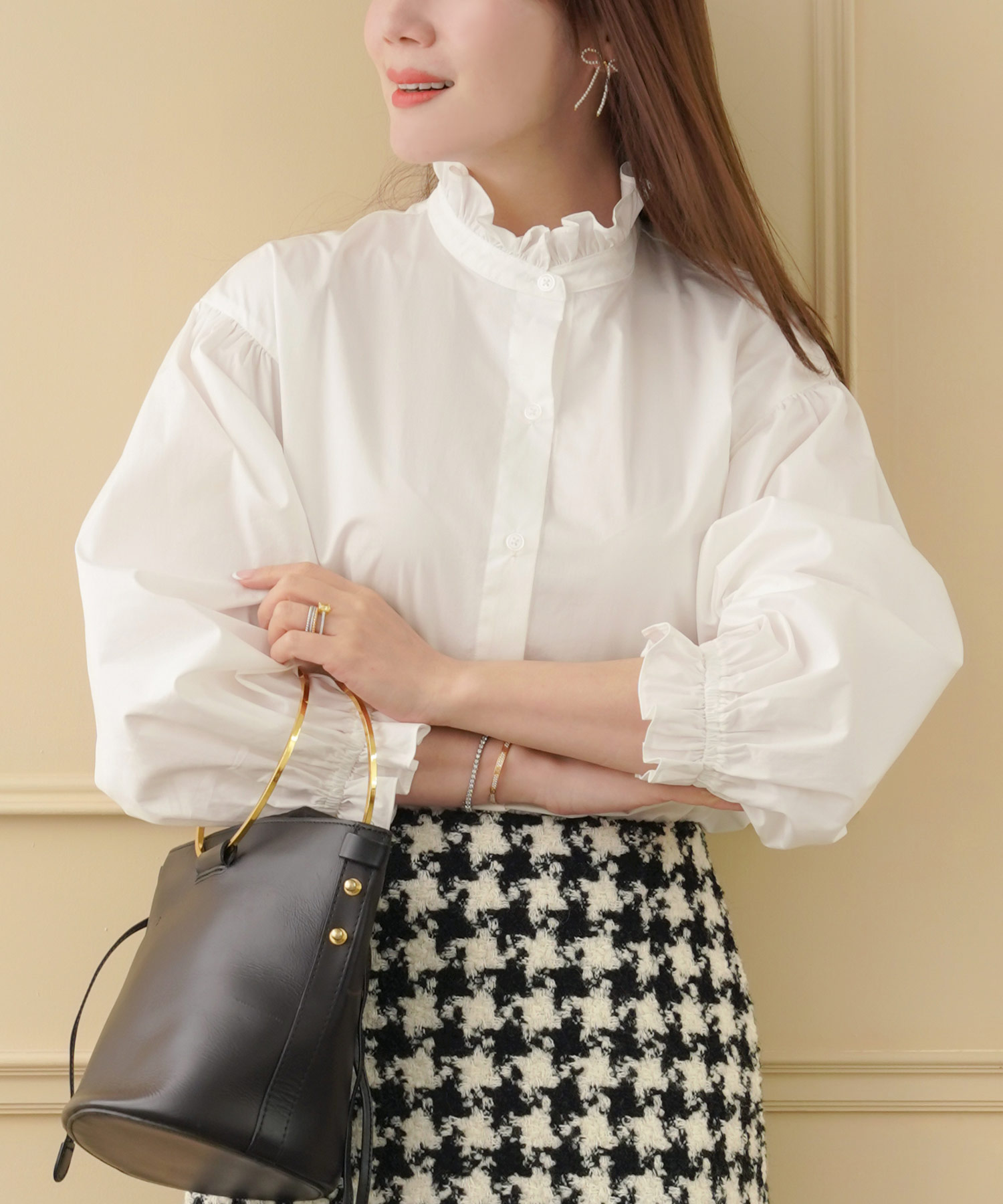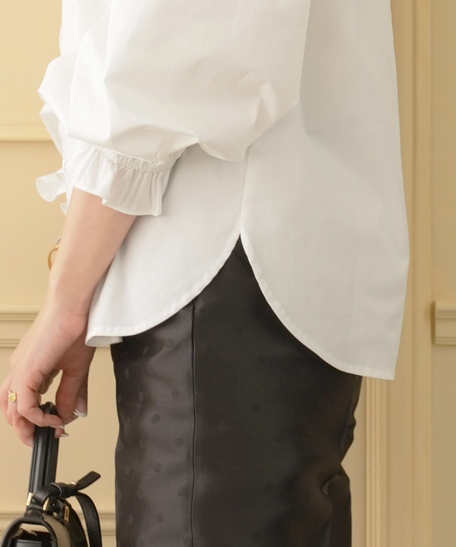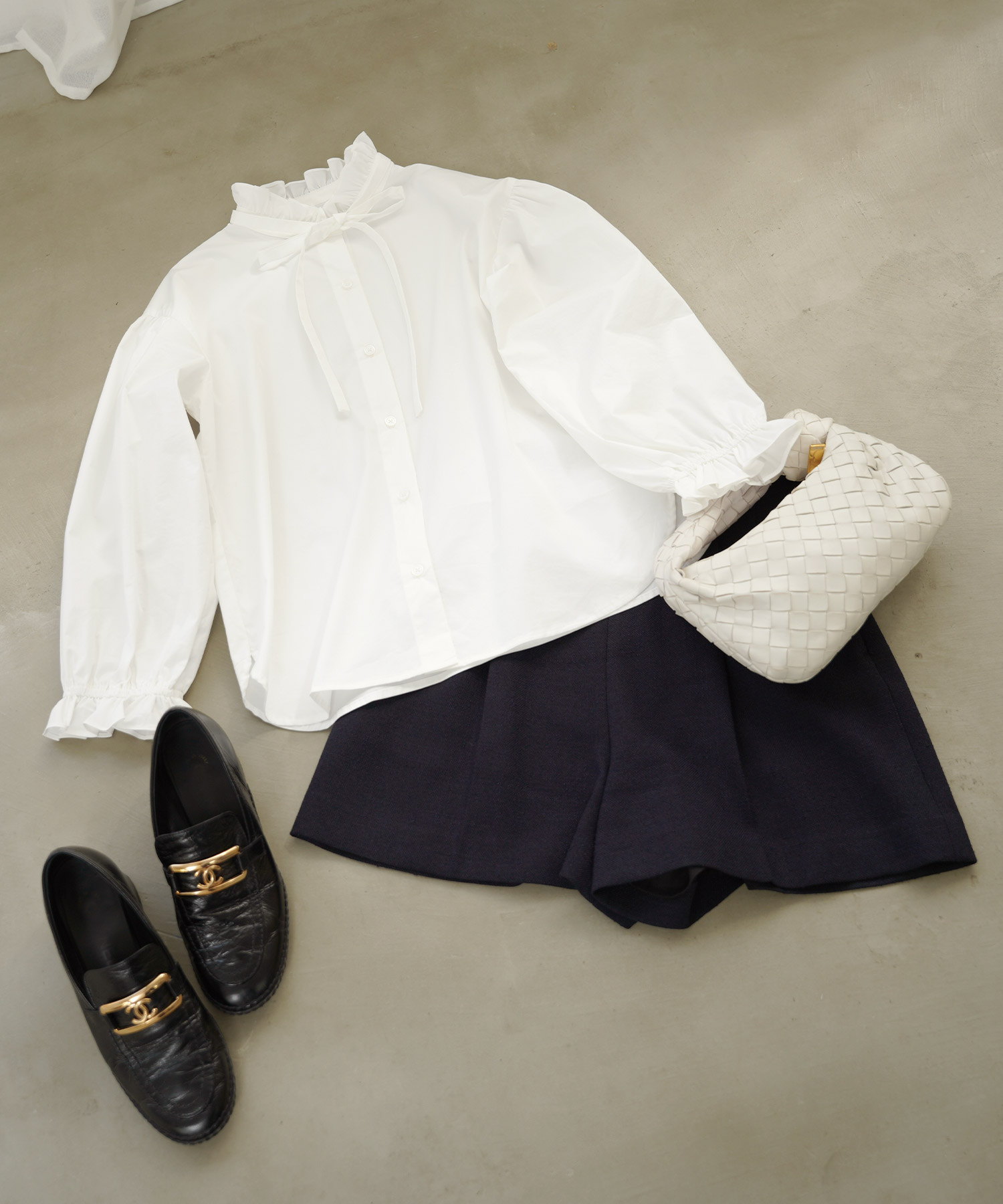 バンドカラー フリル フレアスリーブ ブラウス(Liala×PG) ¥7,700(税込)