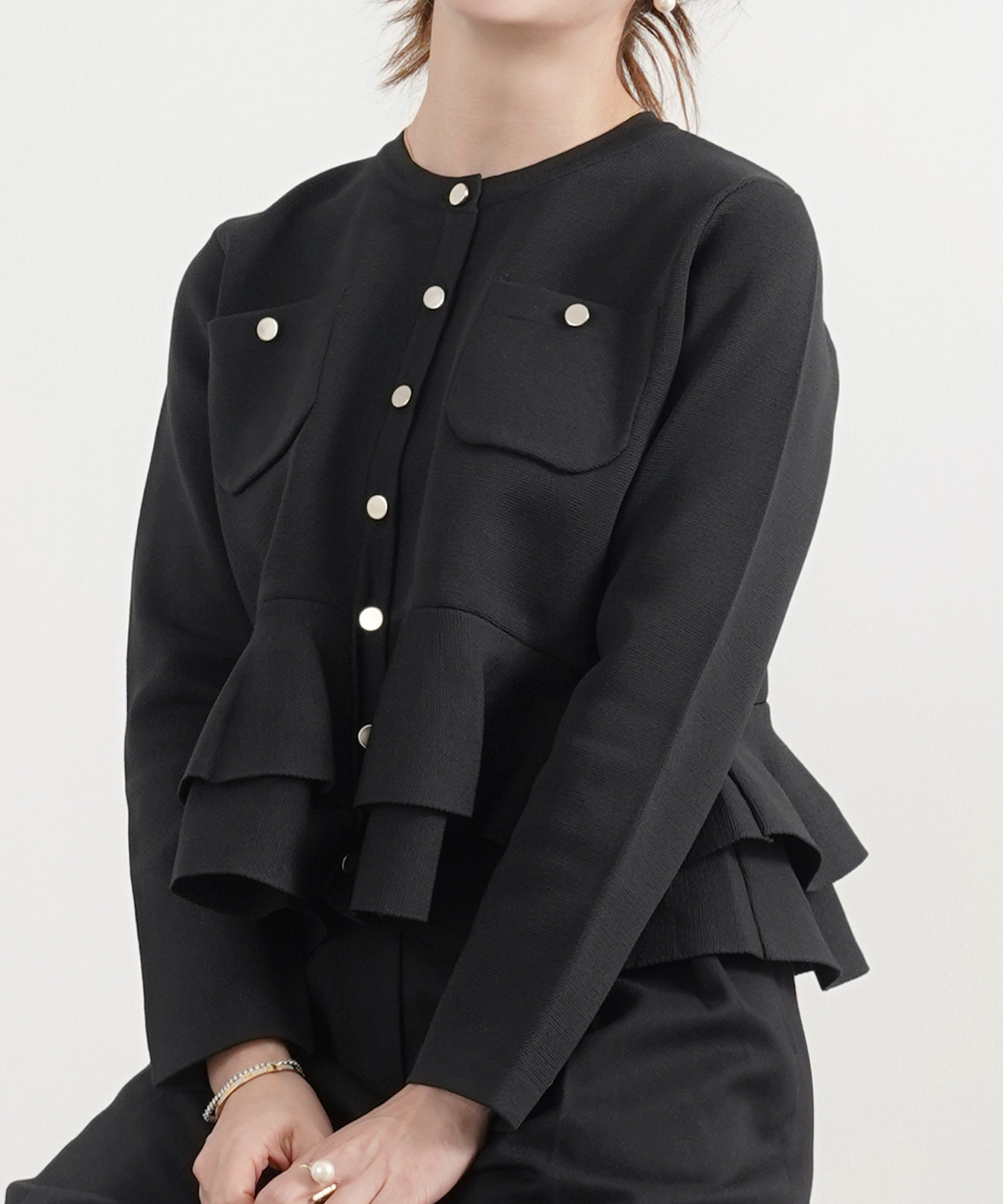 ダブルフリル ペプラム ニット カーディガン(Liala×PG)¥9,900(税込)