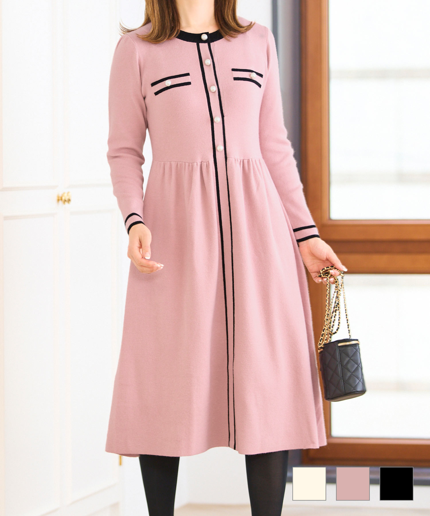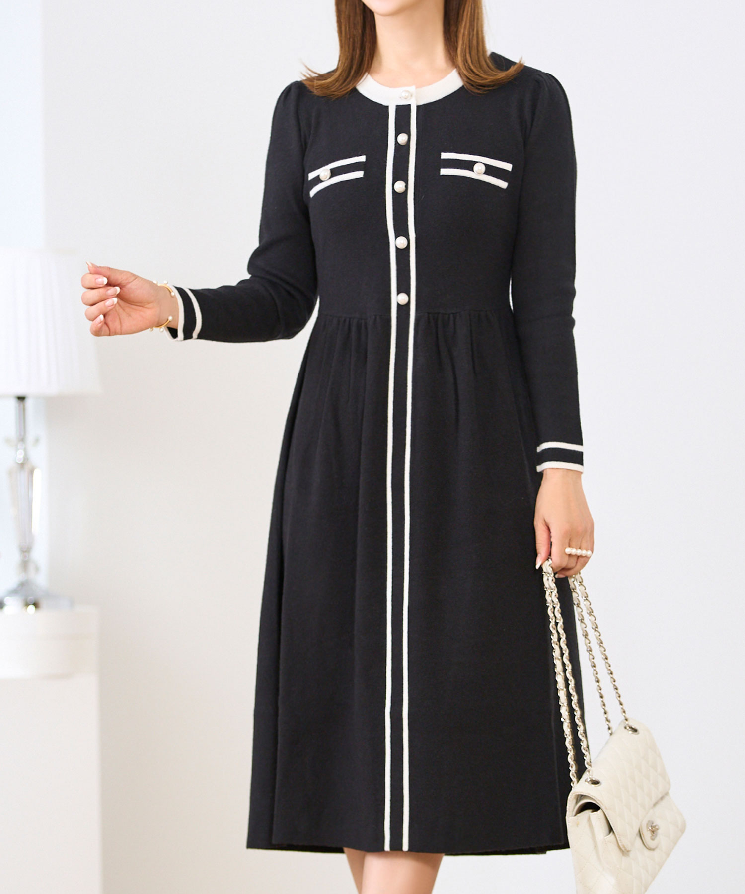 ツイードコンビ バイアス ワンピース 長袖(Prima Scherrer)¥17,380(税込)