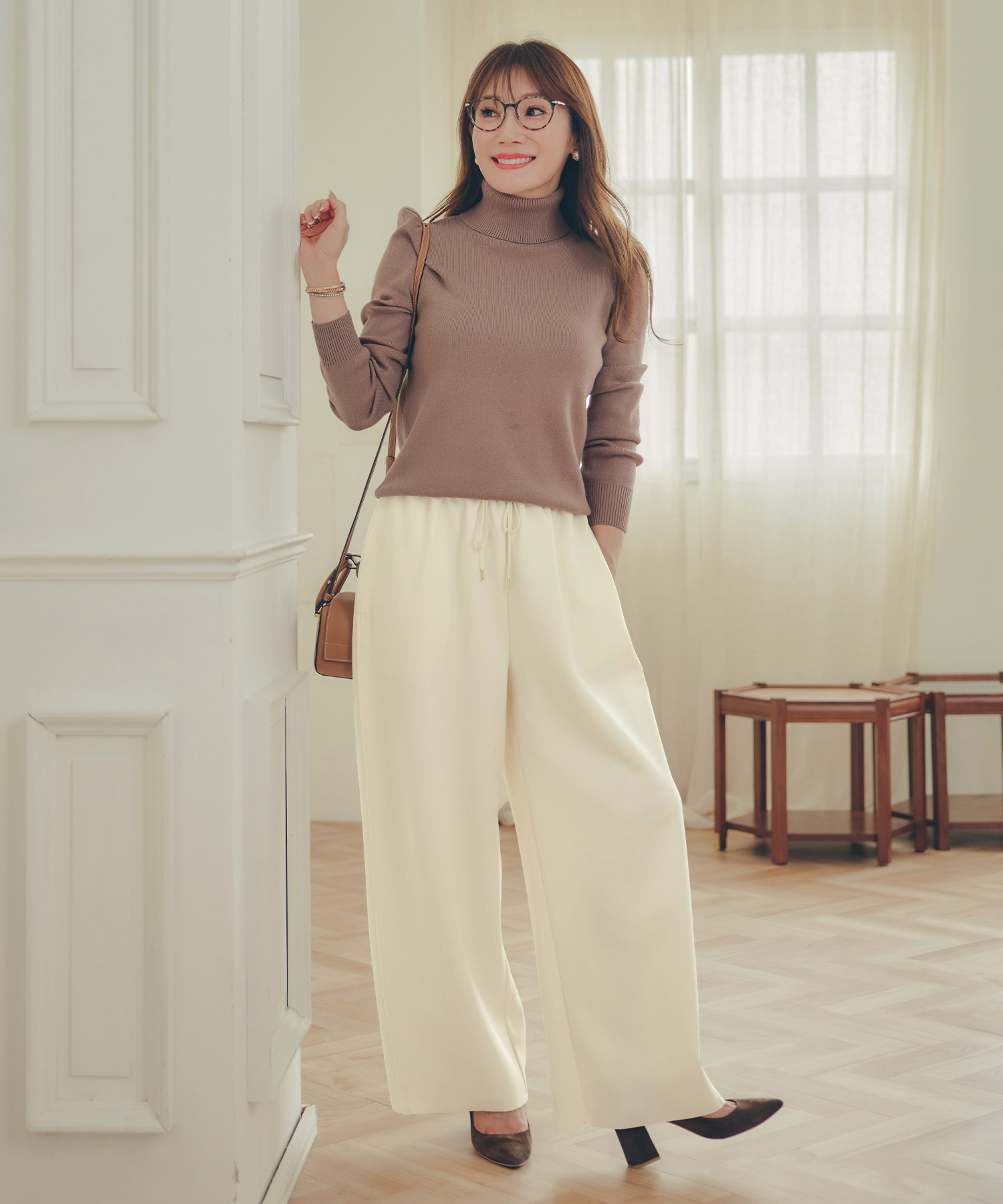 大人カジュアルなレストラン忘年会|ワイドパンツできれいめリラックスコーデ